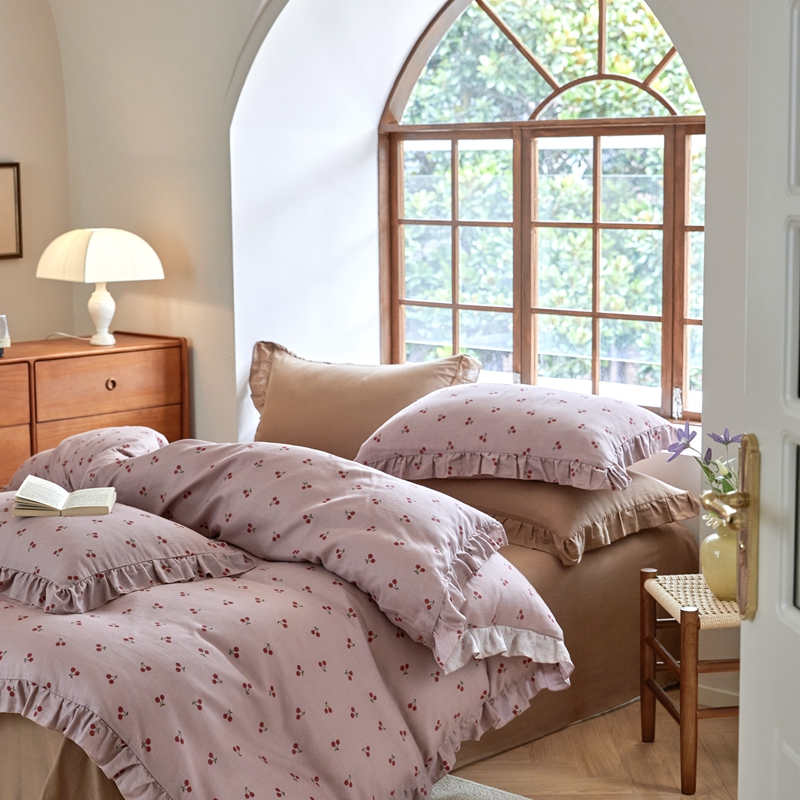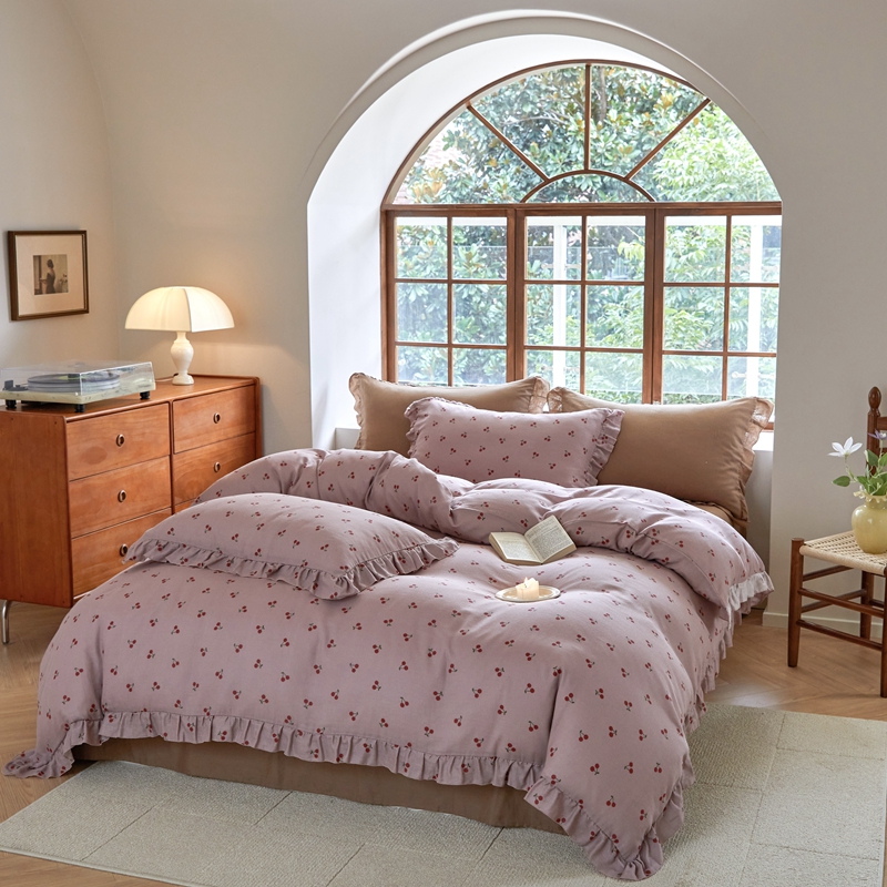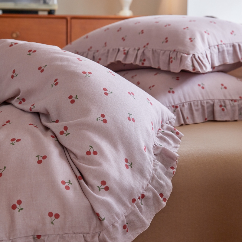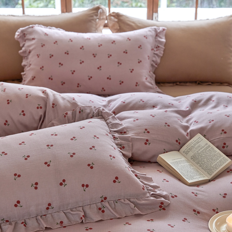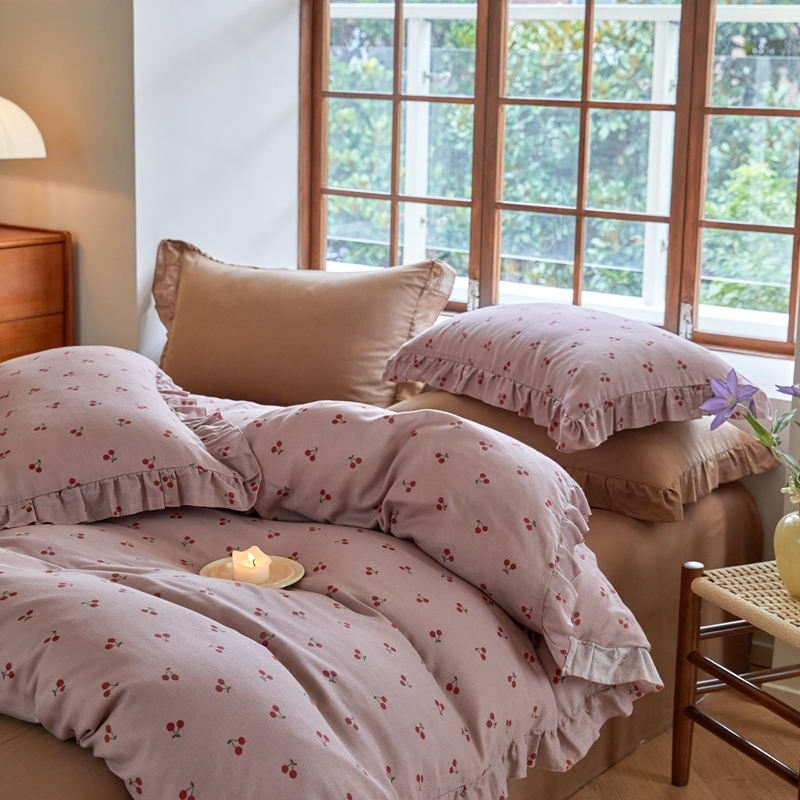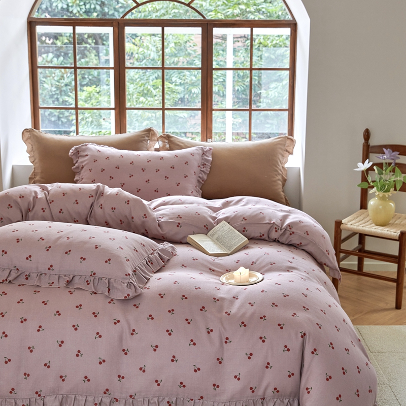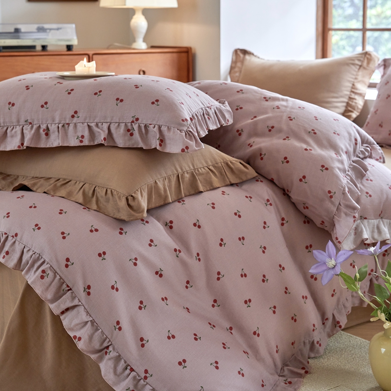 商品名称:本希 2023新款秋冬全棉a类双层纱四件套-法式 樱桃