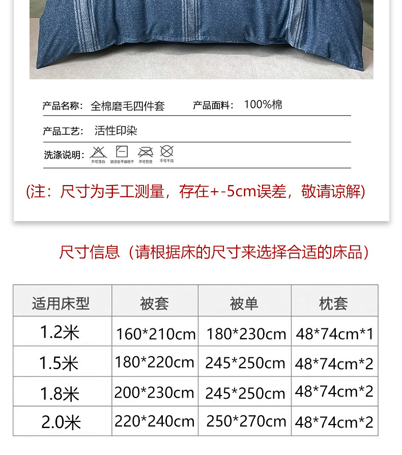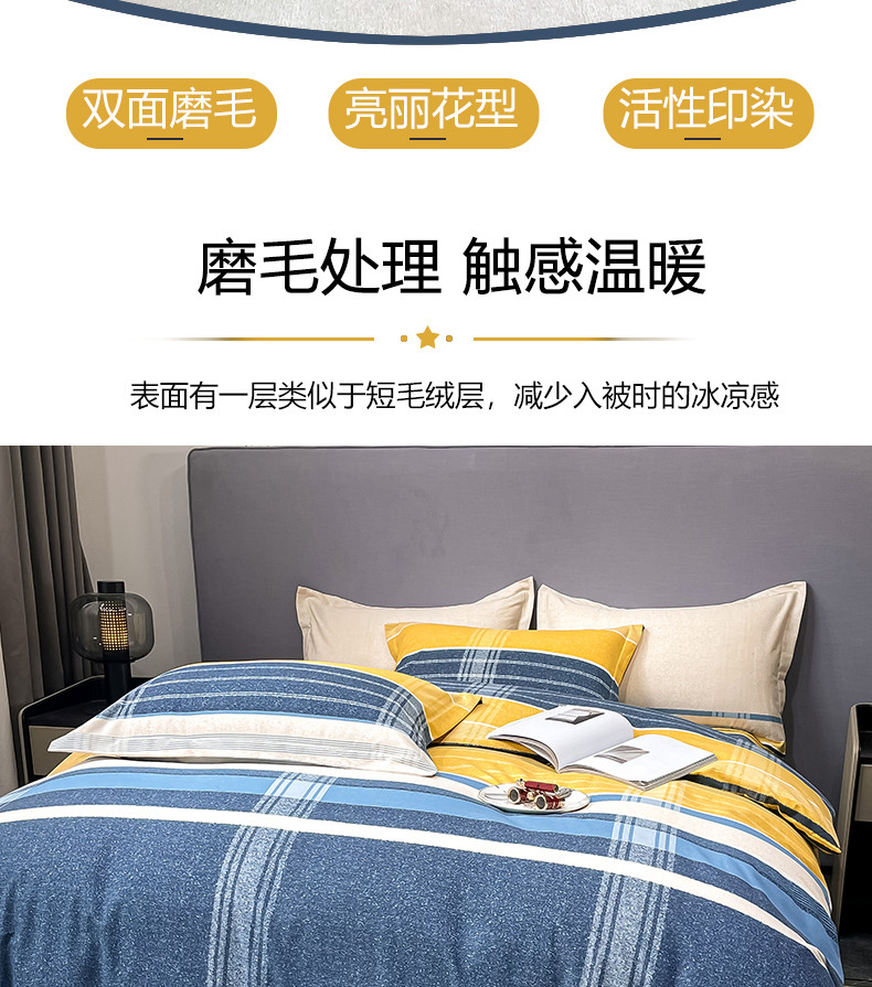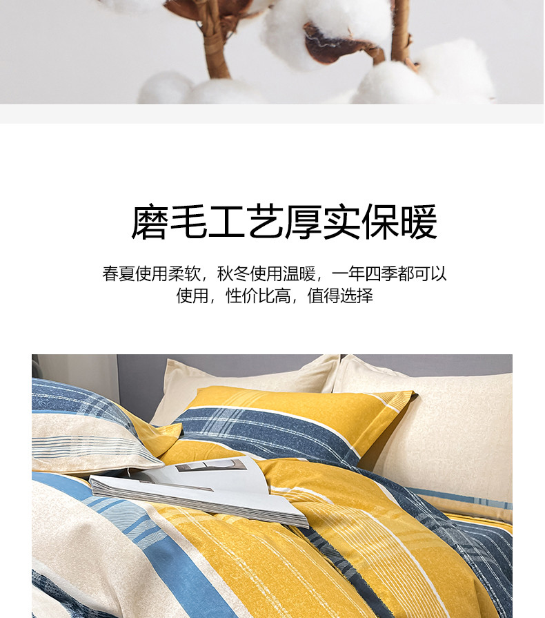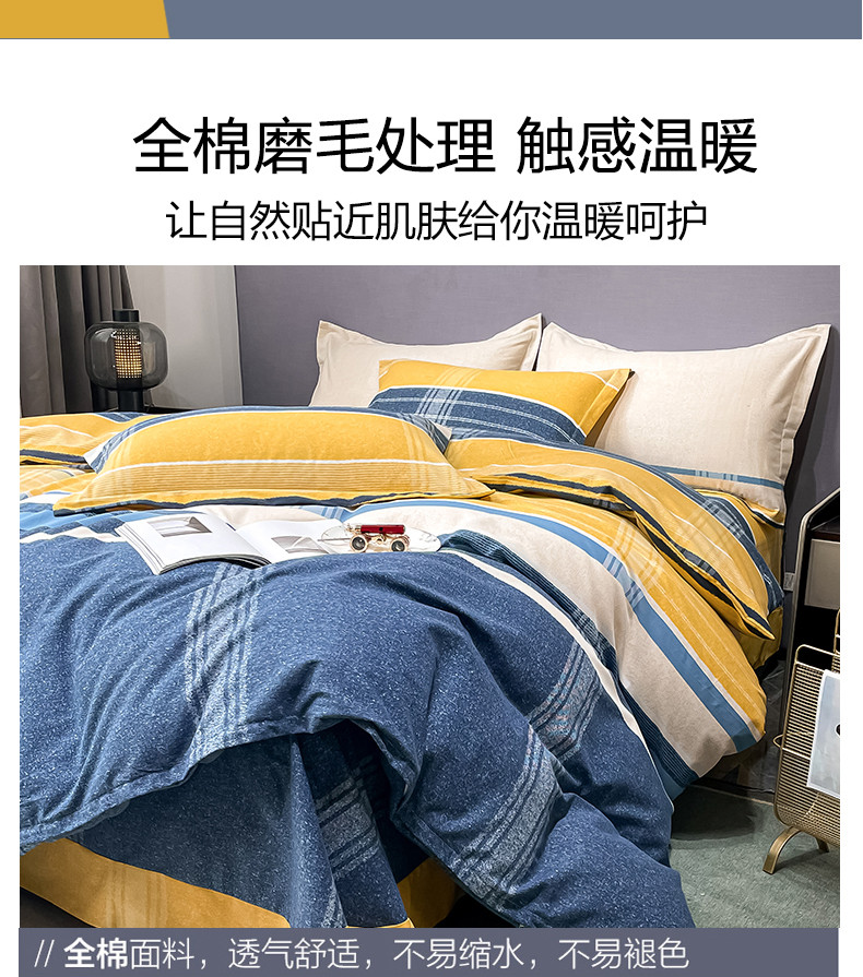 商品名称:晶缦家纺 2023新款风尚系全棉生态磨毛多规格四件套 卡罗拉