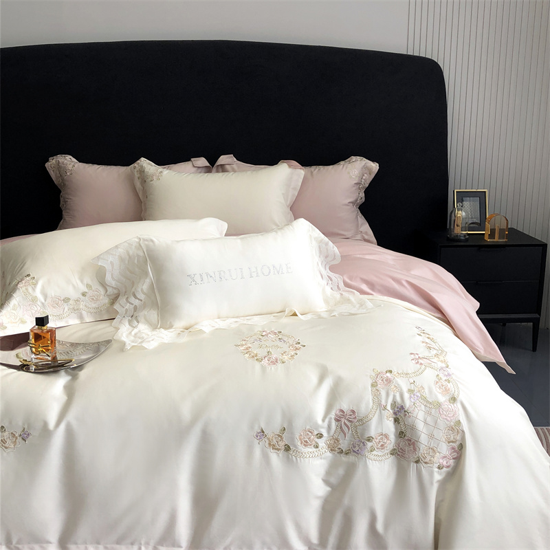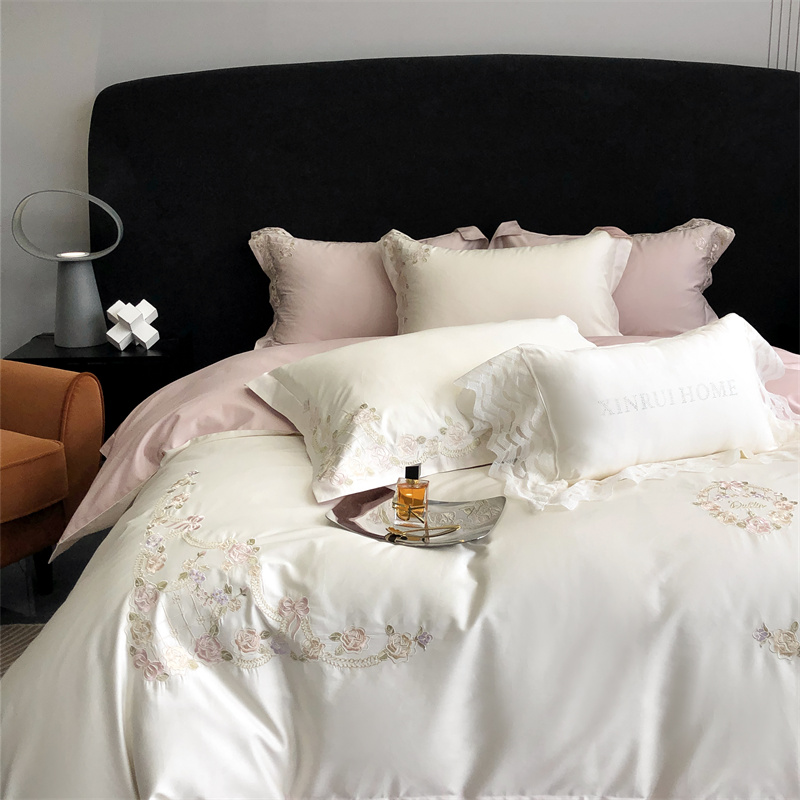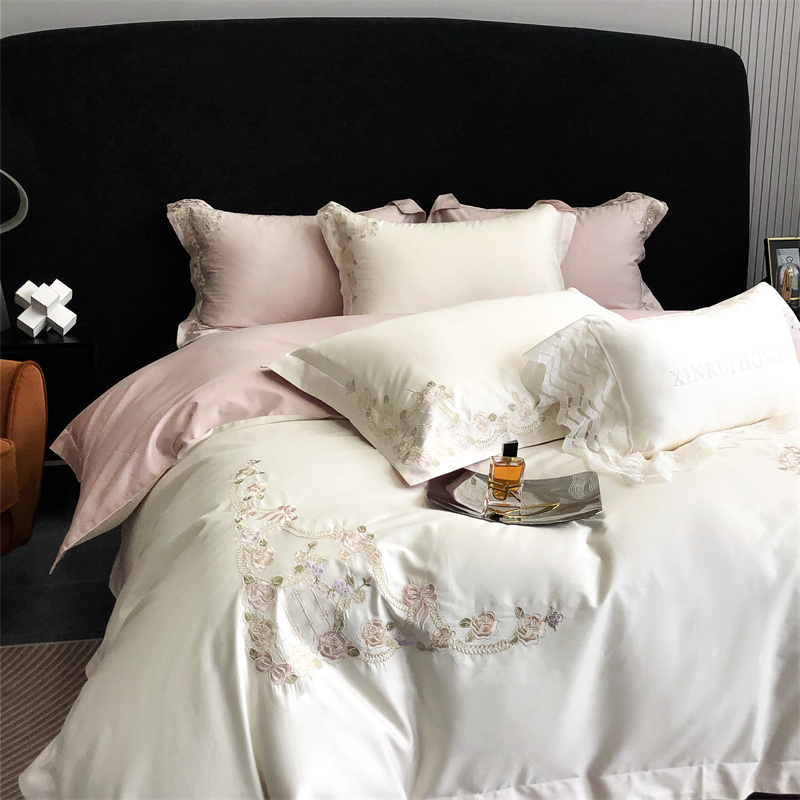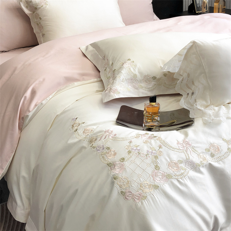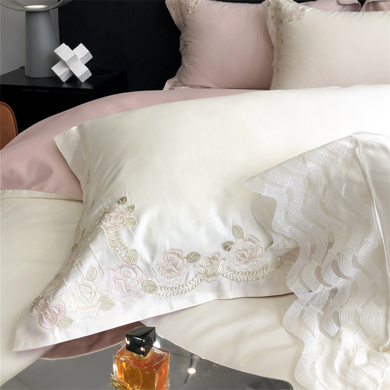 馨蕊家居 2023新款100支CR工艺全棉四件套-棉卡洛琳 卡洛琳-粉白
