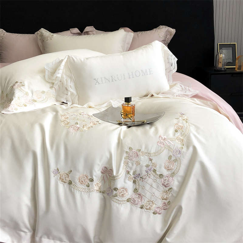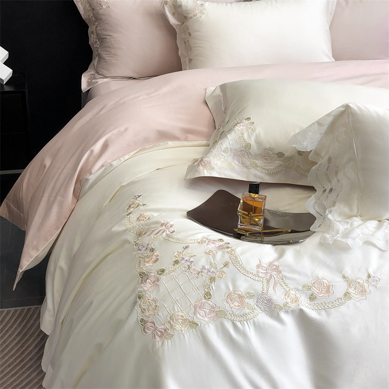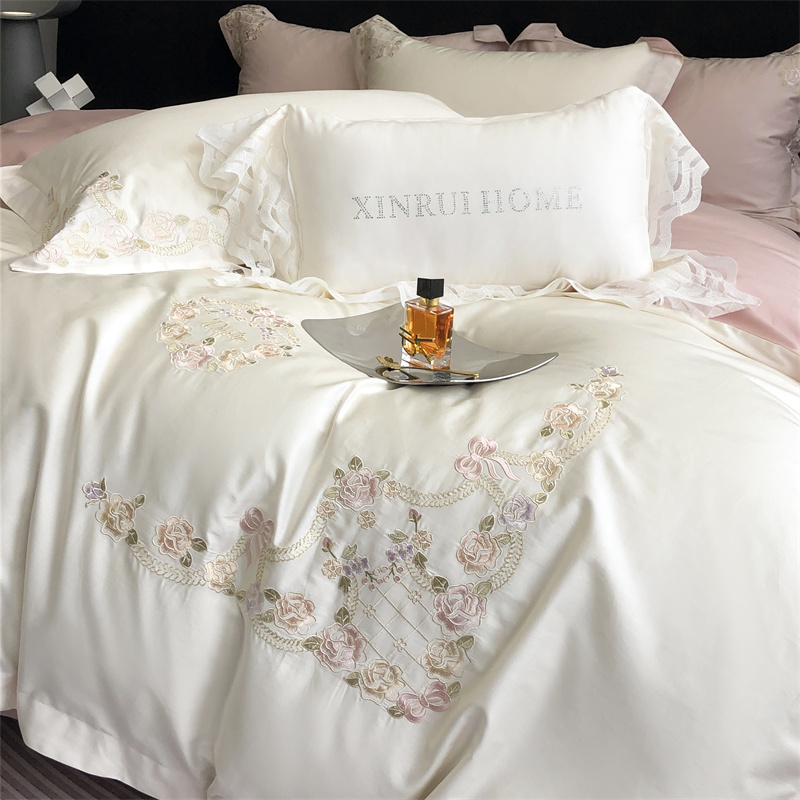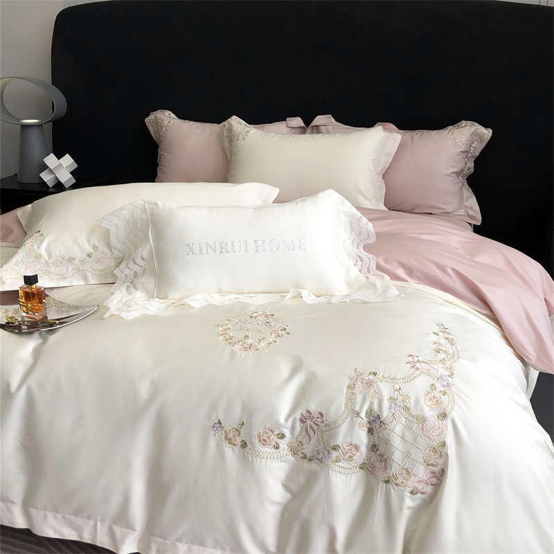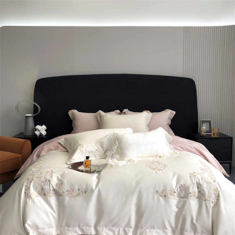 馨蕊家居 2023新款100支CR工艺全棉四件套-棉卡洛琳 卡洛琳-粉白
