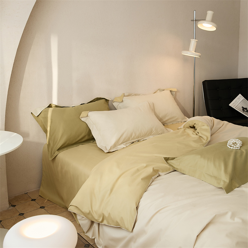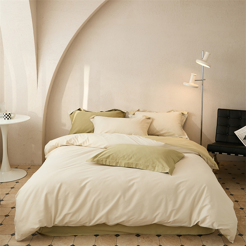 (总)涞澳家纺 2026新款全棉纯棉水洗棉纯色花边款四件套-珠若,珠若-米白,珠若-浅灰,珠若-浅绿,珠若-浅玉