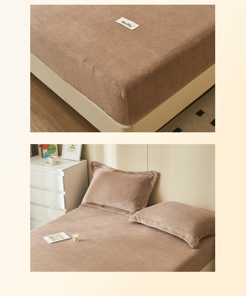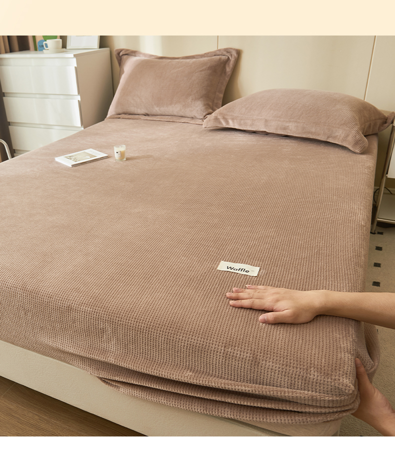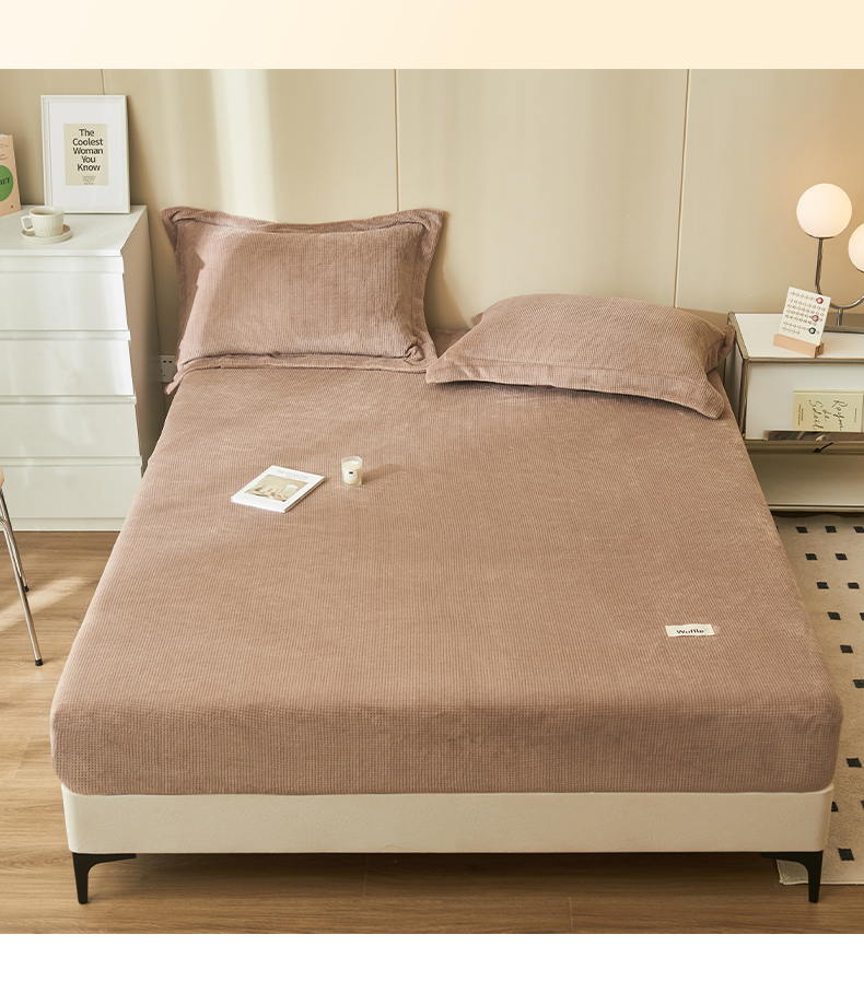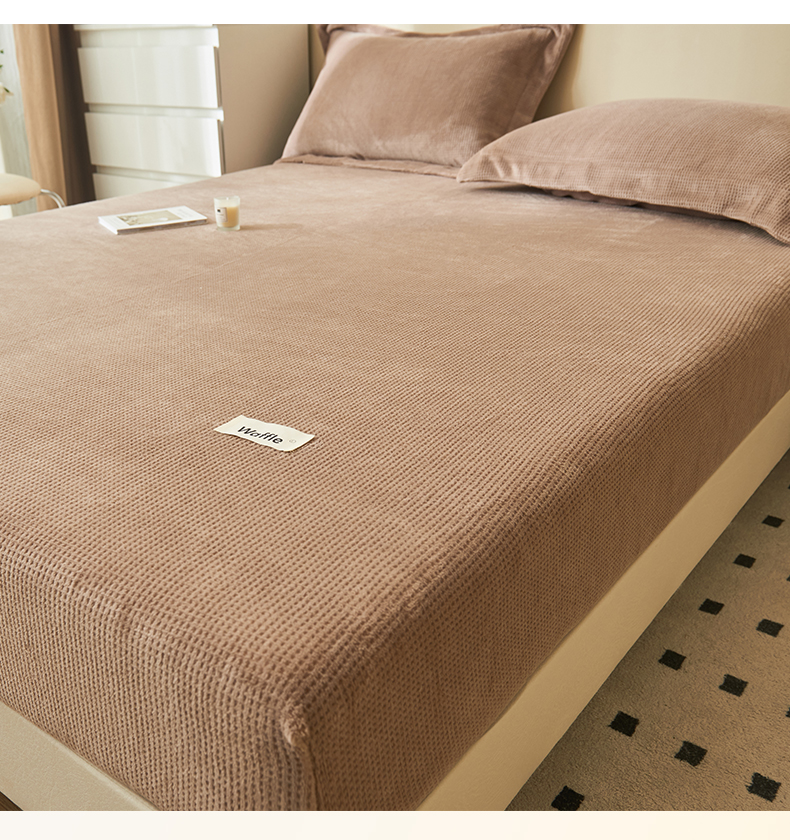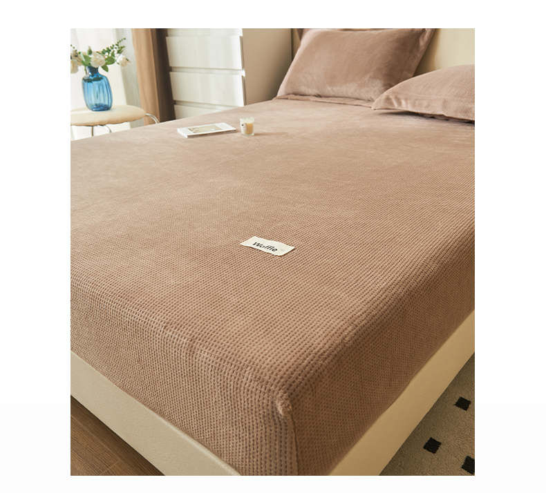 • 91家纺网 家纺一手货源 找家纺 吾诺 2023秋冬 华夫格牛奶绒毯子床单床笠单品系列-牛奶绒床笠 深驼色