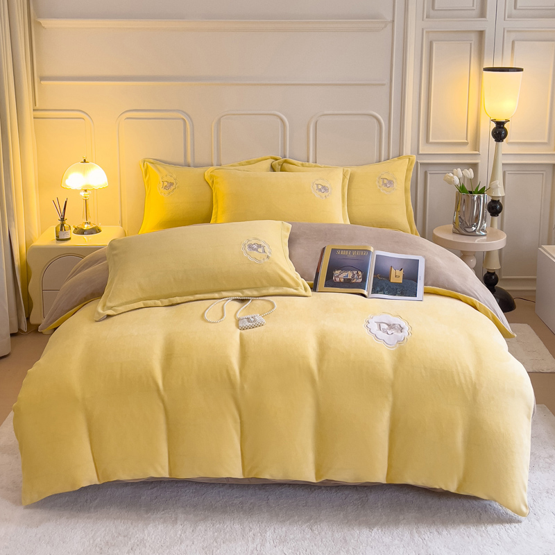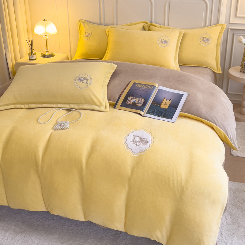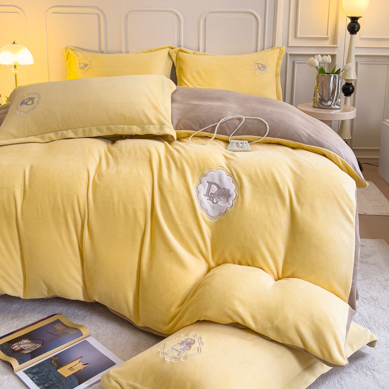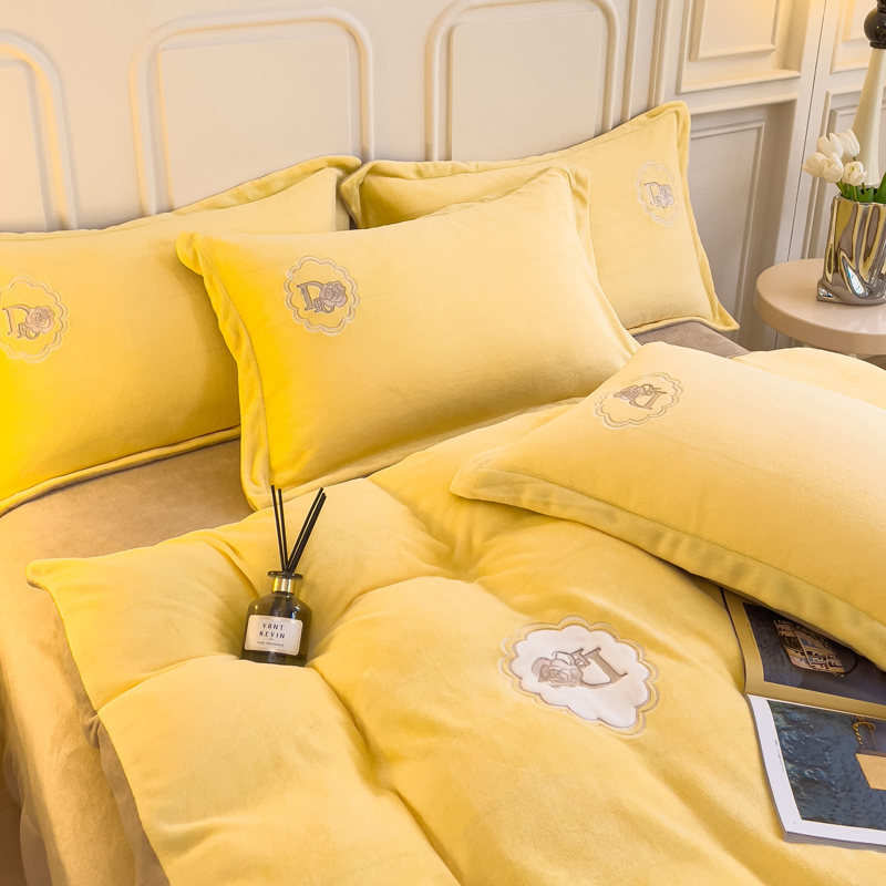 牛奶绒双拼小香风刺绣贴布绣四件套-戴安娜(含买家秀)戴安娜-柠檬黄