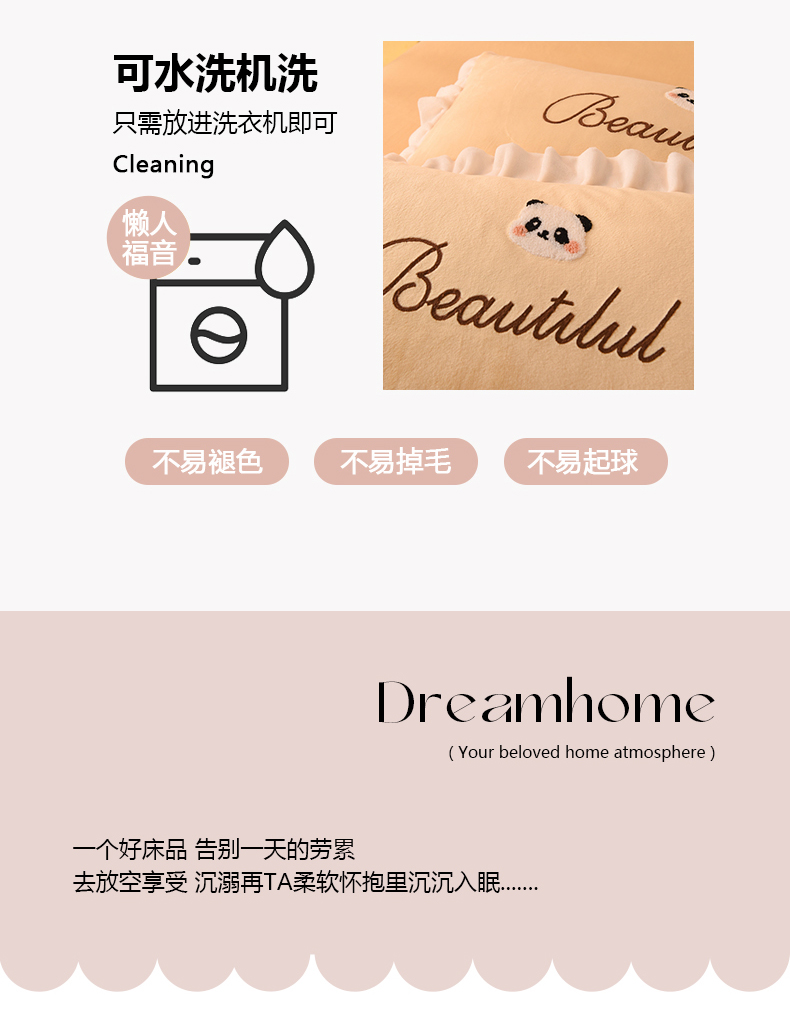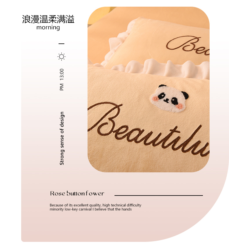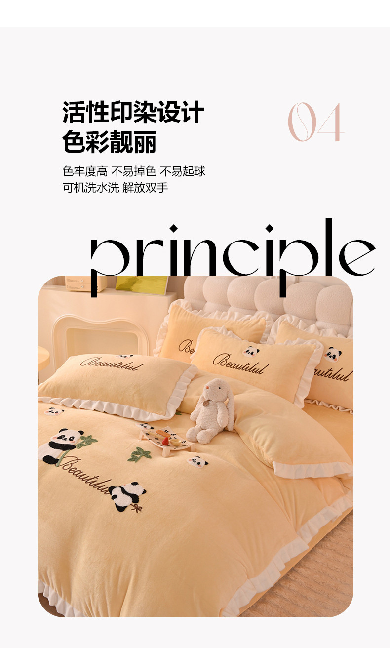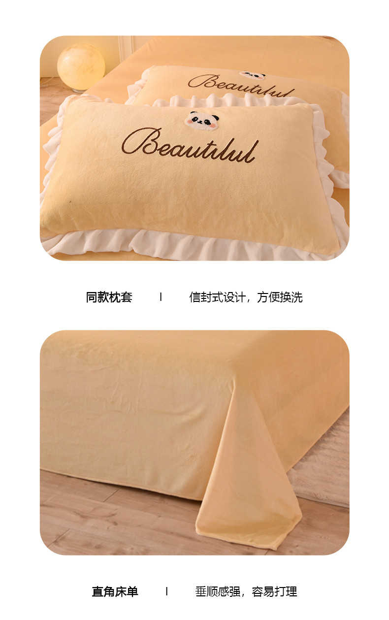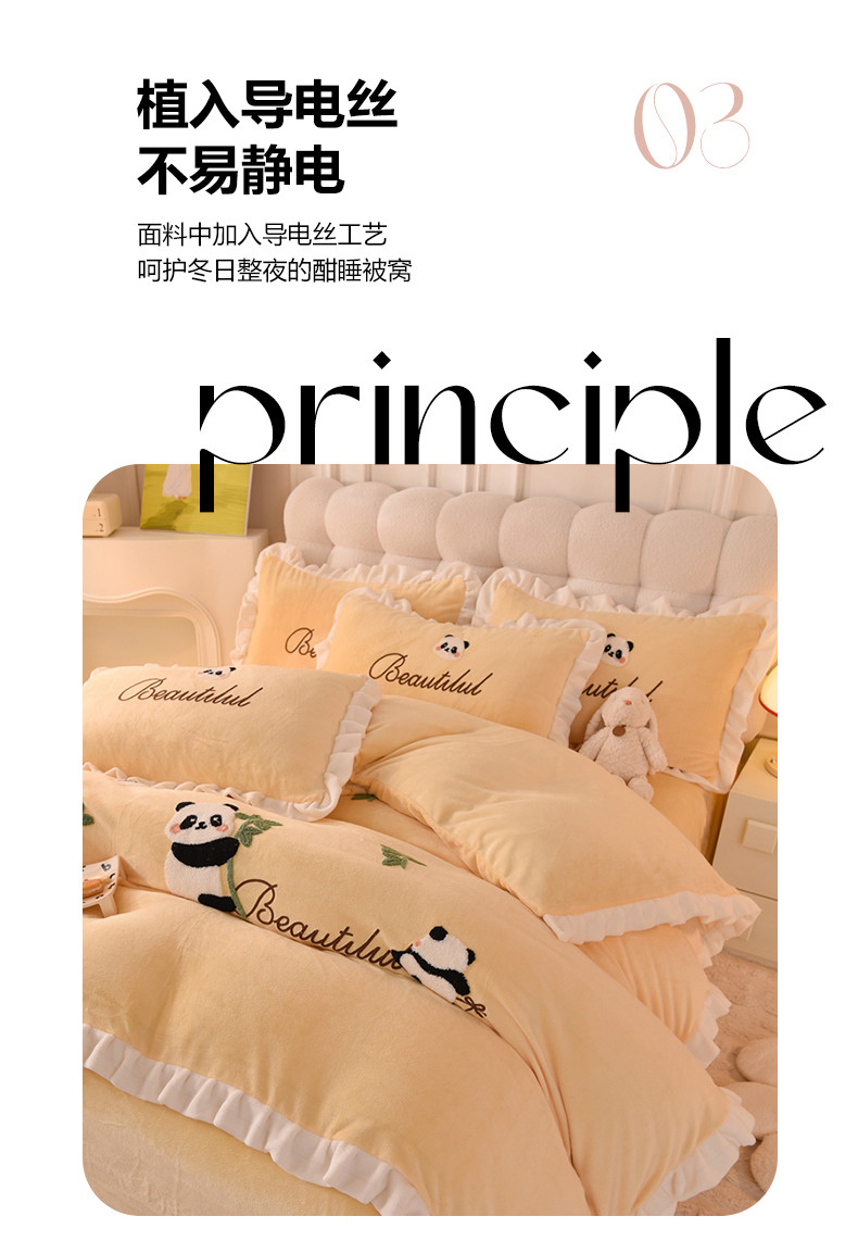 商品名称:菲儿家纺 2023新款牛奶绒毛巾绣四件套 小熊猫-奶黄
