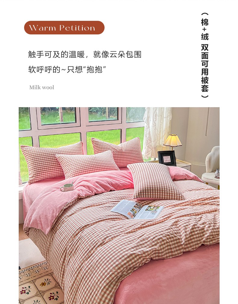 • 91家纺网 家纺一手货源 找家纺 柠萌 2023新款全棉色织水洗棉加牛奶绒单品被套全棉拼牛奶绒被套 棉+绒-蜜粉小格