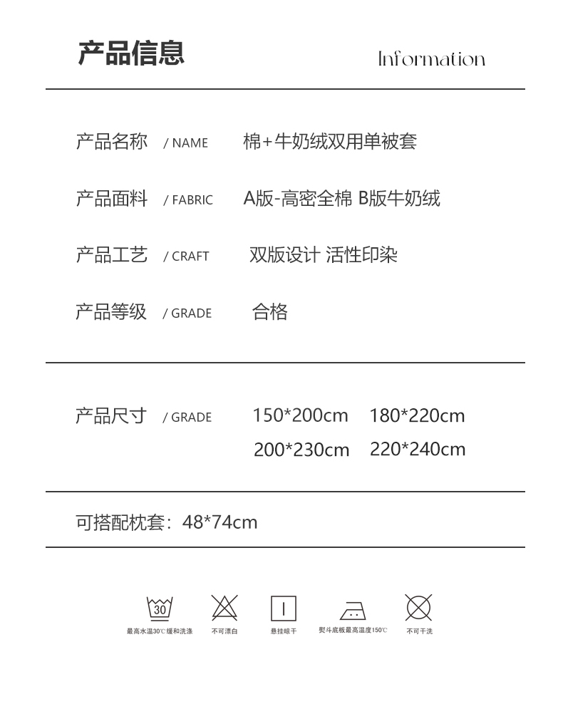 155*205cm被套+枕套一对