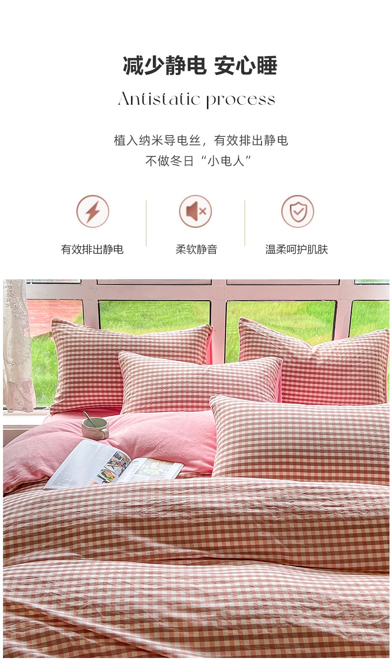 (总)柠萌家居 2026新款色织水洗棉四件套单被套,粉极细条,粉紫条,黄咖条,灰极细条,蓝咖条,绿极细条,绿紫条,米极细条,驼红条