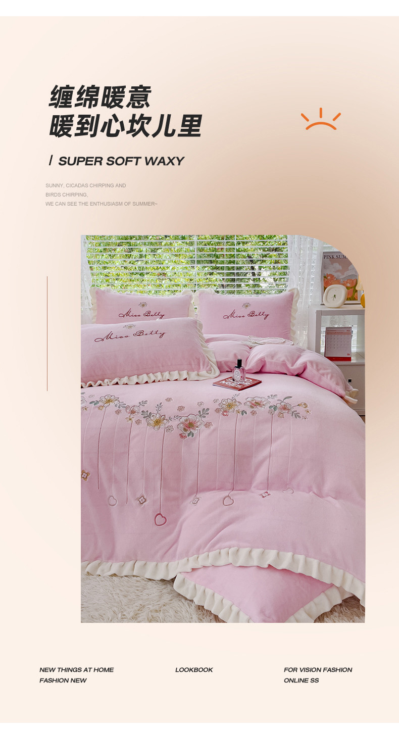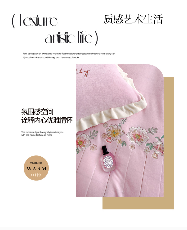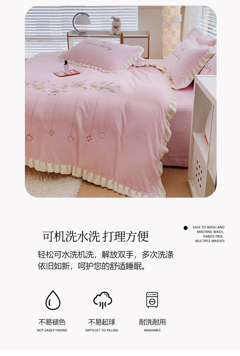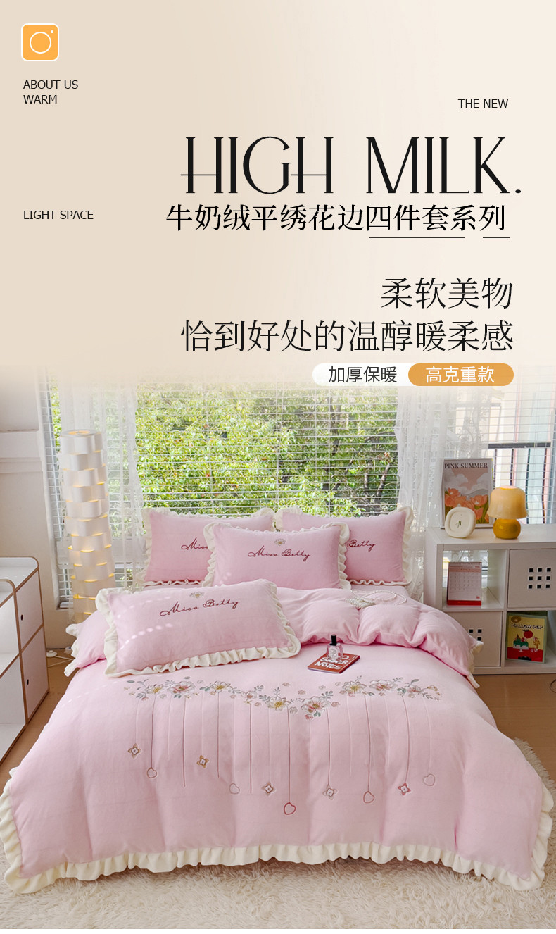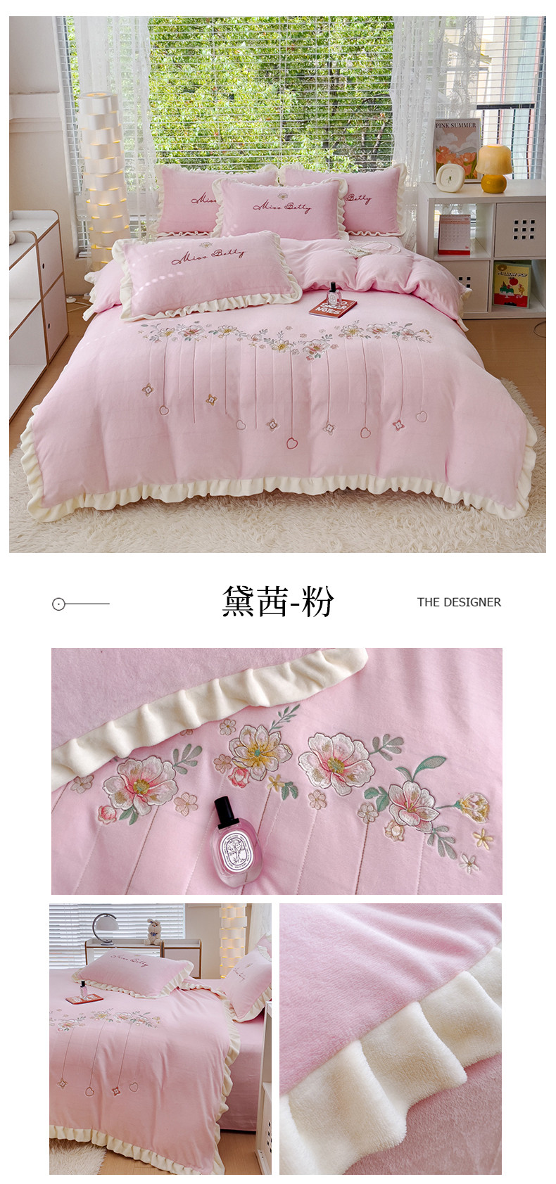 菲儿家纺 2023新款牛奶绒平绣四件套-黛茜 黛茜-粉