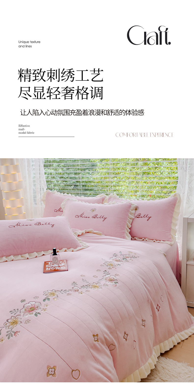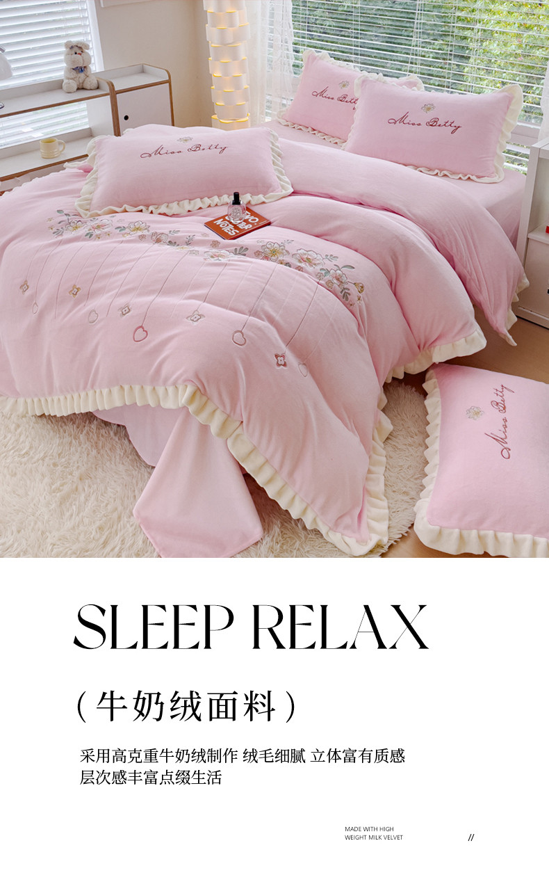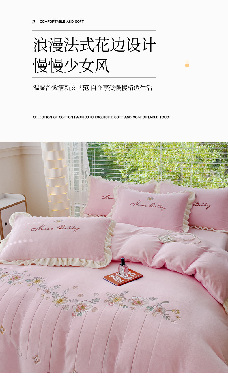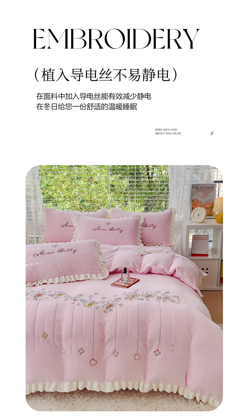 菲儿家纺 2023新款牛奶绒平绣四件套-黛茜 黛茜-粉
