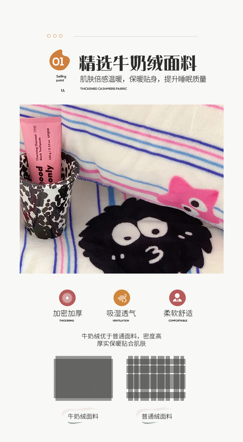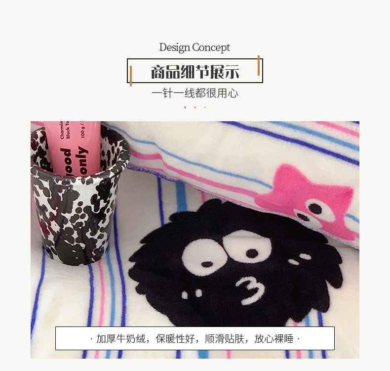 商品名称:桃子家居 2023新款ins少女甜酷多巴胺粉墨加厚牛奶绒系列四件套 绒-条纹毛球