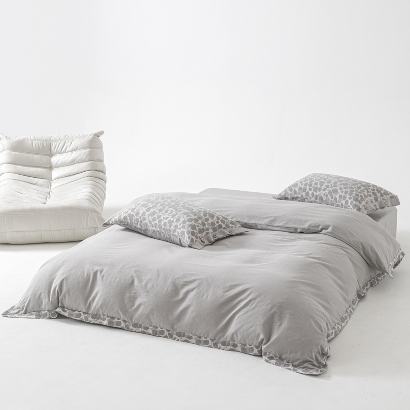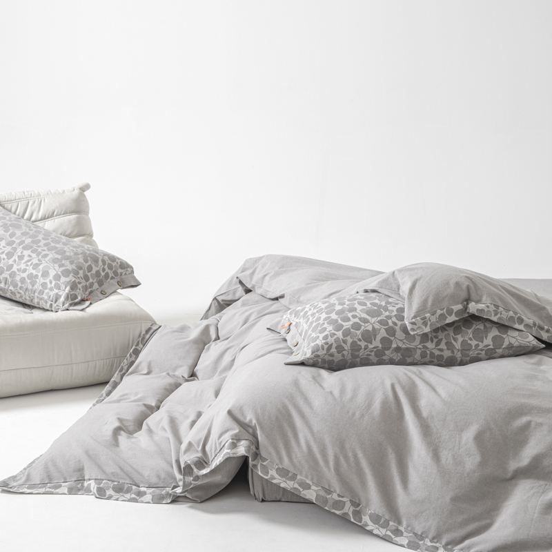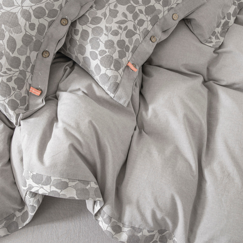 当前位置: 91家纺网 > 商品网购 > 床品套件 > 四件套 > 全棉普通四件套 > 安莱生活 2023新款A类简约棉麻树叶拼边四件套 棉麻拼边纽扣款-银灰