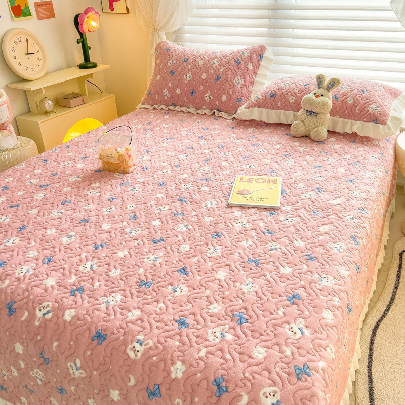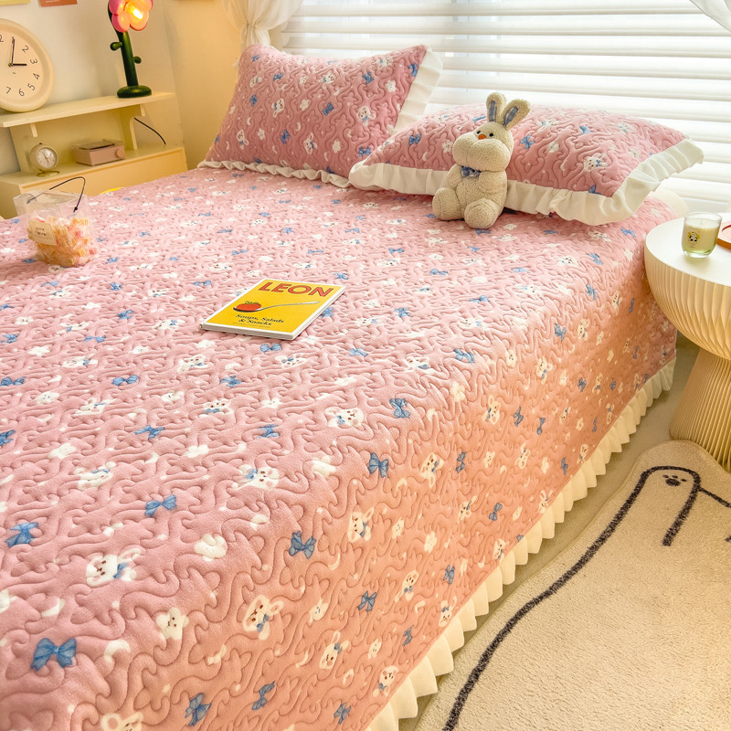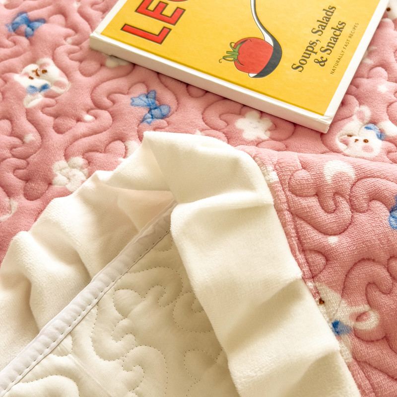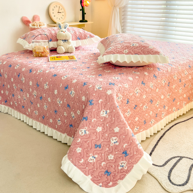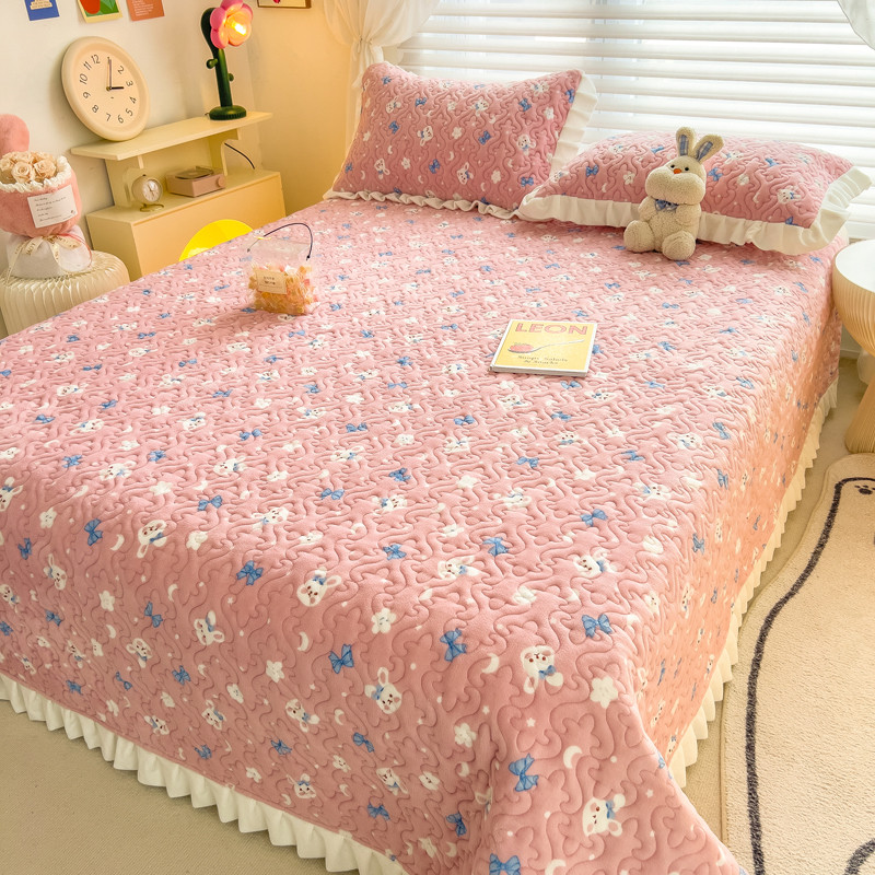 梵朴 2023年新款牛奶绒夹棉床盖 粉粉兔