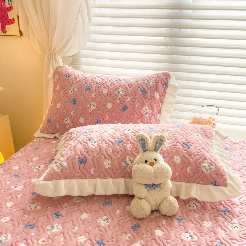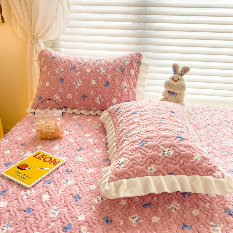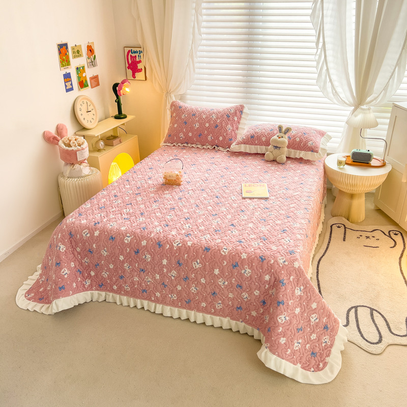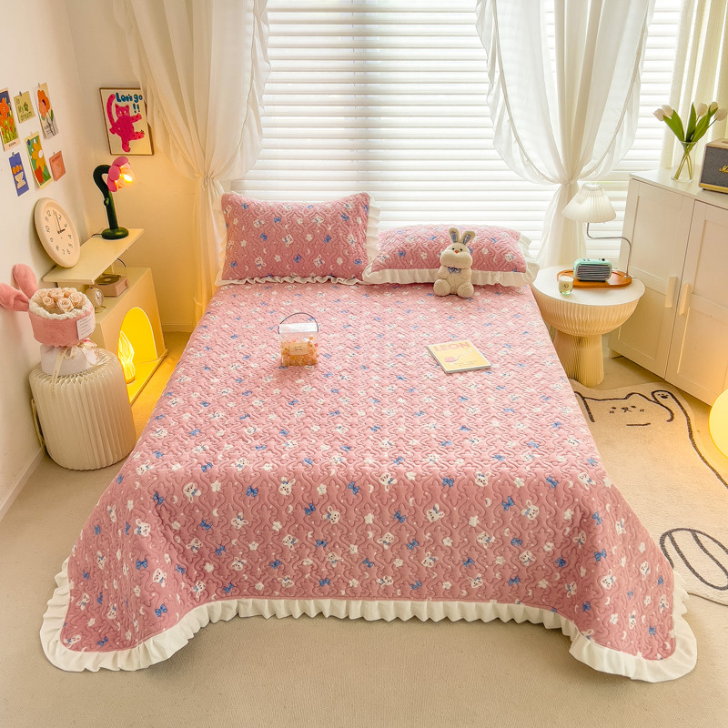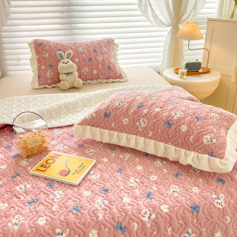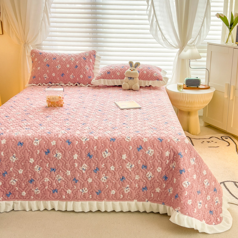梵朴 2023年新款牛奶绒夹棉床盖 粉粉兔