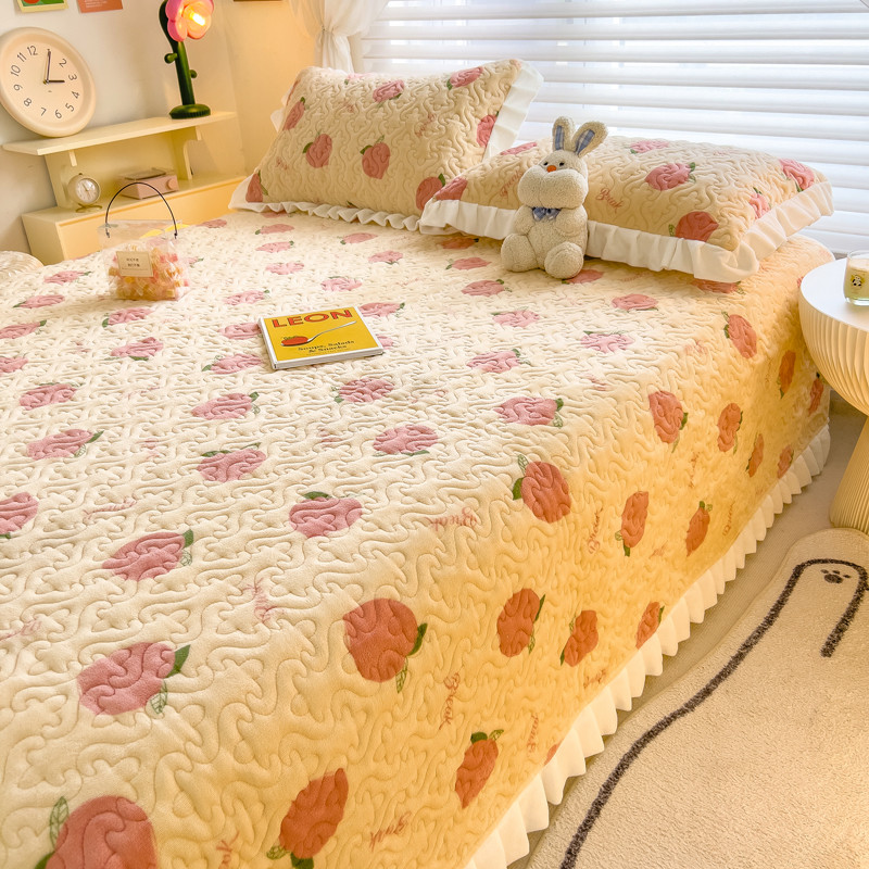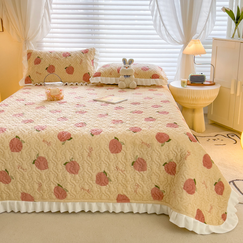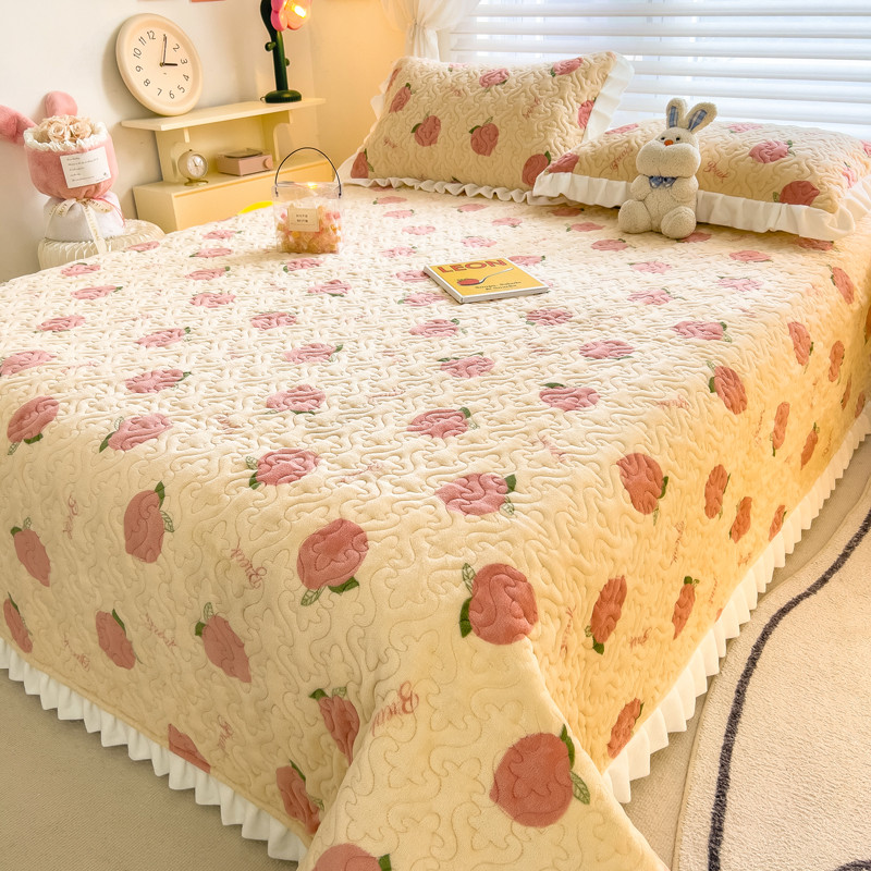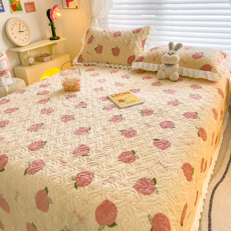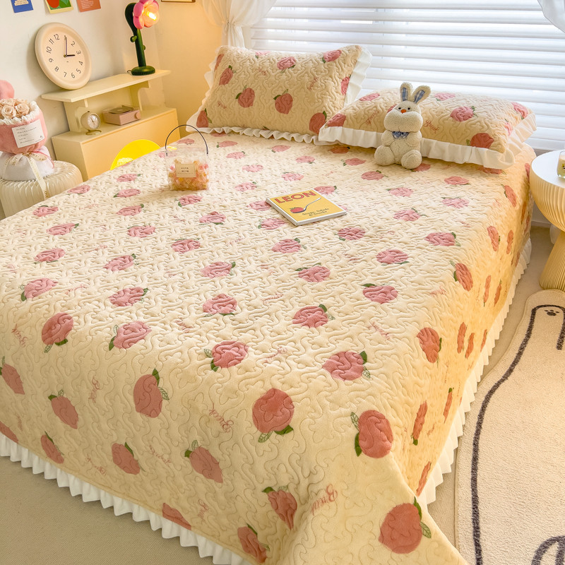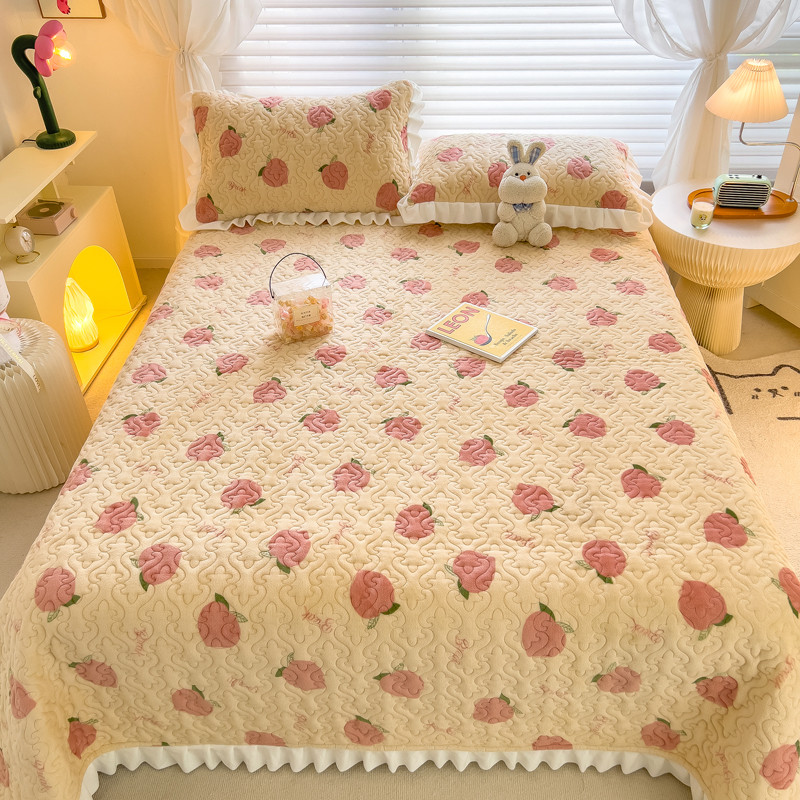 商品名称:梵朴 2023年新款牛奶绒夹棉床盖 桃子