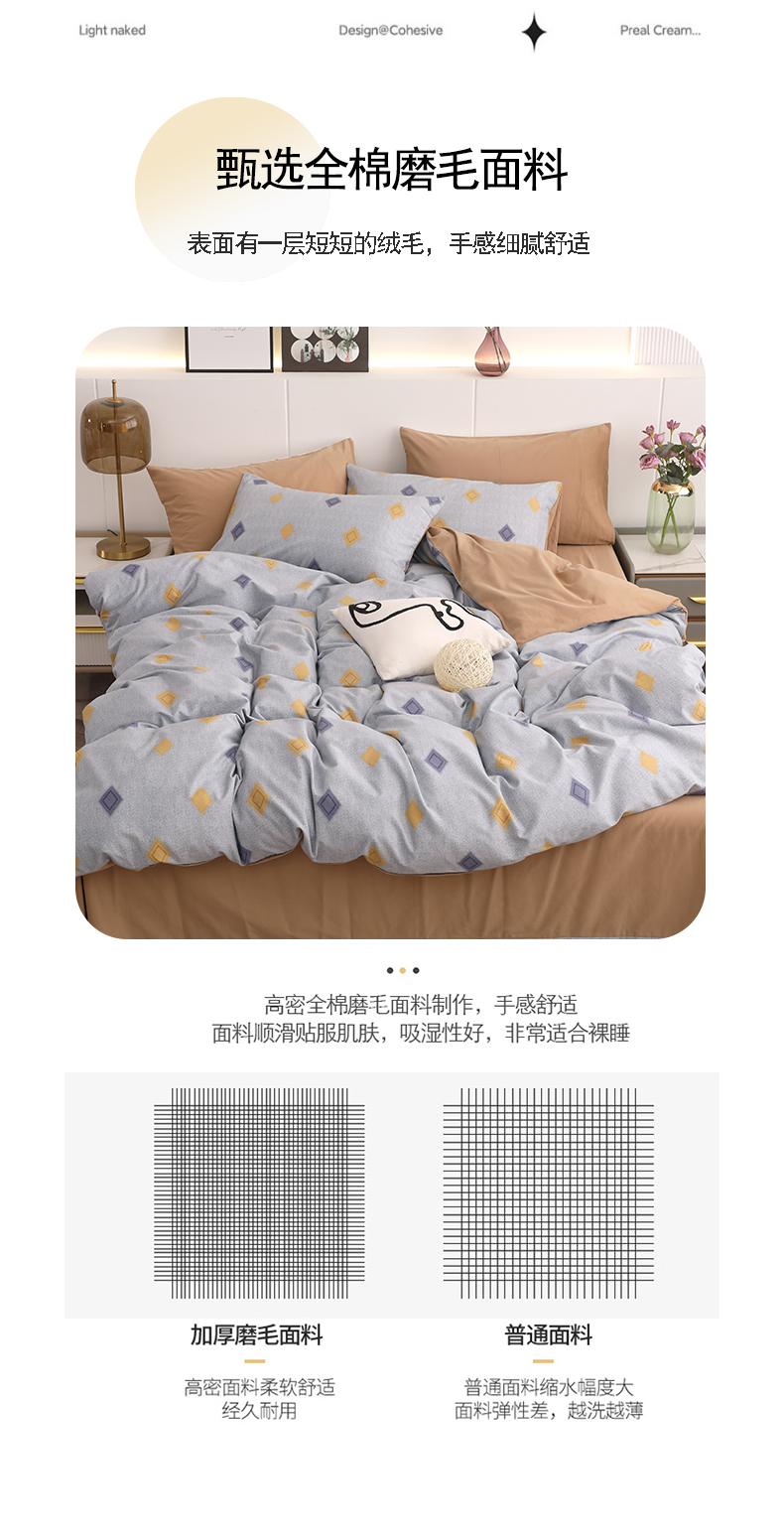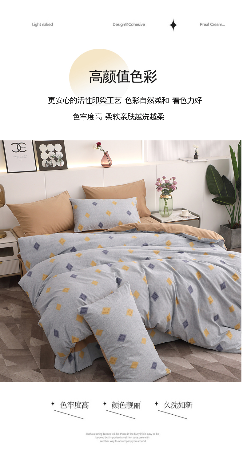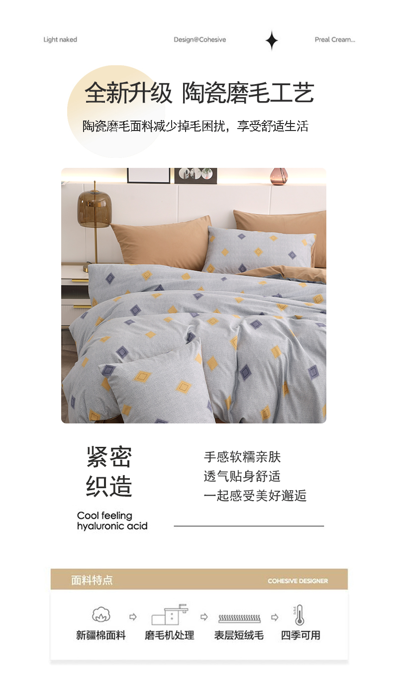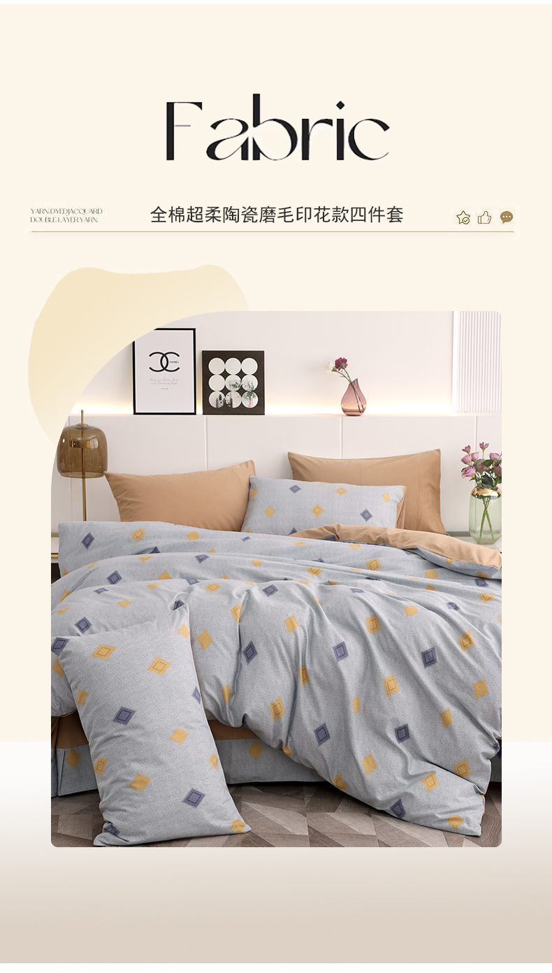 爱思佳 2023新款全棉超柔陶瓷磨毛系列四件套 比柯