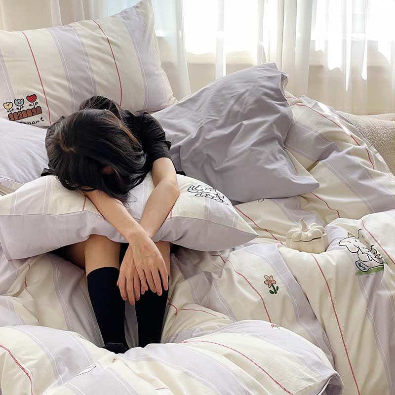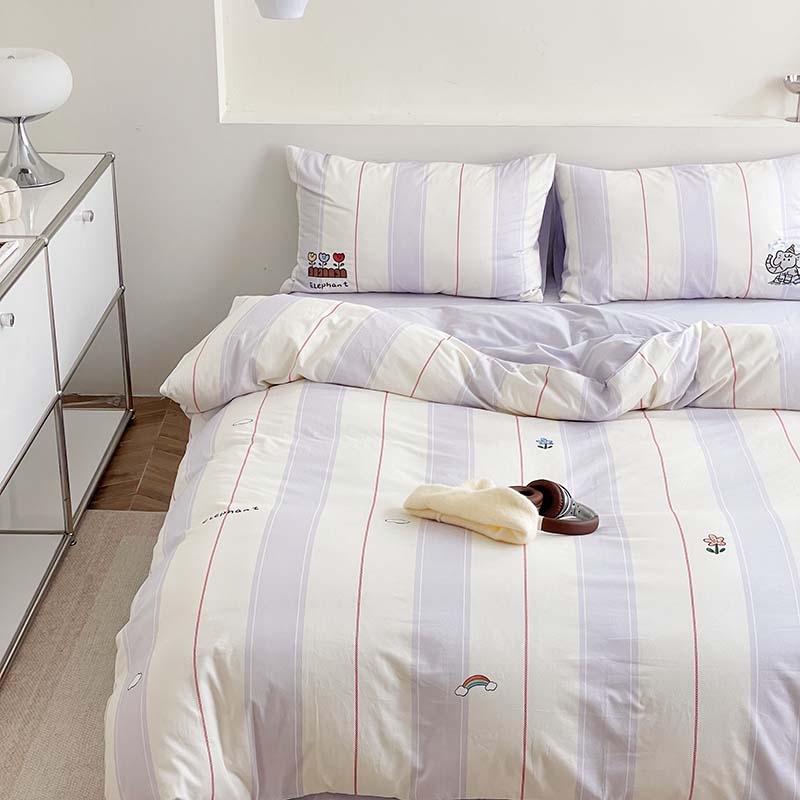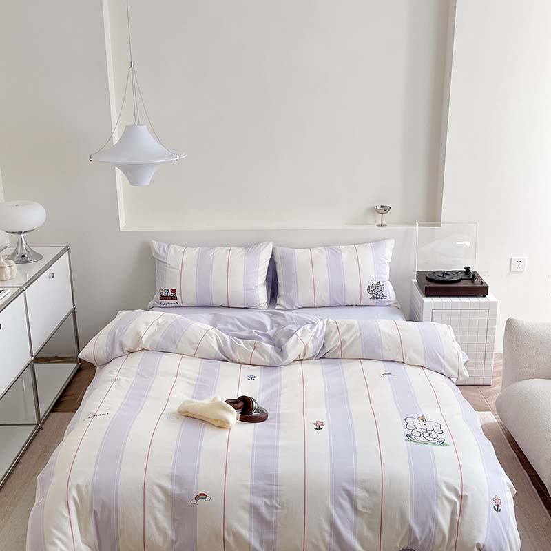 (总)圆岛家纺 2023冬季新款全棉加厚磨毛刺绣四件套-场景二,假日小象,猫咪日记