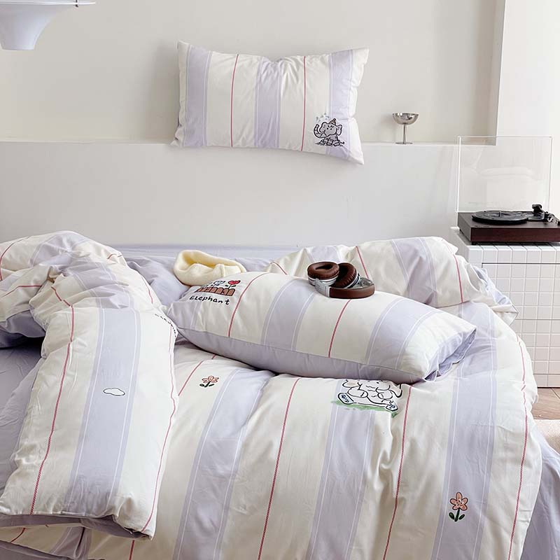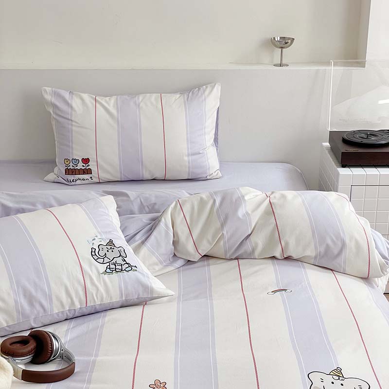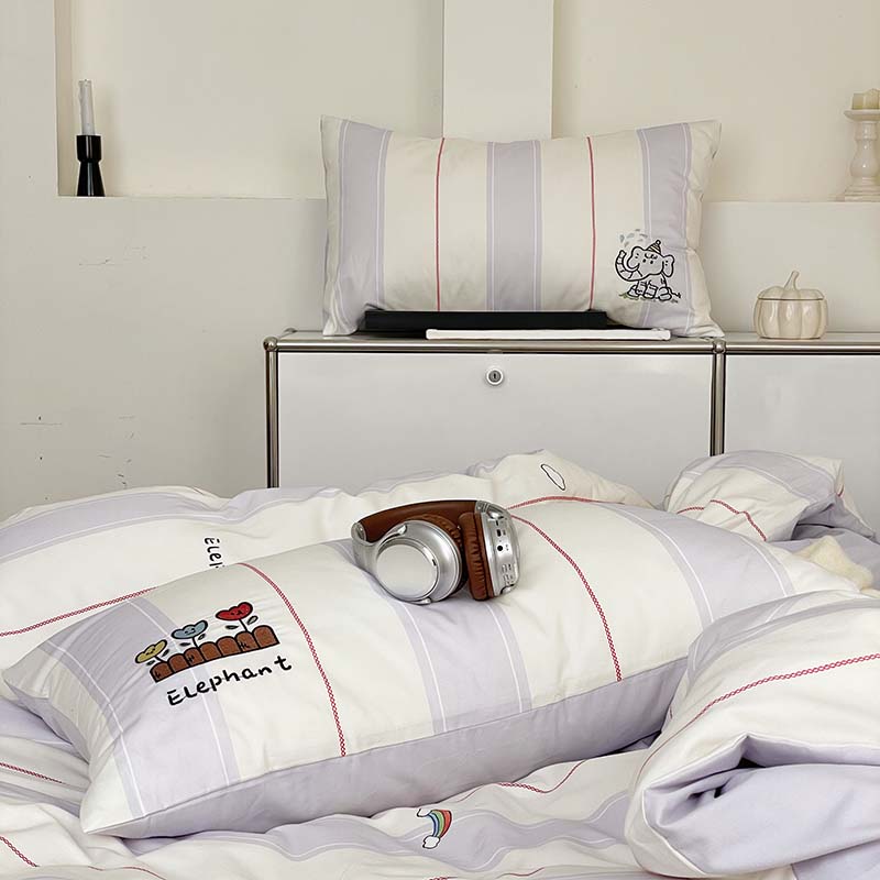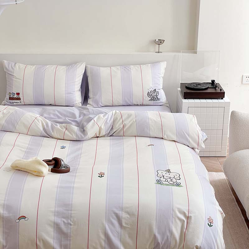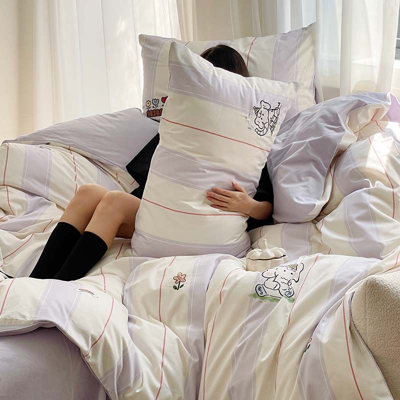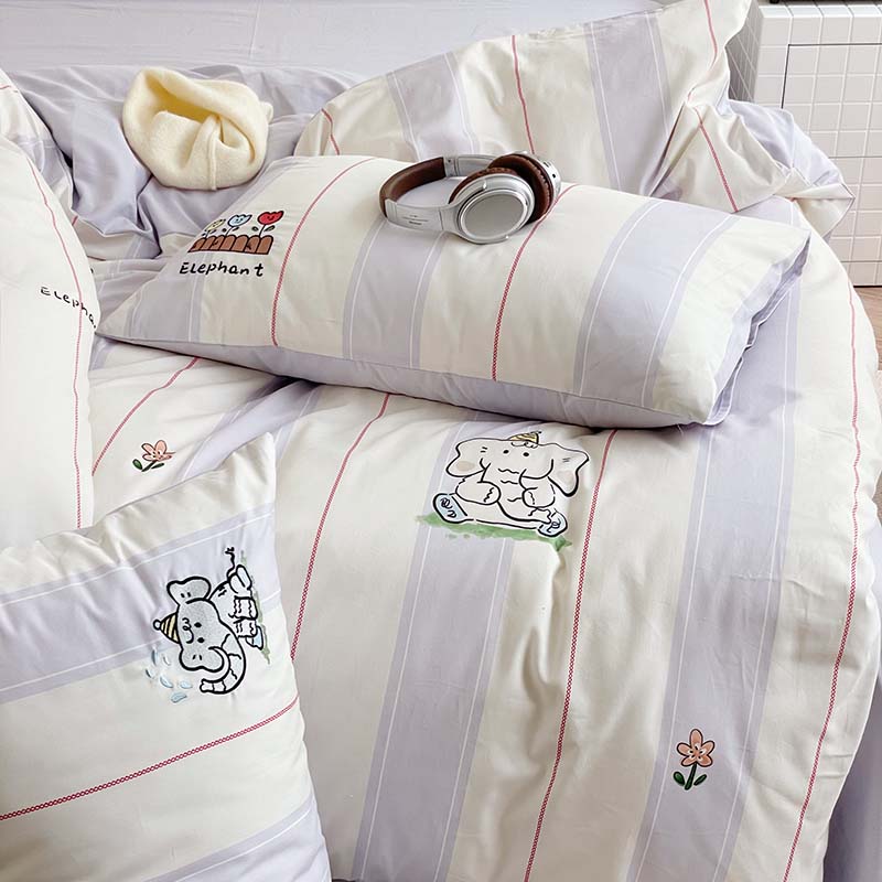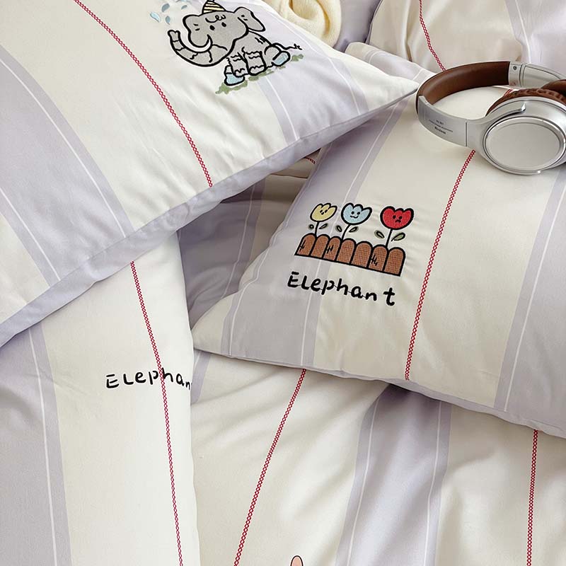 圆岛家纺 2023冬季新款全棉加厚磨毛刺绣四件套-场景二 假日小象