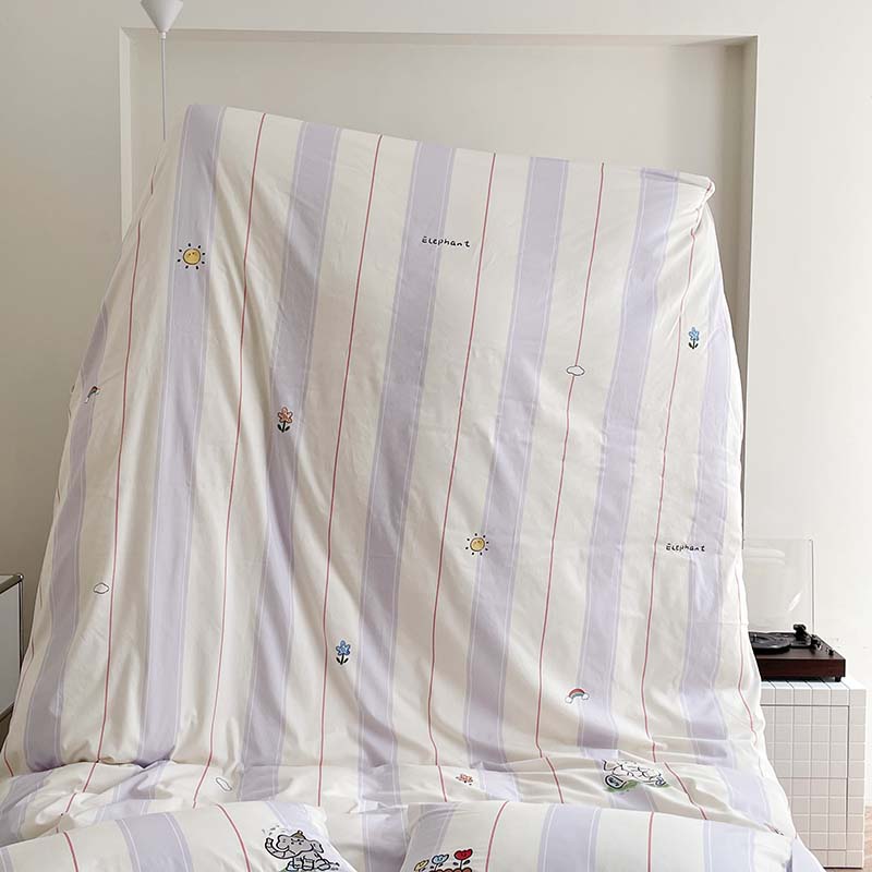 (总)圆岛家纺 2023冬季新款全棉加厚磨毛刺绣四件套-场景一,假日小象,猫咪日记