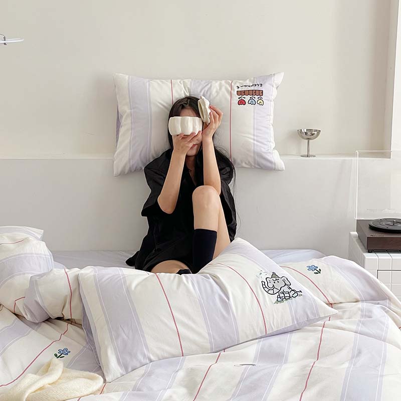 (总)圆岛家纺 2023新款可单卖单品枕套图1,Luv紫,葵绿条,奶牛斑点,薇粉细条,心心,星岛