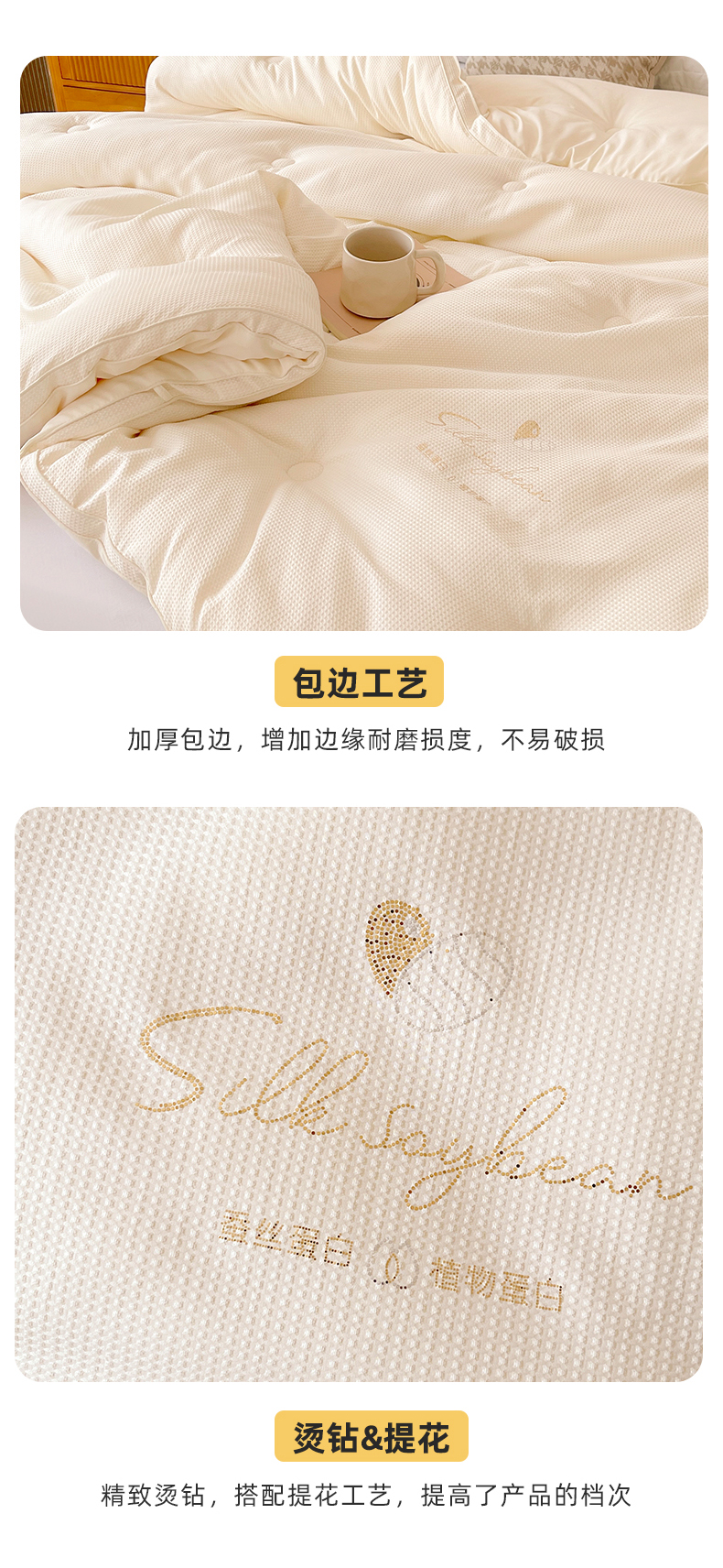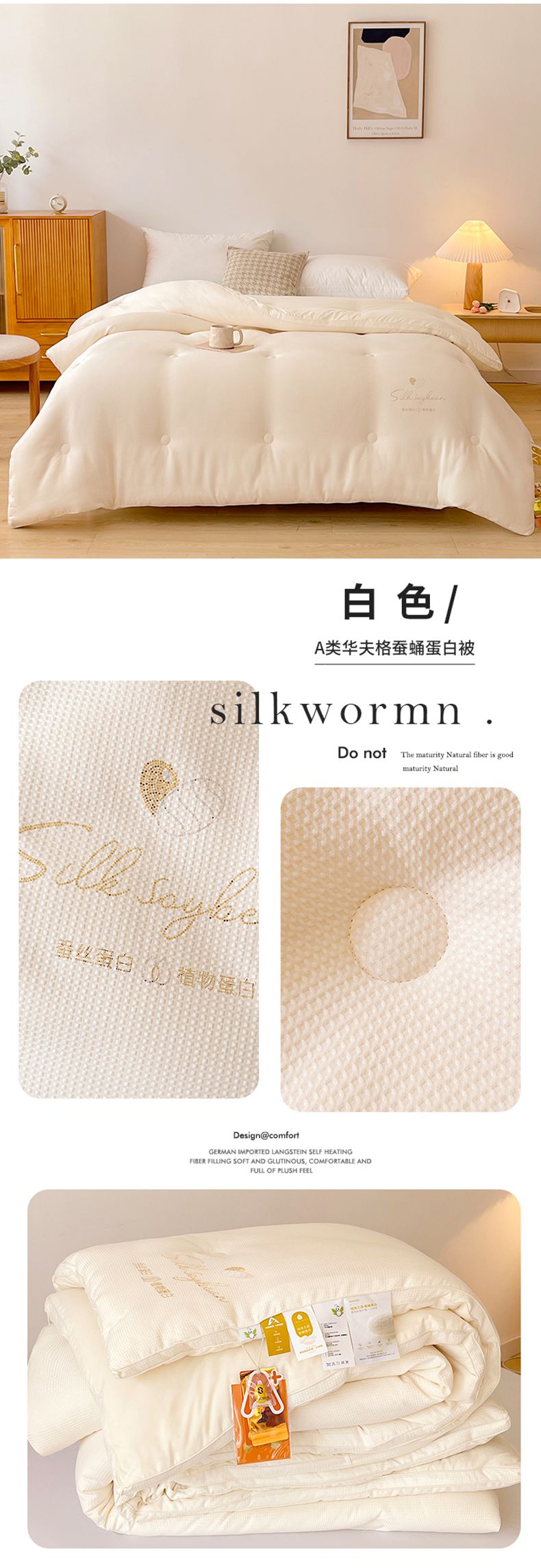 • 91家纺网 家纺一手货源 找家纺 伊被源 2023秋冬新款A类黄金蚕蛹蛋白被 被子被芯---华夫格点点 白色