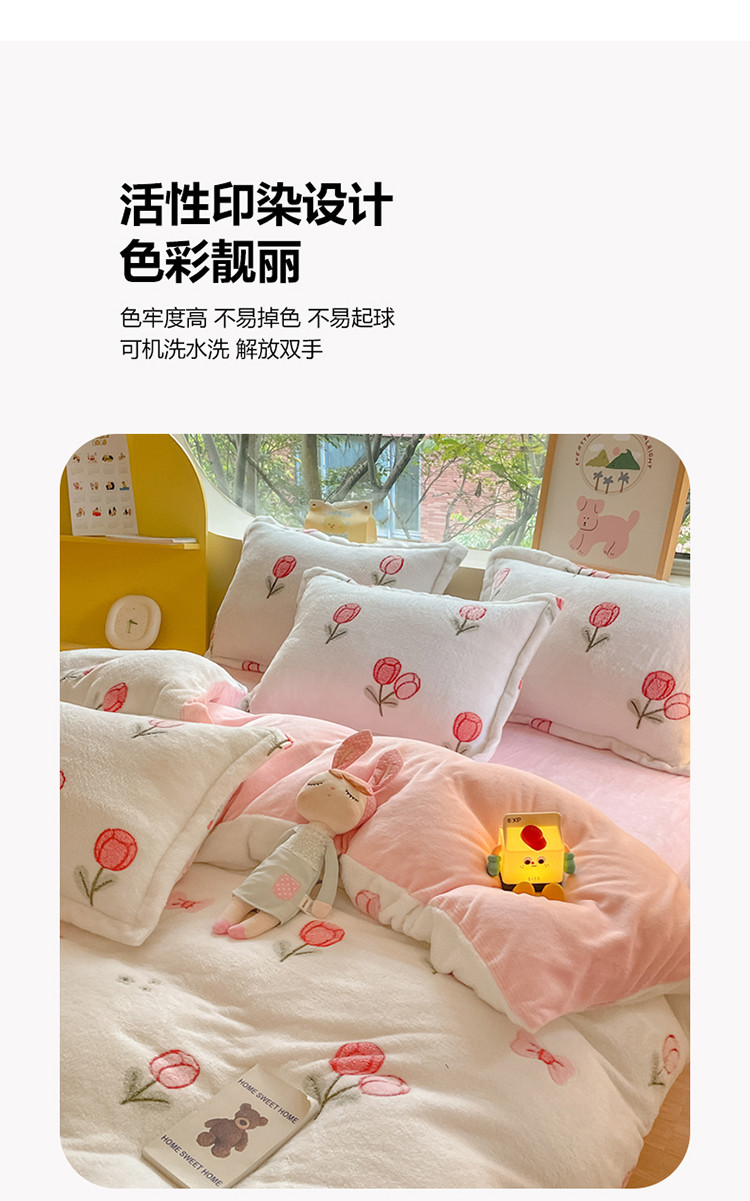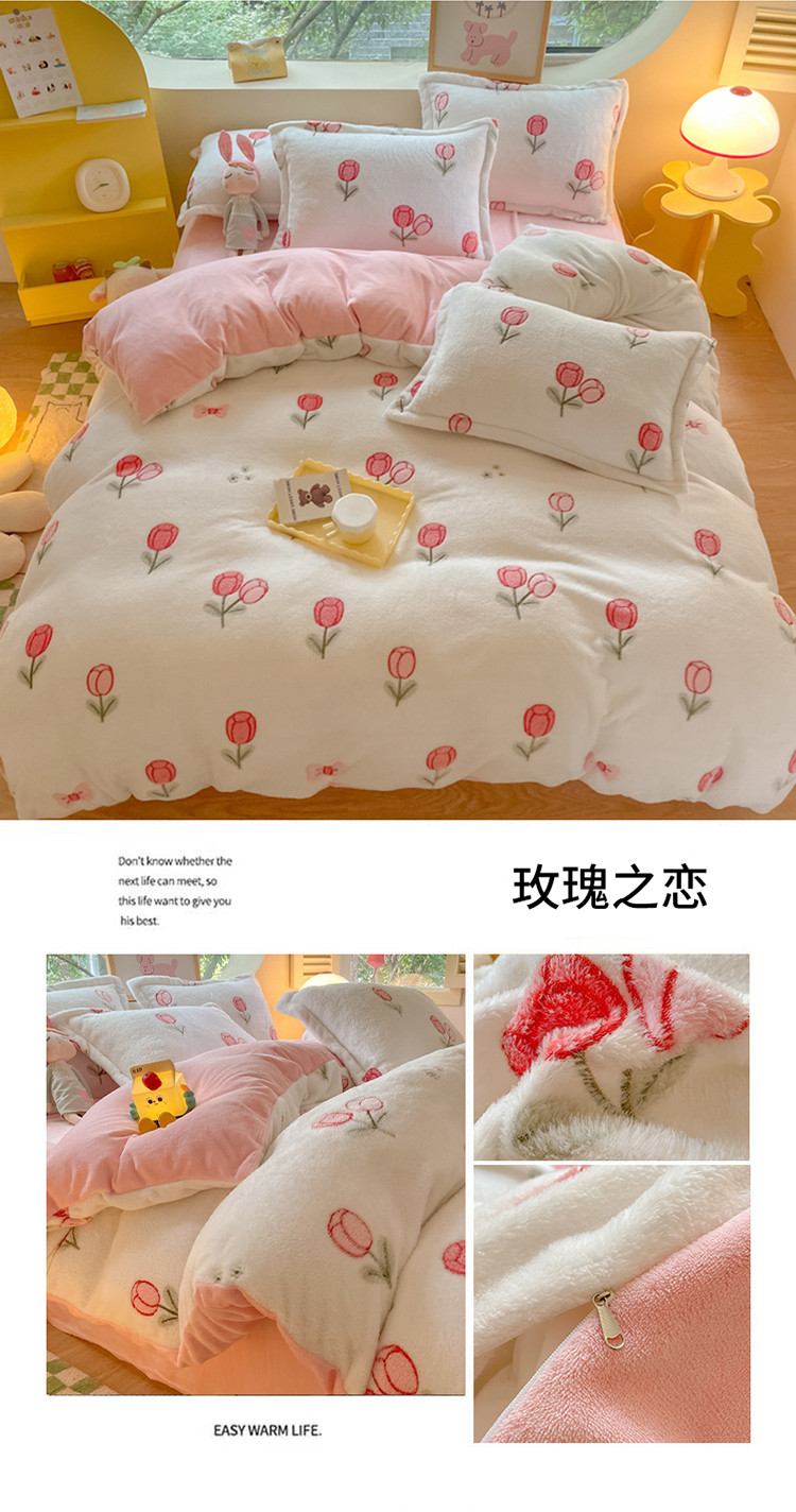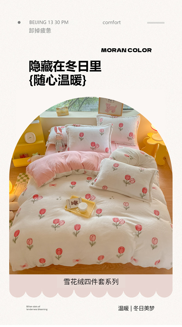 (总)慕尚家纺 2025新款豆豆绒刺绣四件套,大耳狗 白蓝,玫瑰 白粉