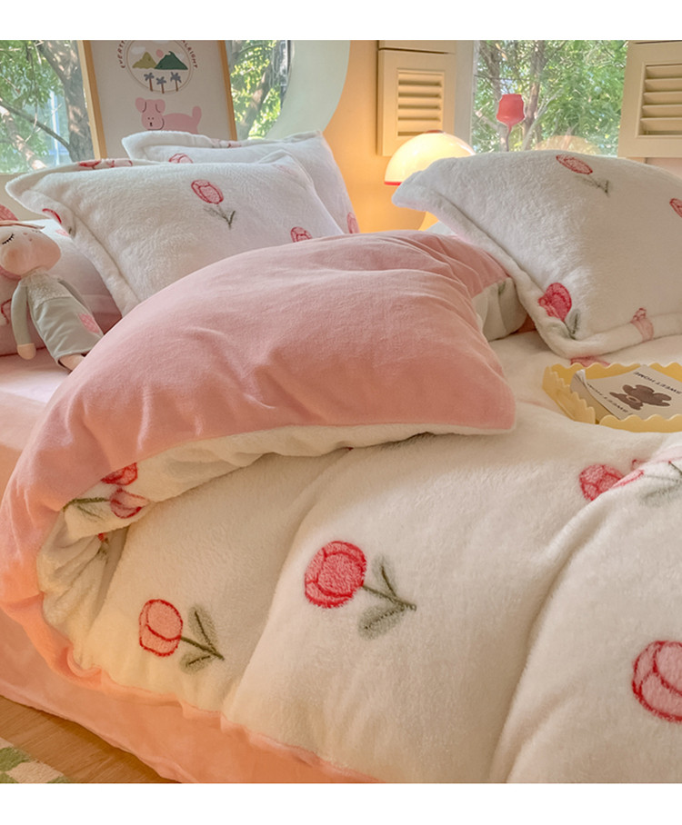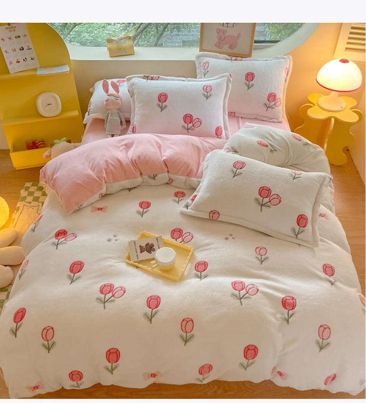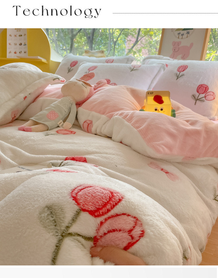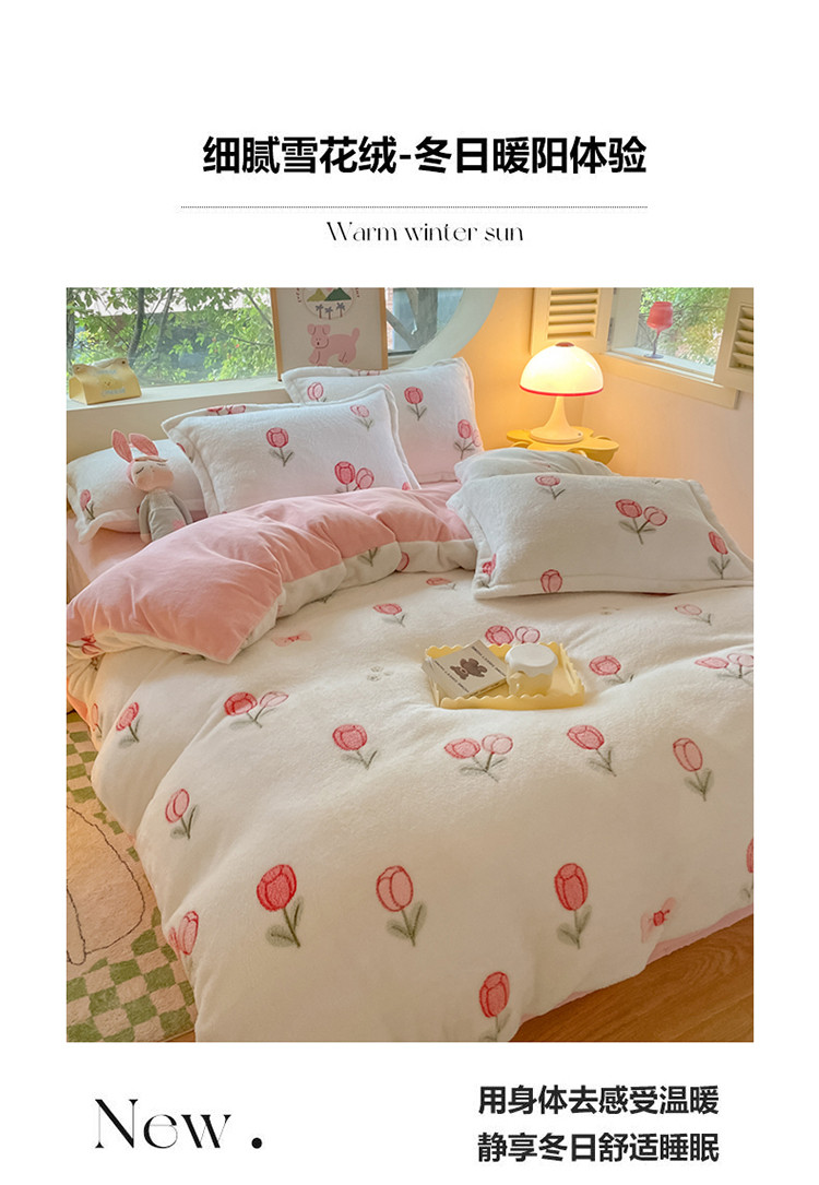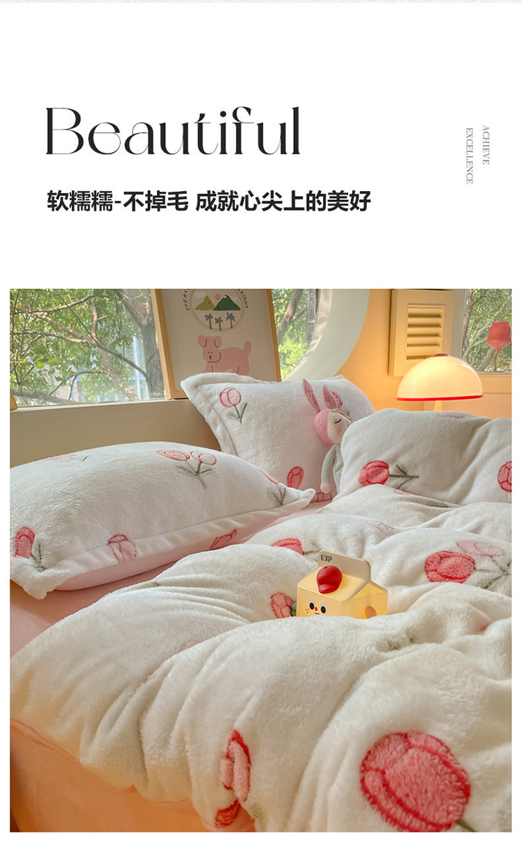 (总)慕尚家纺 2025新款豆豆绒刺绣四件套,大耳狗 白蓝,玫瑰 白粉