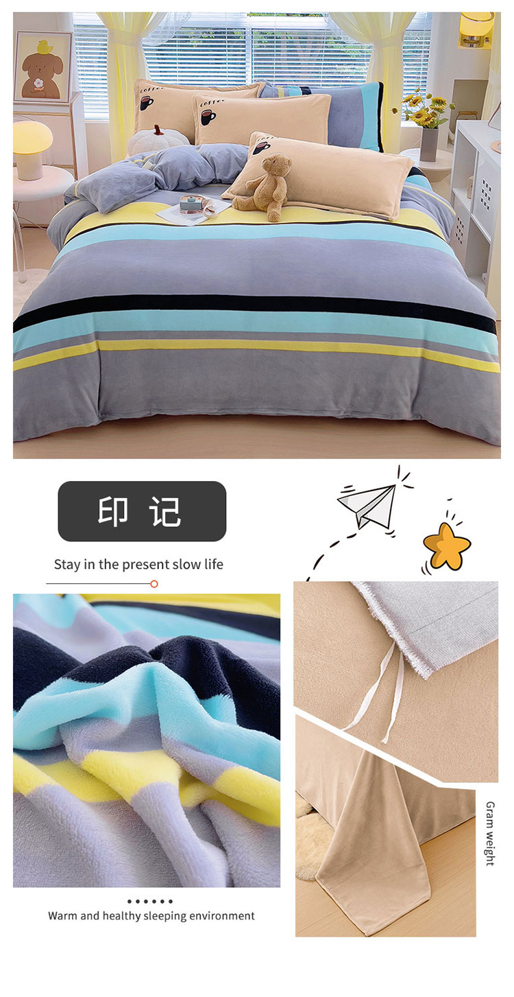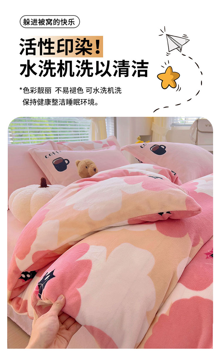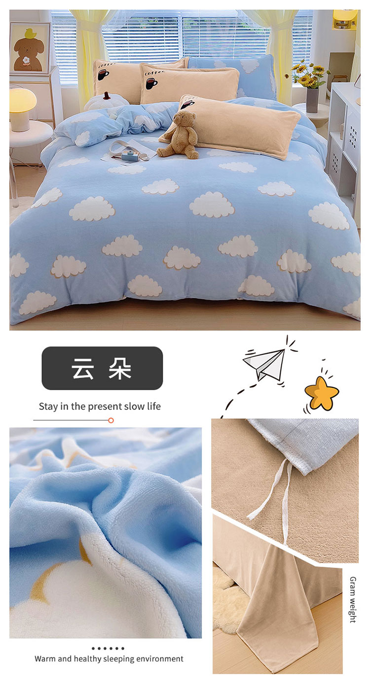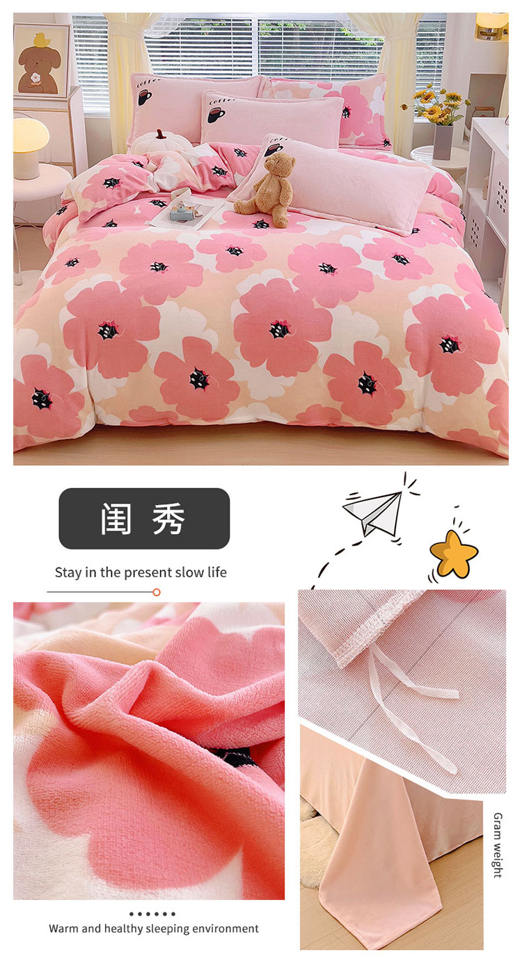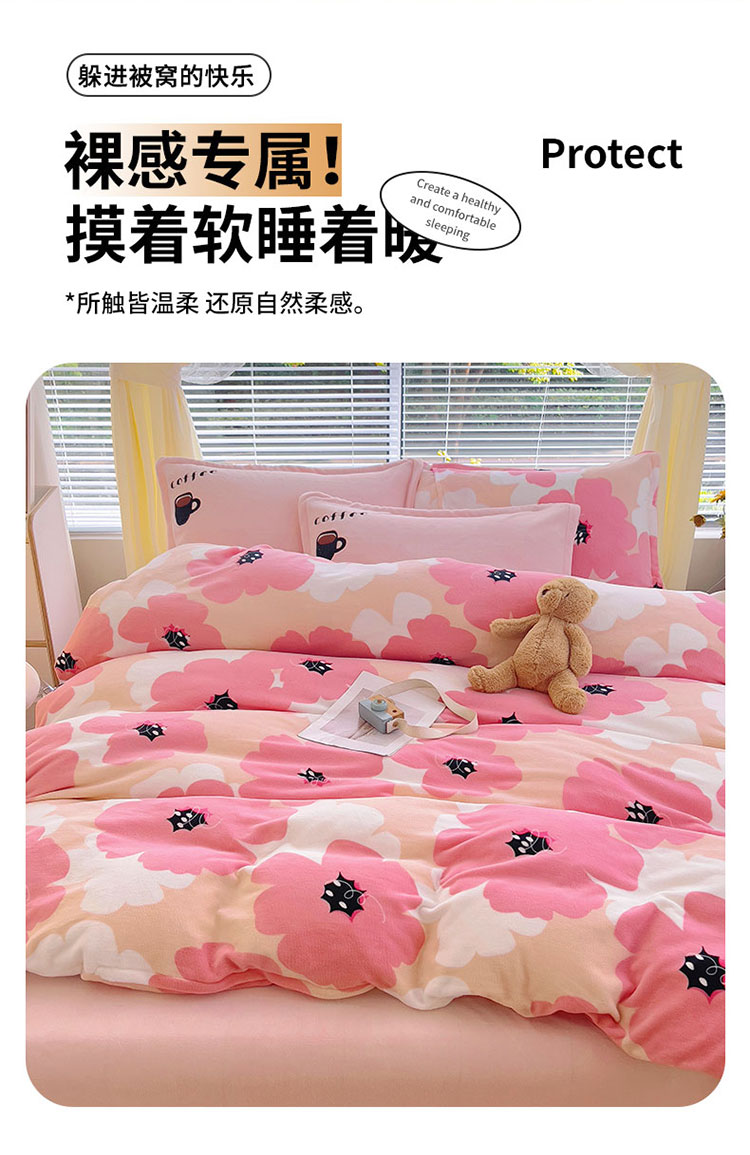 冬季卡通牛奶绒床上四件套加厚珊瑚绒双面法莱绒床单三件套 闺秀