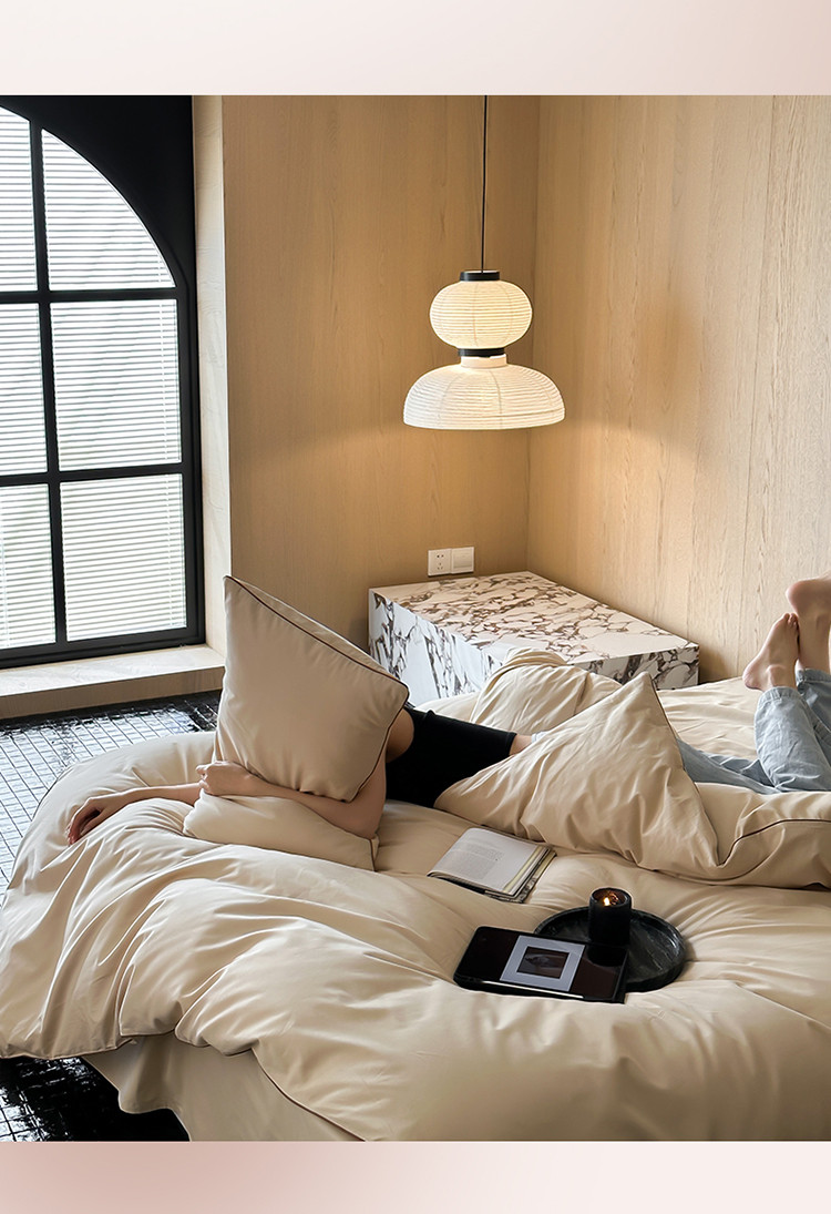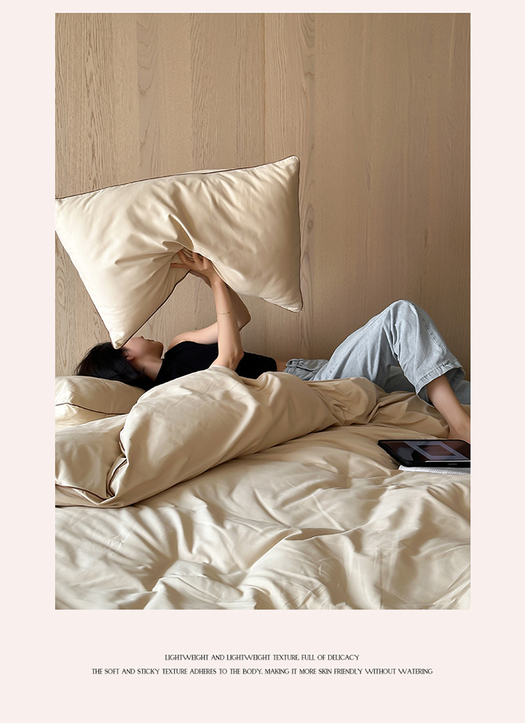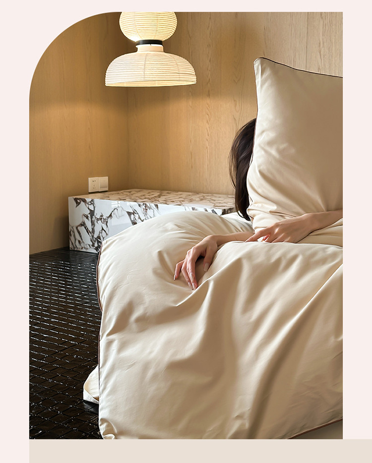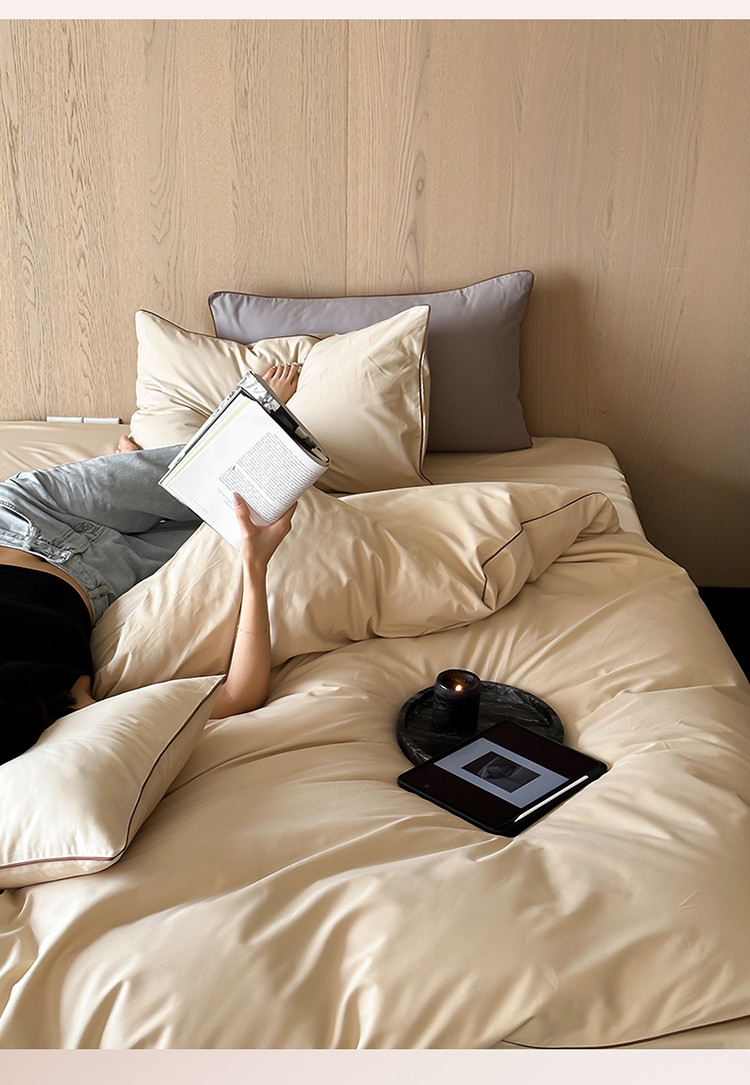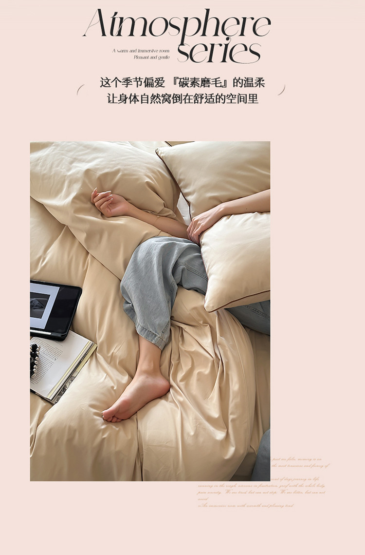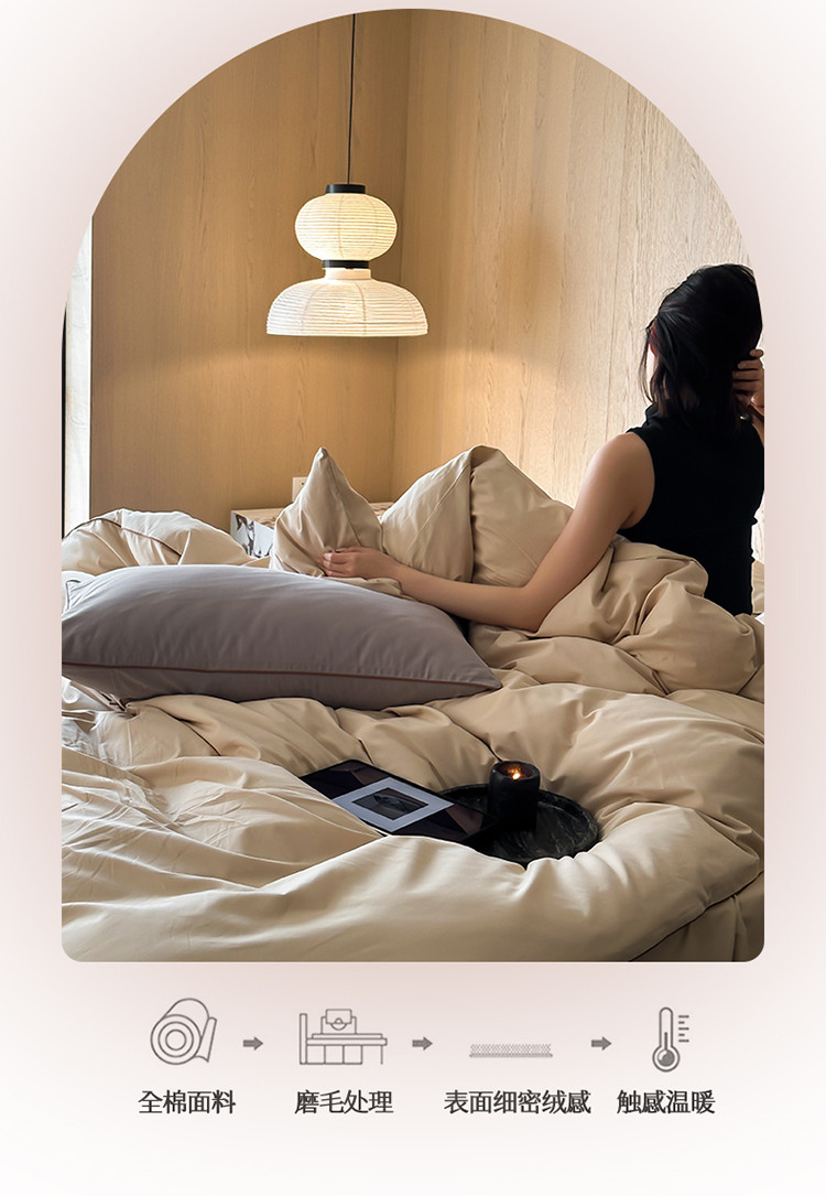 三味舒屋新款50s美拉德长绒棉磨毛嵌绳撞色四件套棚拍图 曲奇