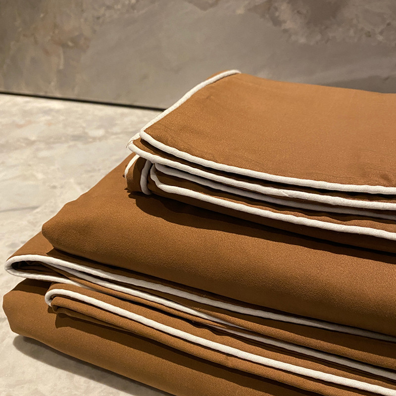 三味舒屋50s美拉德长绒棉磨毛嵌绳撞色四件套叠拍实拍图 金属咖