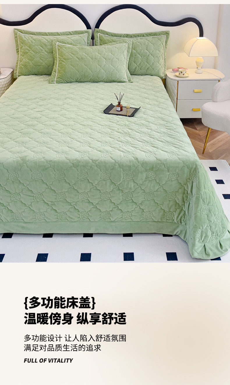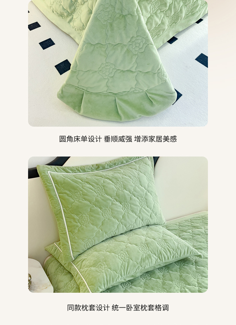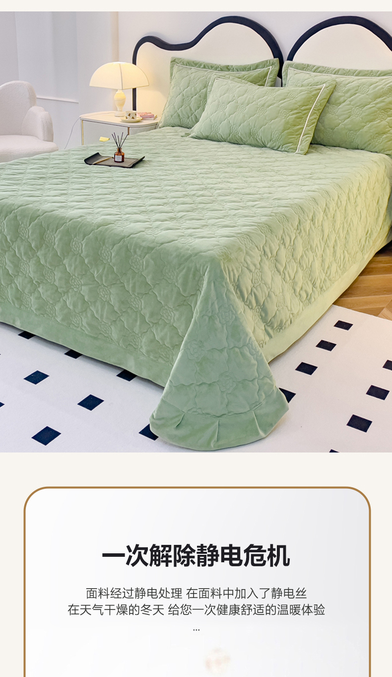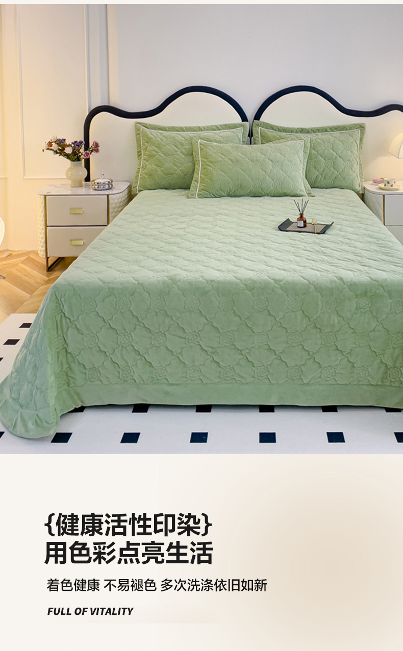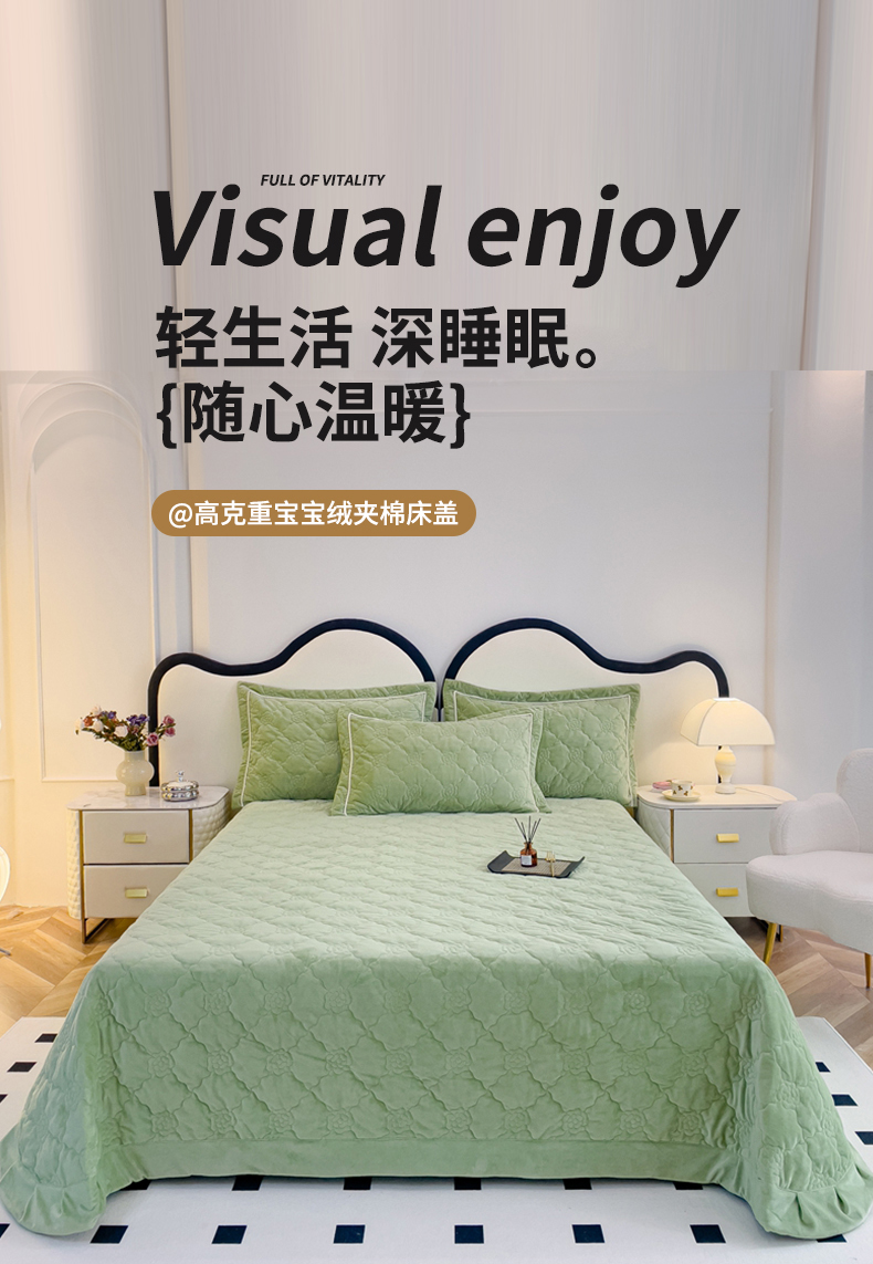 优乐家纺 2025新款高克重宝宝绒夹棉床盖系列三件套 爱丽丝-青春绿