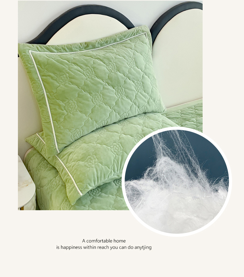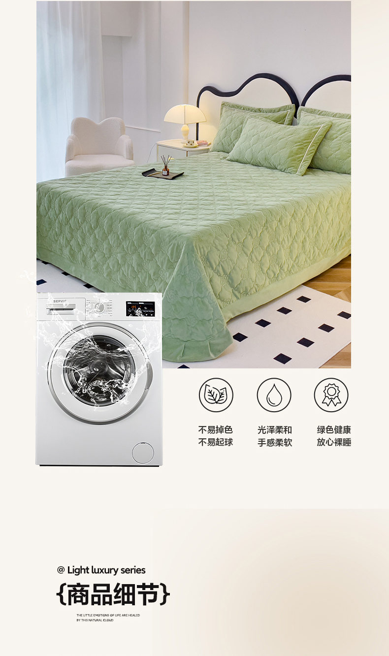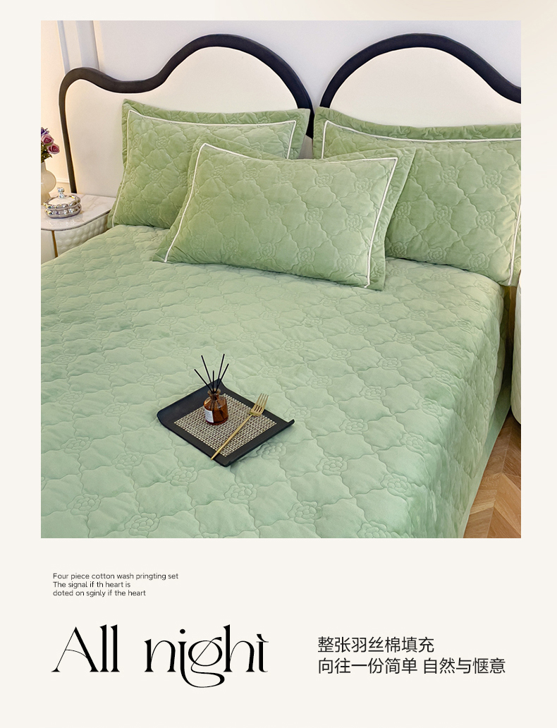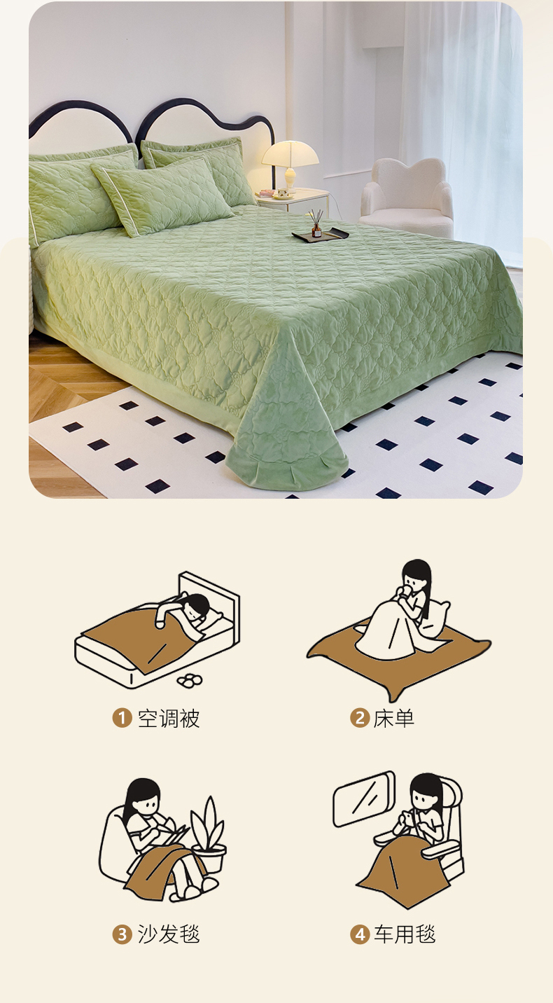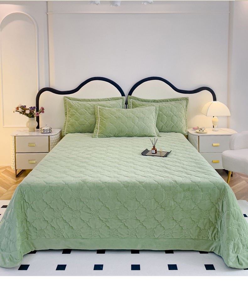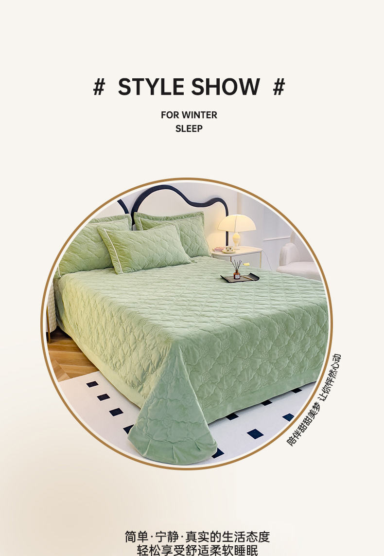 优乐家纺 2025新款高克重宝宝绒夹棉床盖系列三件套 爱丽丝-青春绿