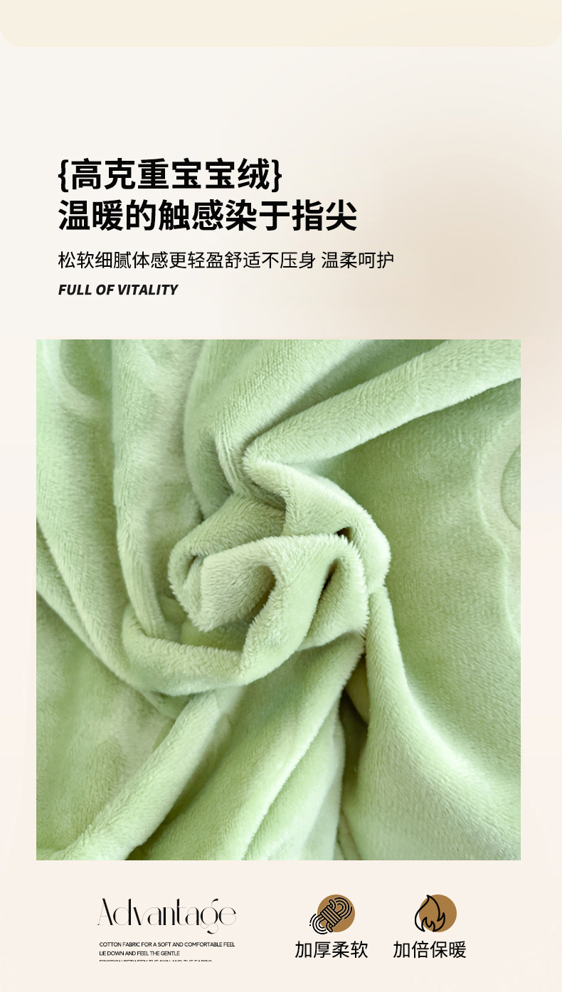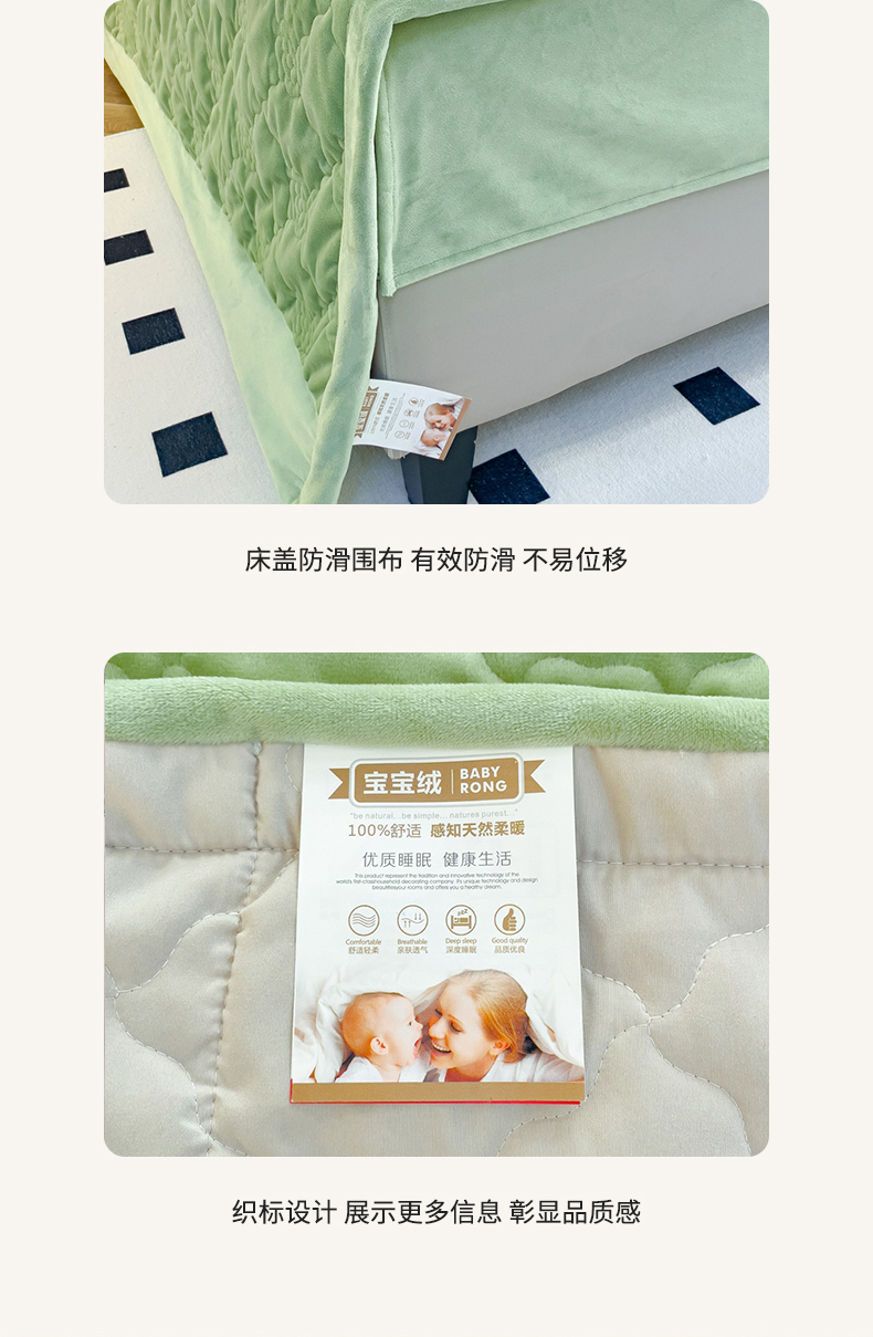 商品名称:优乐家纺 2025新款高克重宝宝绒夹棉床盖系列三件套 爱丽丝-青春绿