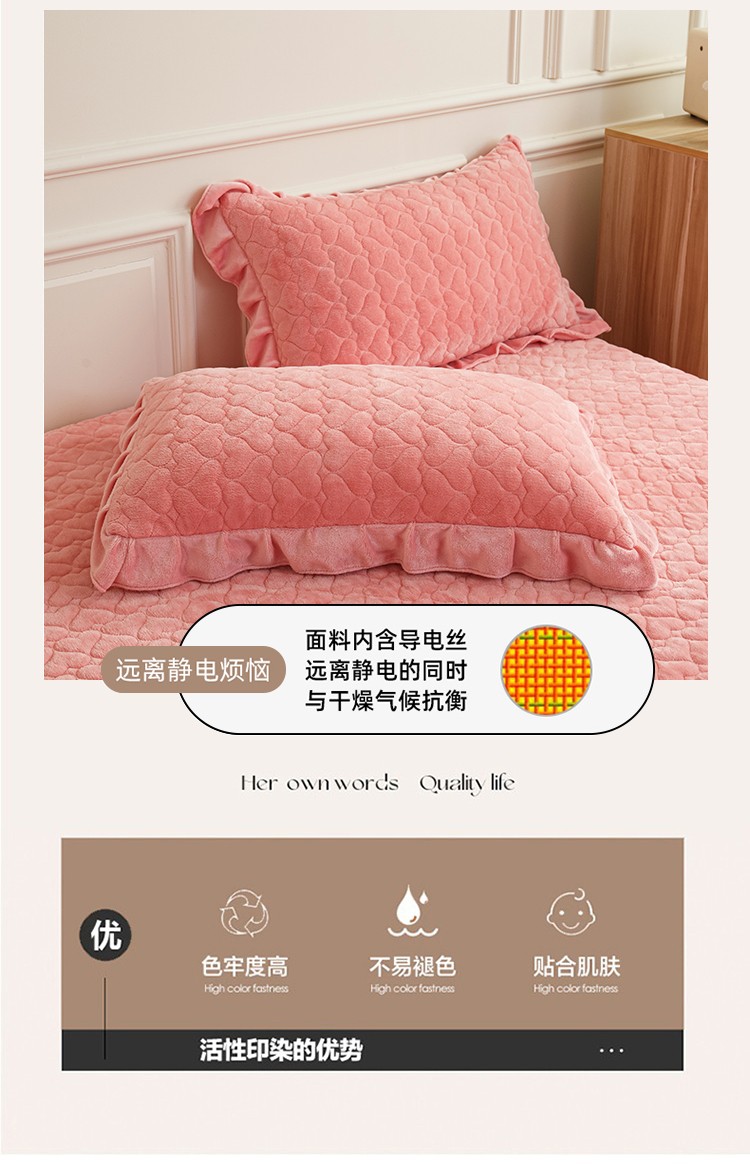 12斤230g全消光牛奶绒夹棉床盖四件套兔兔绒绒蕾丝床裙款四件套