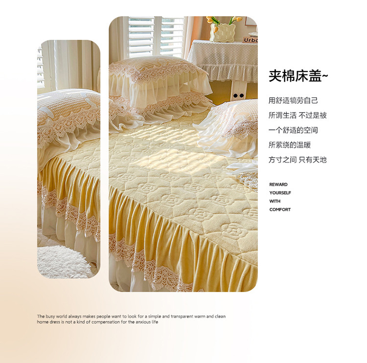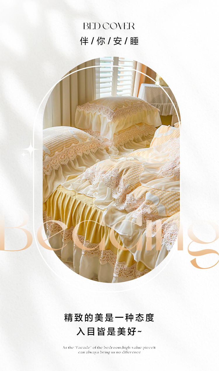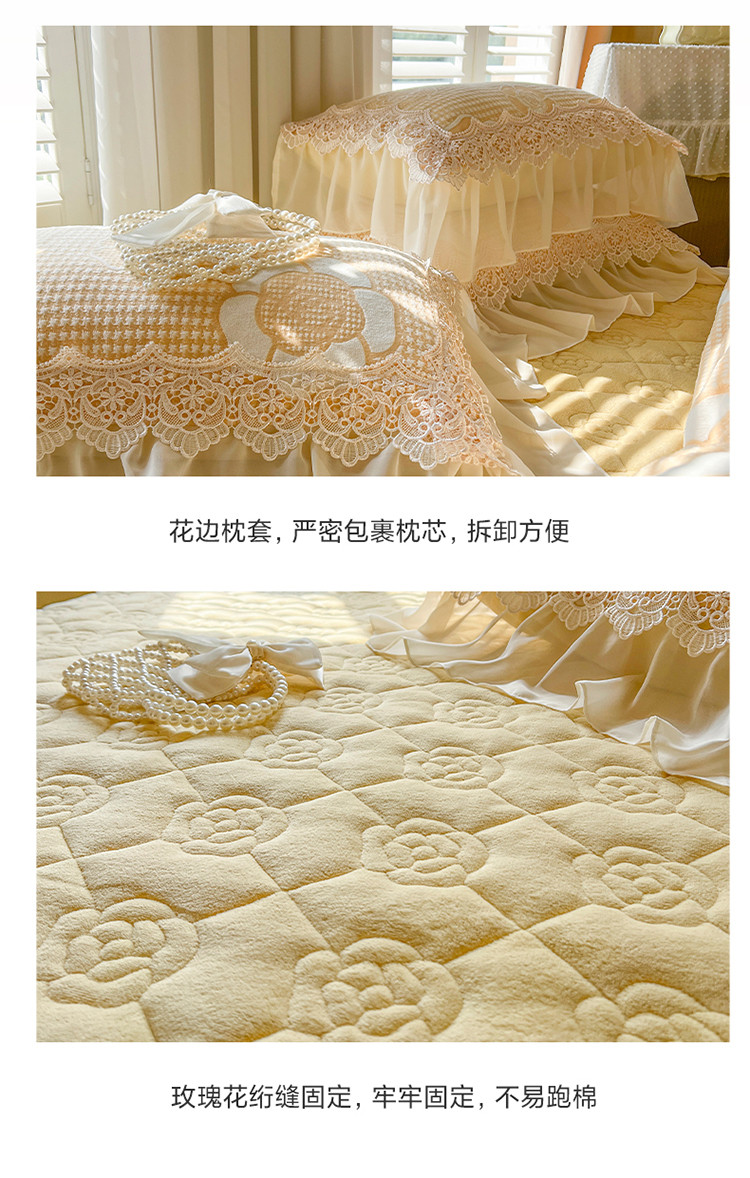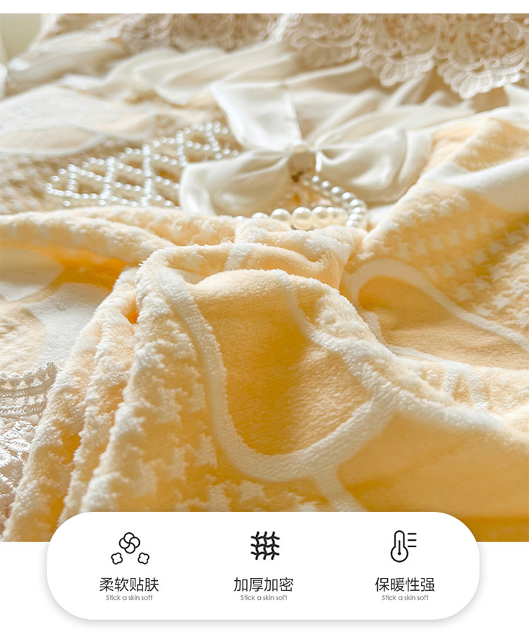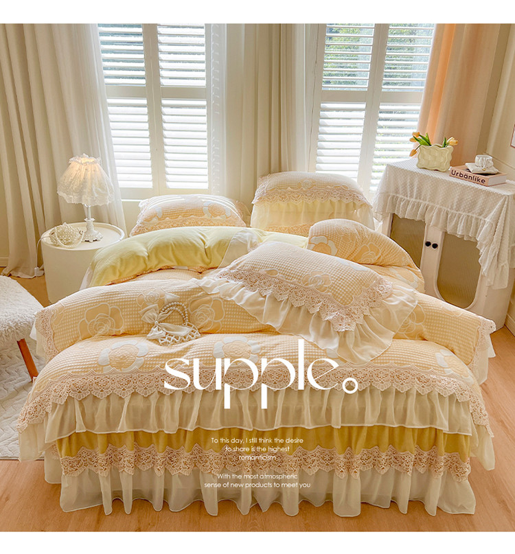 当前位置: 91家纺网 > 商品网购 > 床品套件 > 四件套 > 牛奶绒四件套 > 麒豆豆 2023新款高克重雕花牛奶绒四件套花边款花间浪漫纳米黄