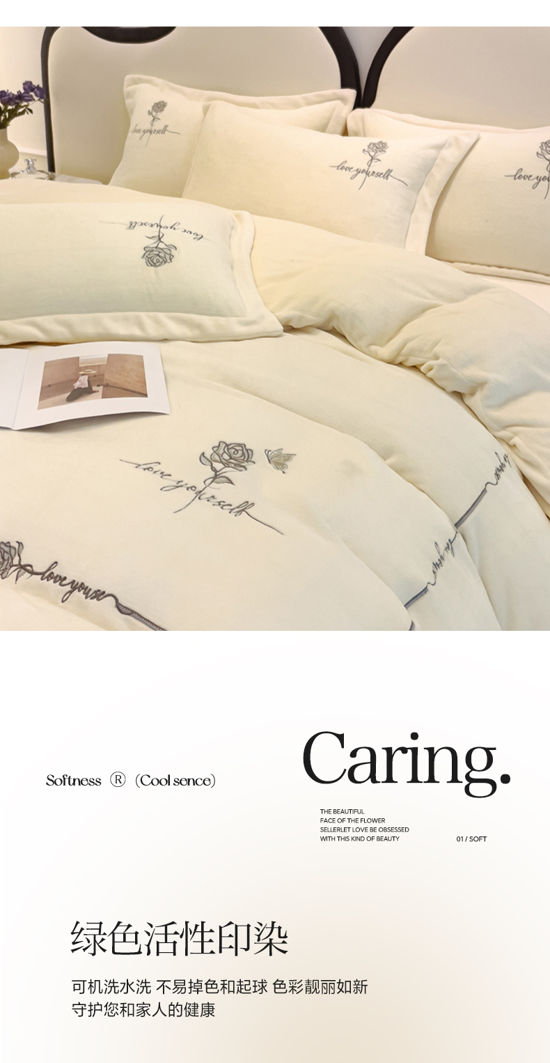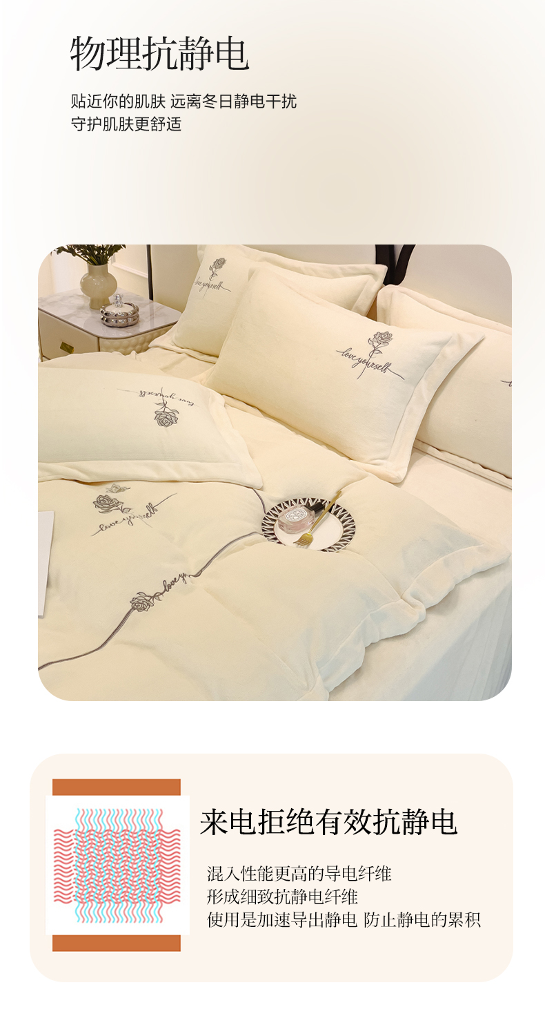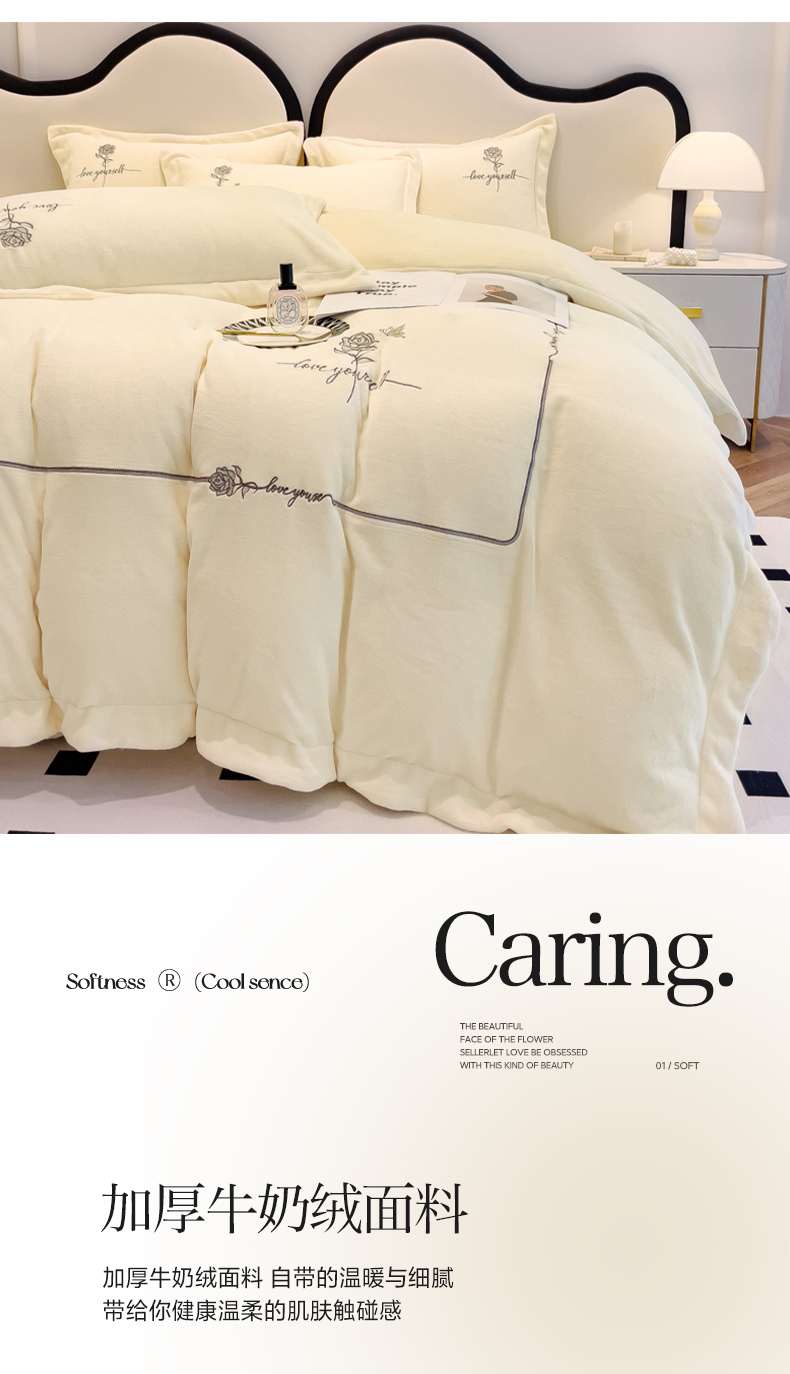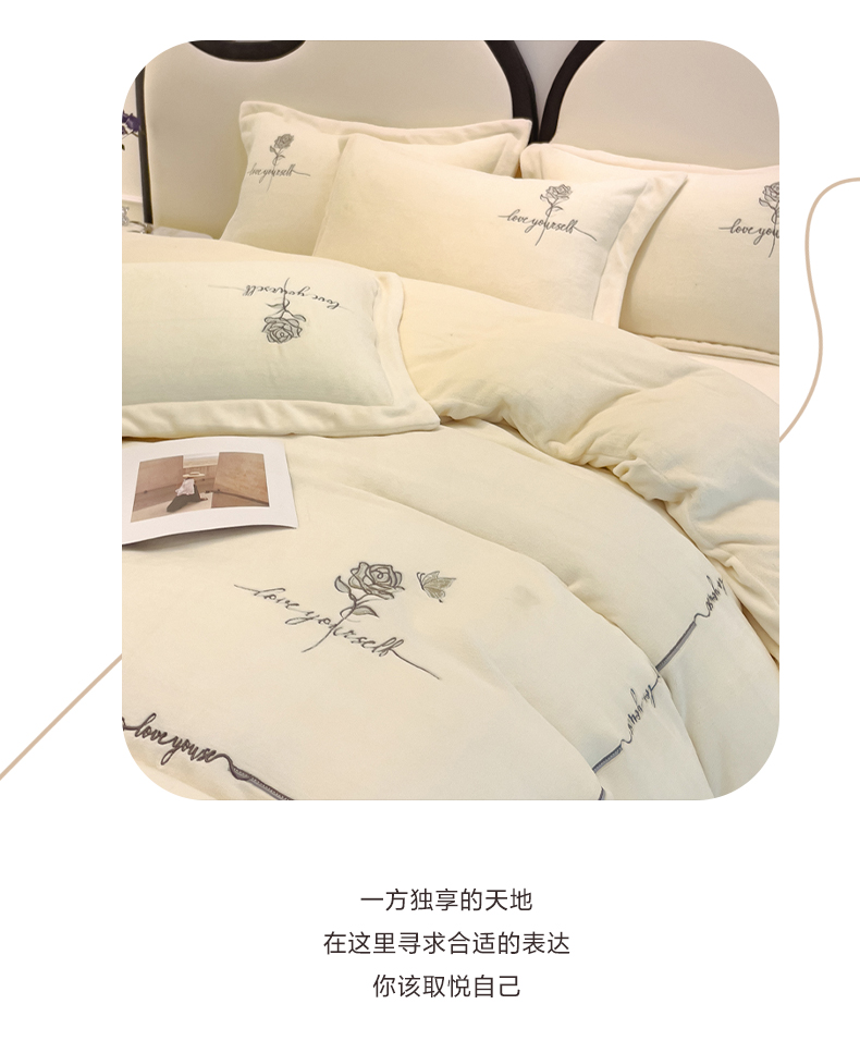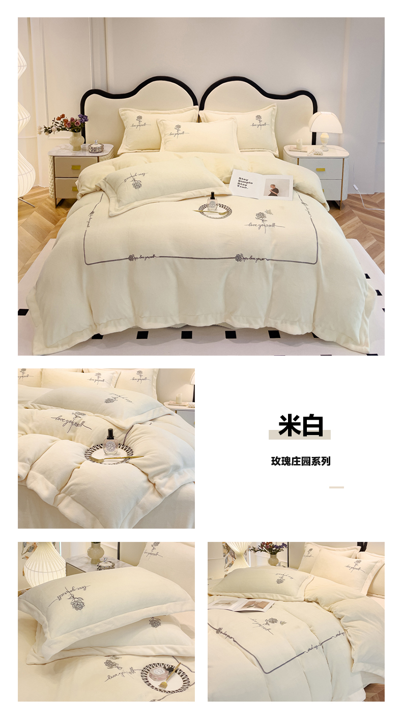 宜家坊 2023秋冬新款高克重牛奶绒轻奢花卉刺绣-玫瑰庄园系列 玫瑰庄园-米白