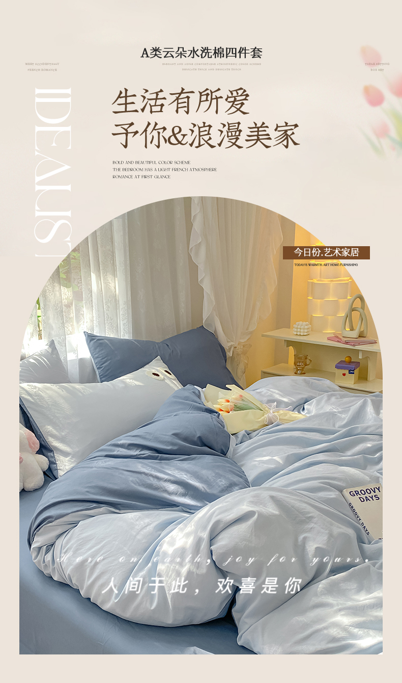 当前位置: 91家纺网 > 商品网购 > 床品套件 > 四件套 > 全棉普通四件套 > 凯洛奇 2023新款1超柔云朵棉大眼系列四件套 天蓝+宝石蓝