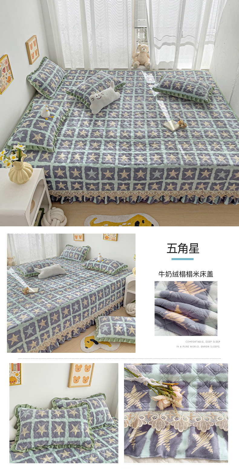 羽爱家纺 2024新款牛奶绒榻榻米床盖 五角星