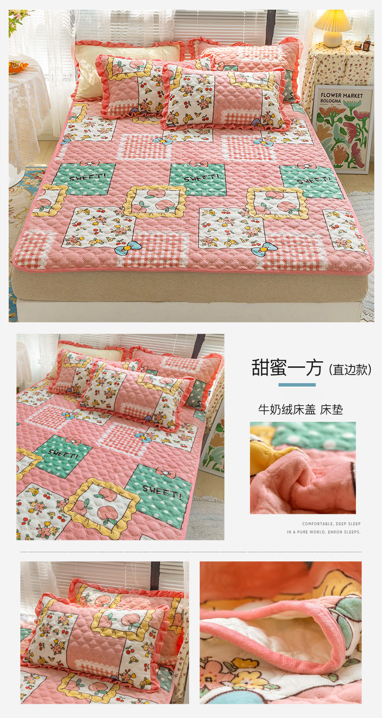 羽爱家纺 2024新款牛奶绒直边款床盖床垫 甜蜜一方