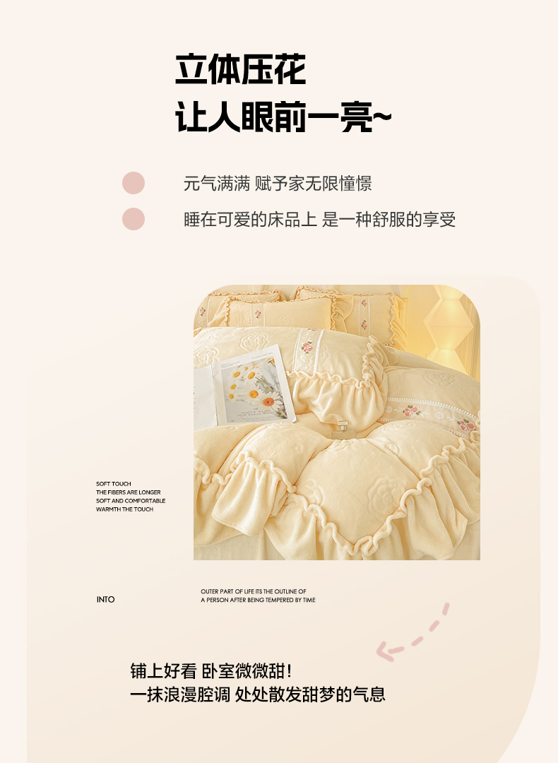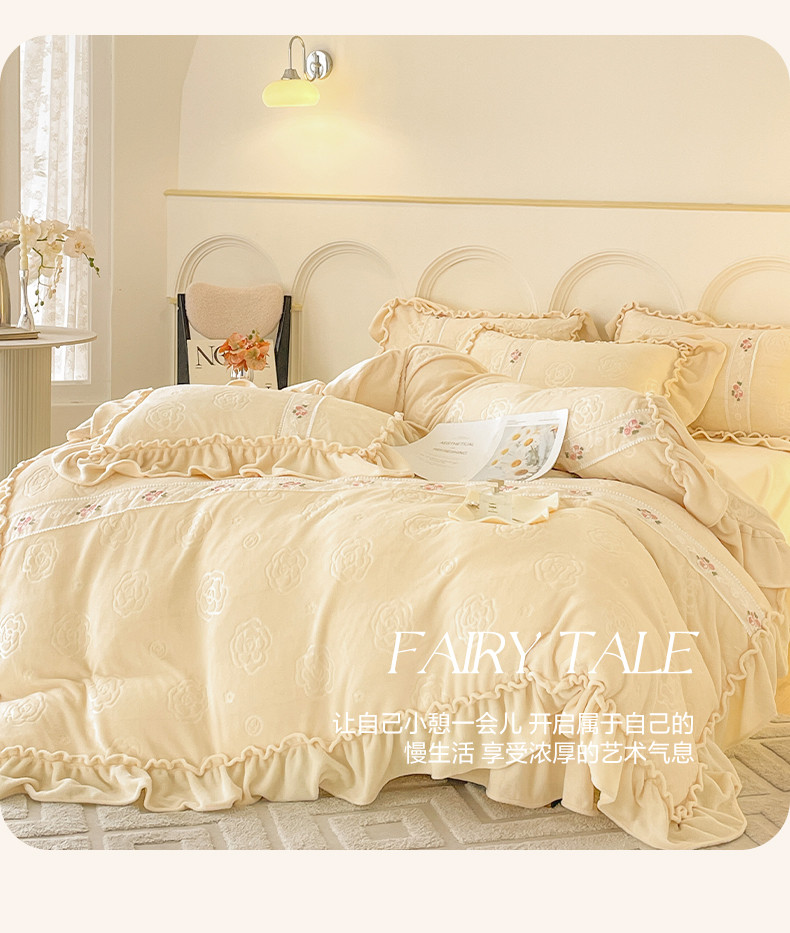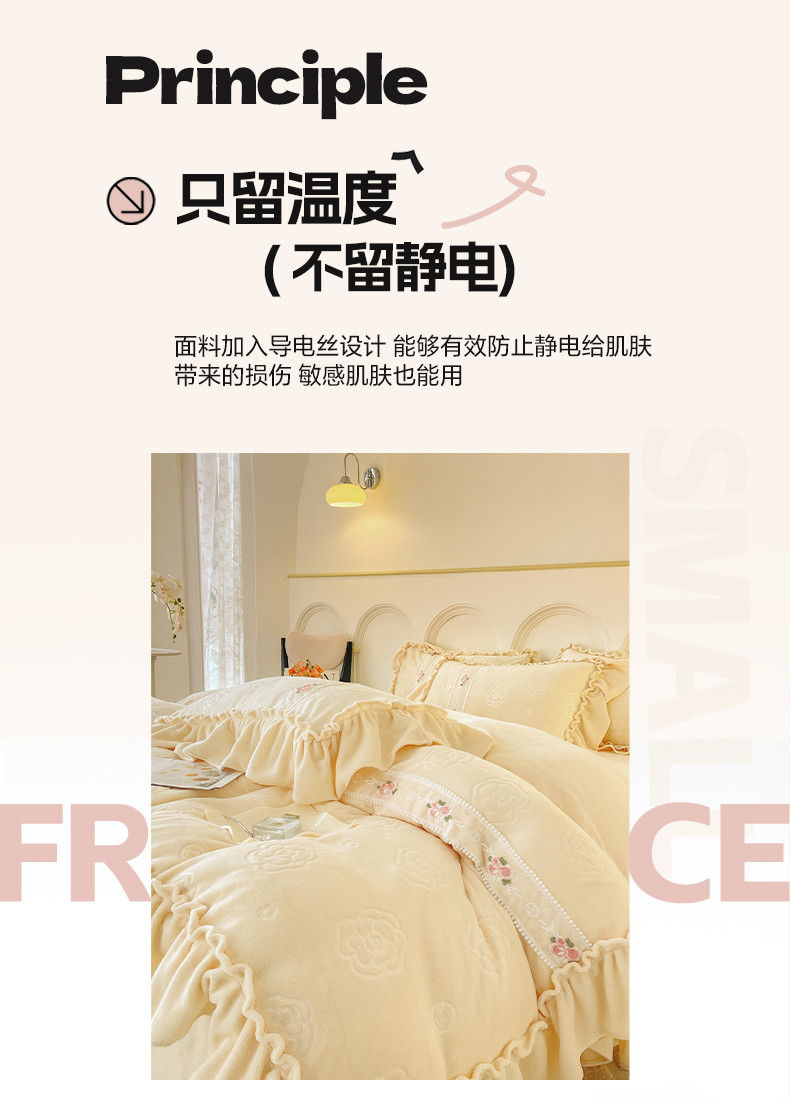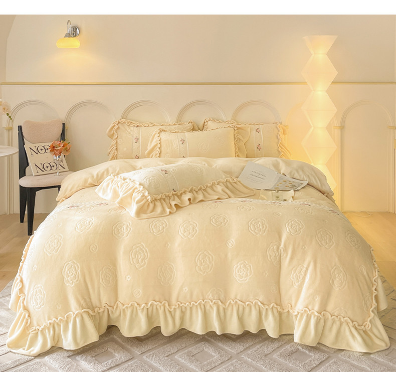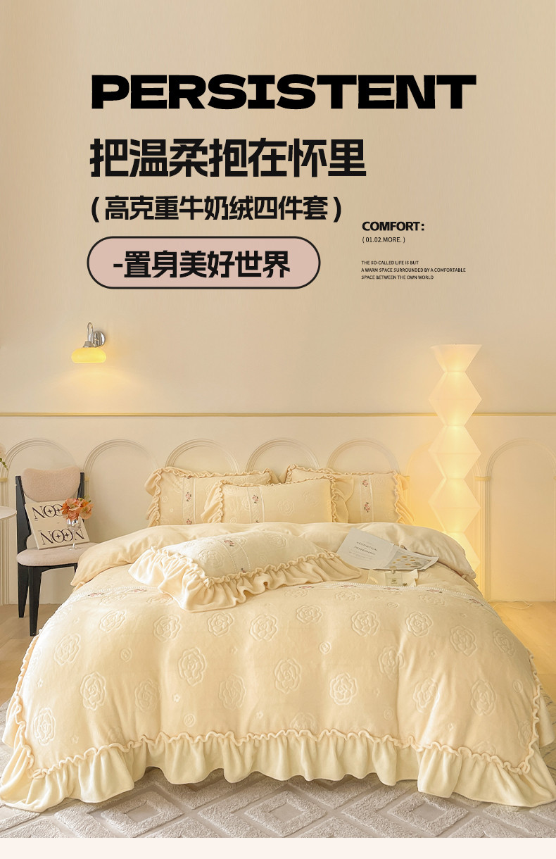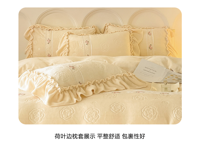 (总)逸尚阁 2025新款立体雕花牛奶绒花边款四件套--塔丽娜系列,塔丽娜-奶白粉,塔丽娜-玫瑰粉,塔丽娜-奶黄色,塔丽娜-浅玉色,塔丽娜-天空蓝