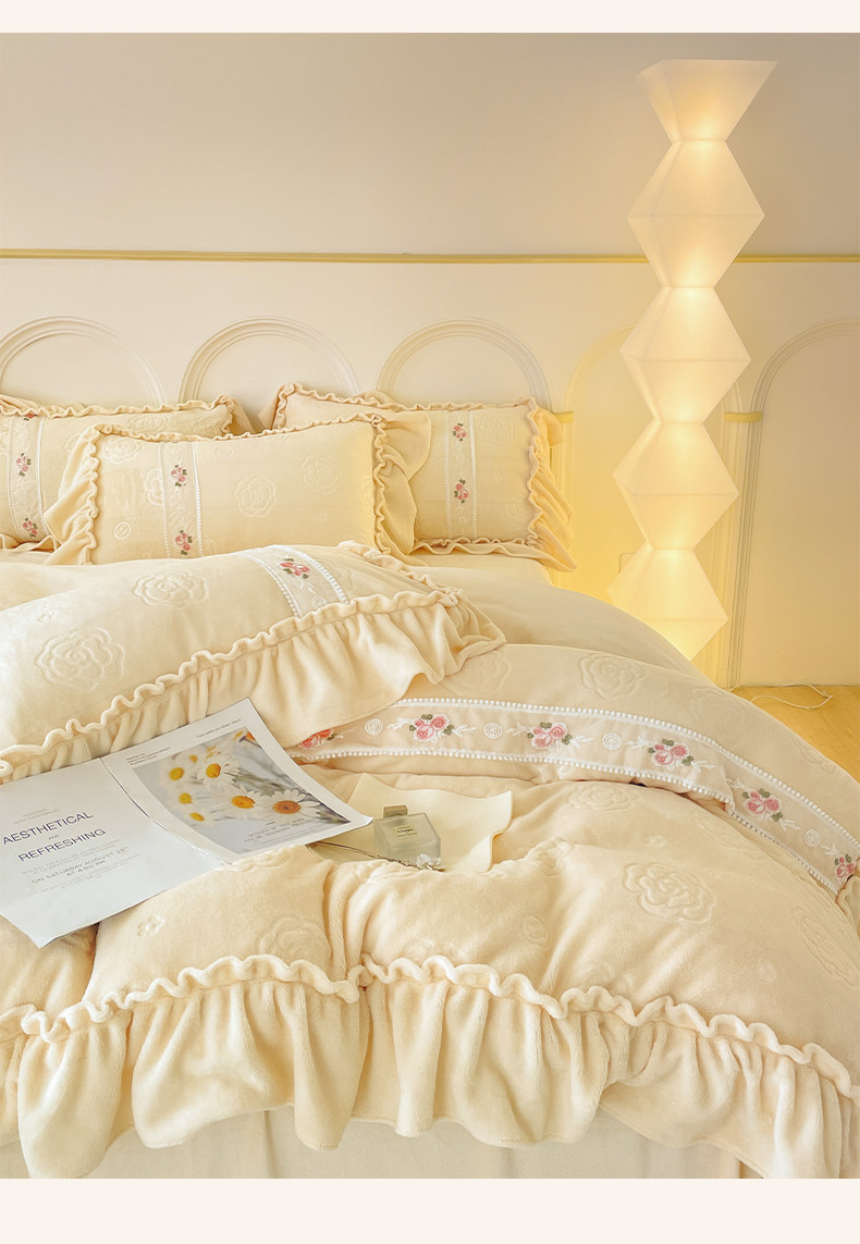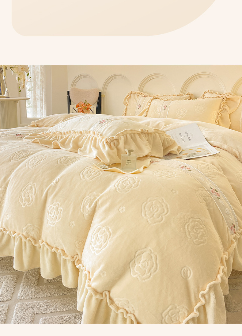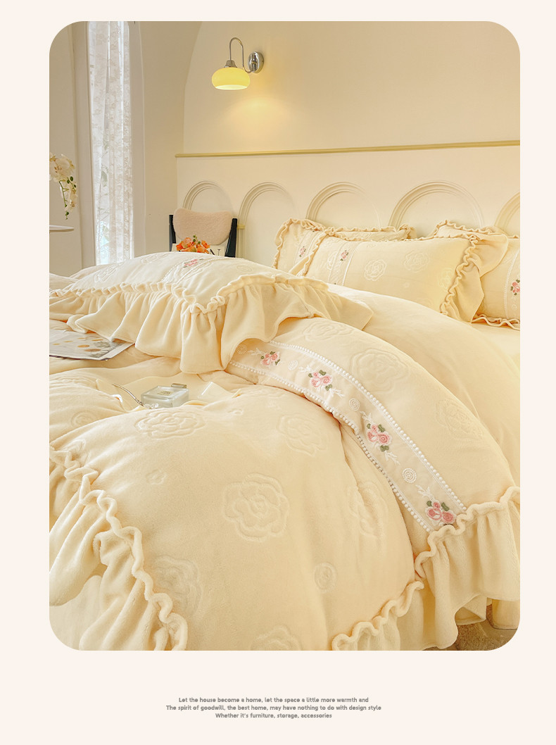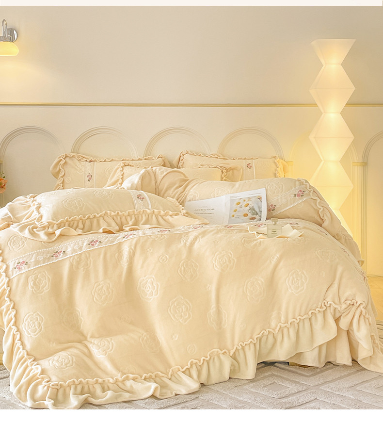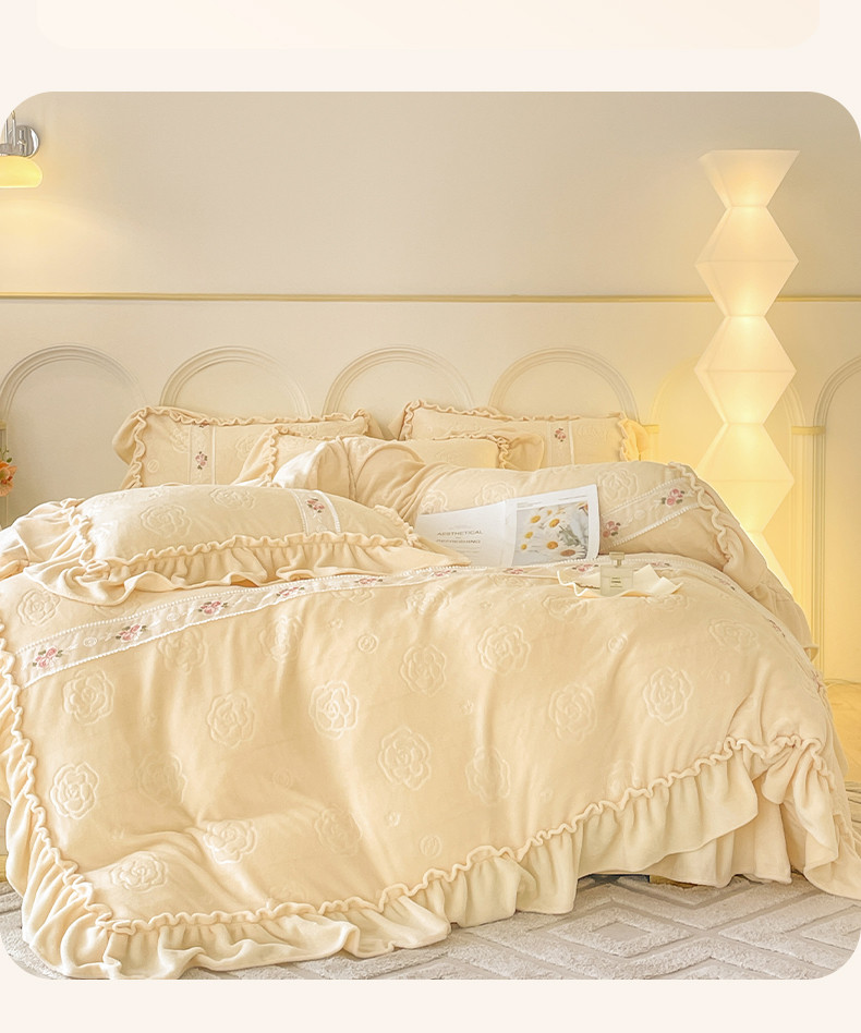 (总)逸尚阁 2025新款立体雕花牛奶绒花边款四件套--塔丽娜系列,塔丽娜-奶白粉,塔丽娜-玫瑰粉,塔丽娜-奶黄色,塔丽娜-浅玉色,塔丽娜-天空蓝