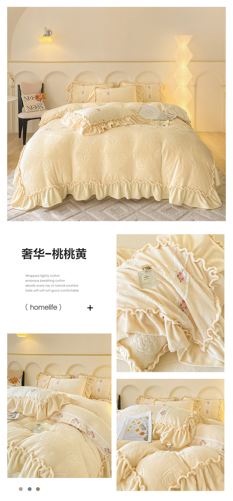 商品名称:逸尚阁 2024新款奢华系列高克重牛奶绒四件套 奢华-桃桃黄