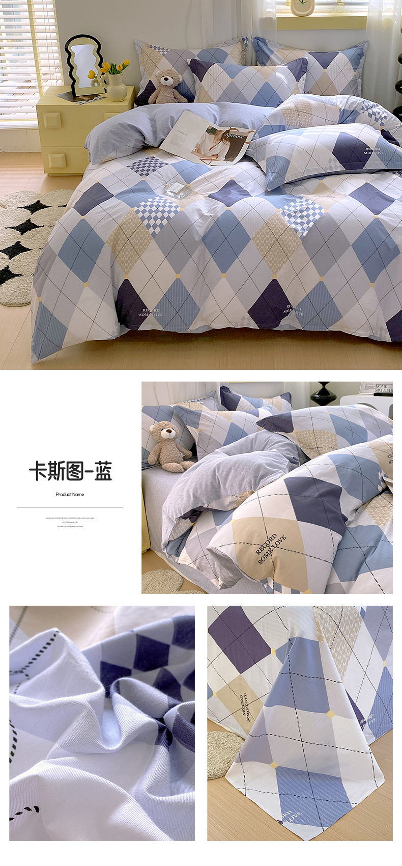 当前位置: 91家纺网 > 商品网购 > 床品套件 > 四件套 > 全棉普通四件套 > 拾物记 2024新款A类喷气全棉12868卡通印花四件套 卡斯图-蓝