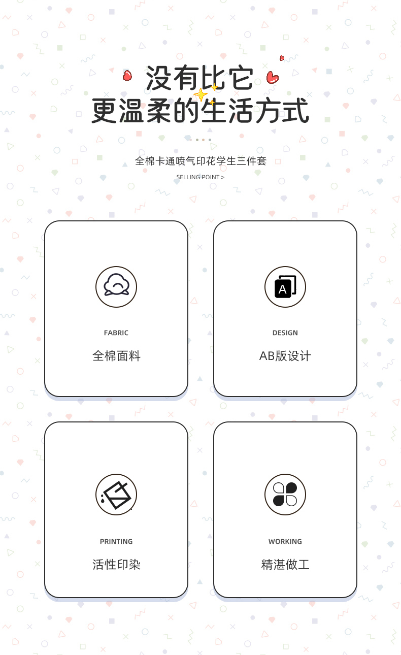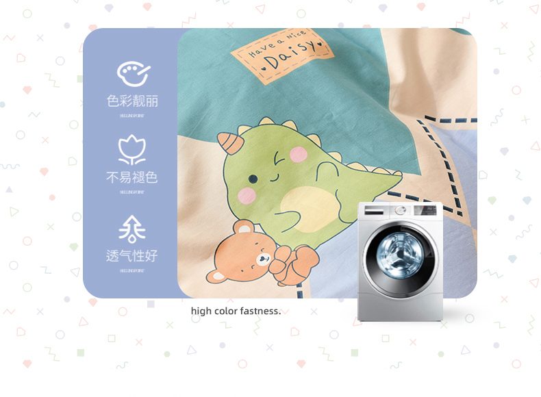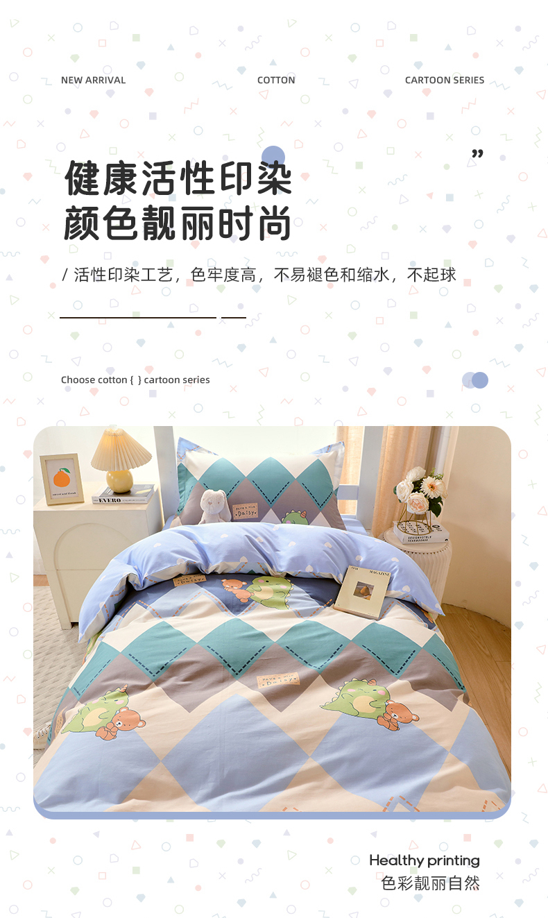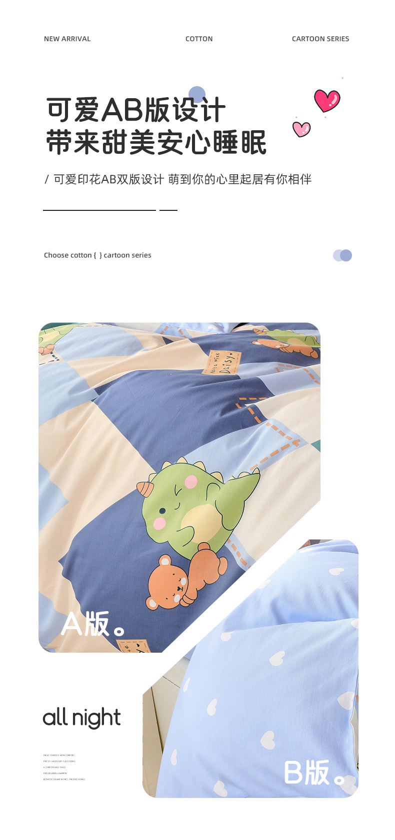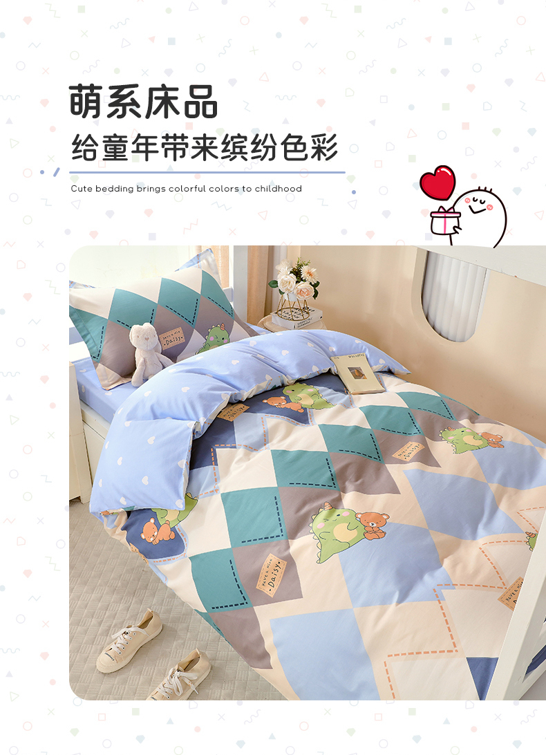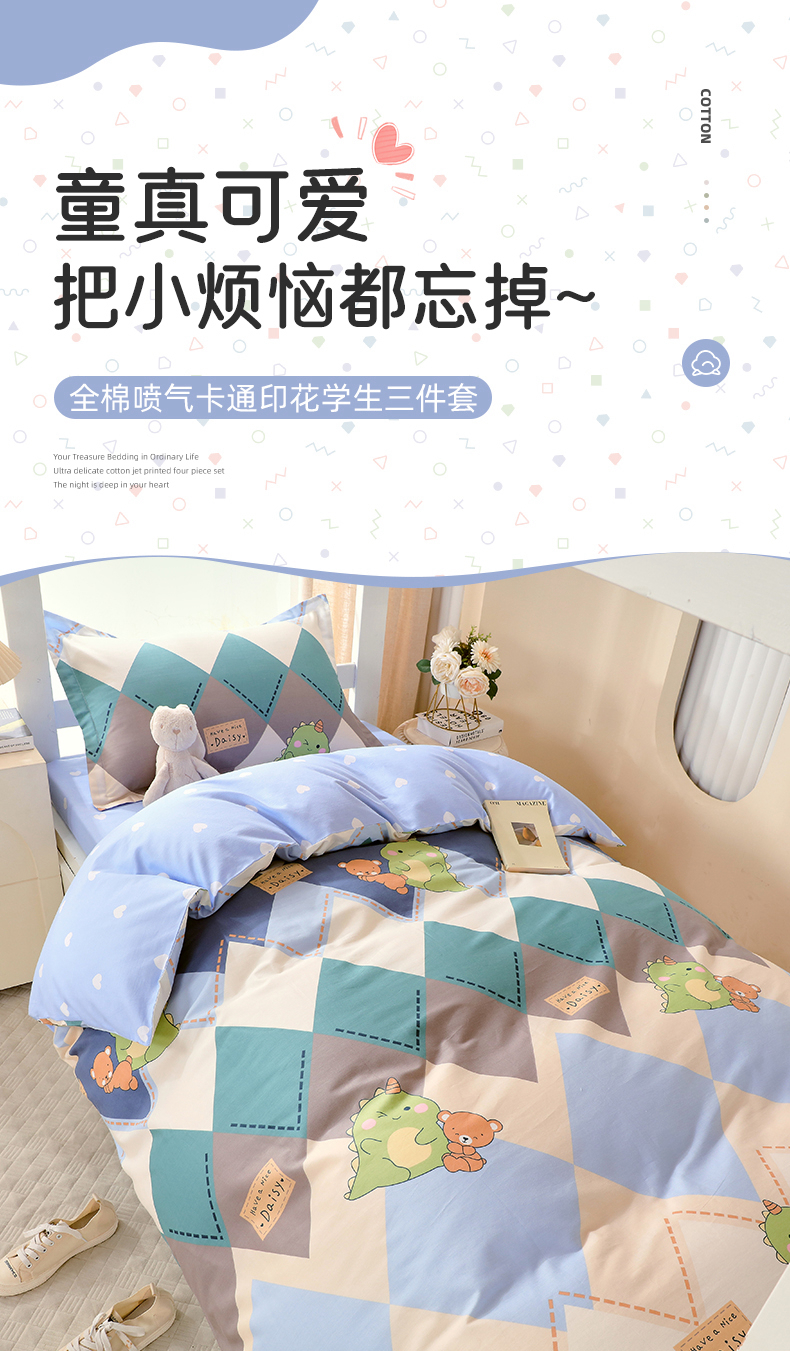 商品名称:拾物记 2024新款A类喷气全棉12868卡通印花学生三件套 淘淘龙