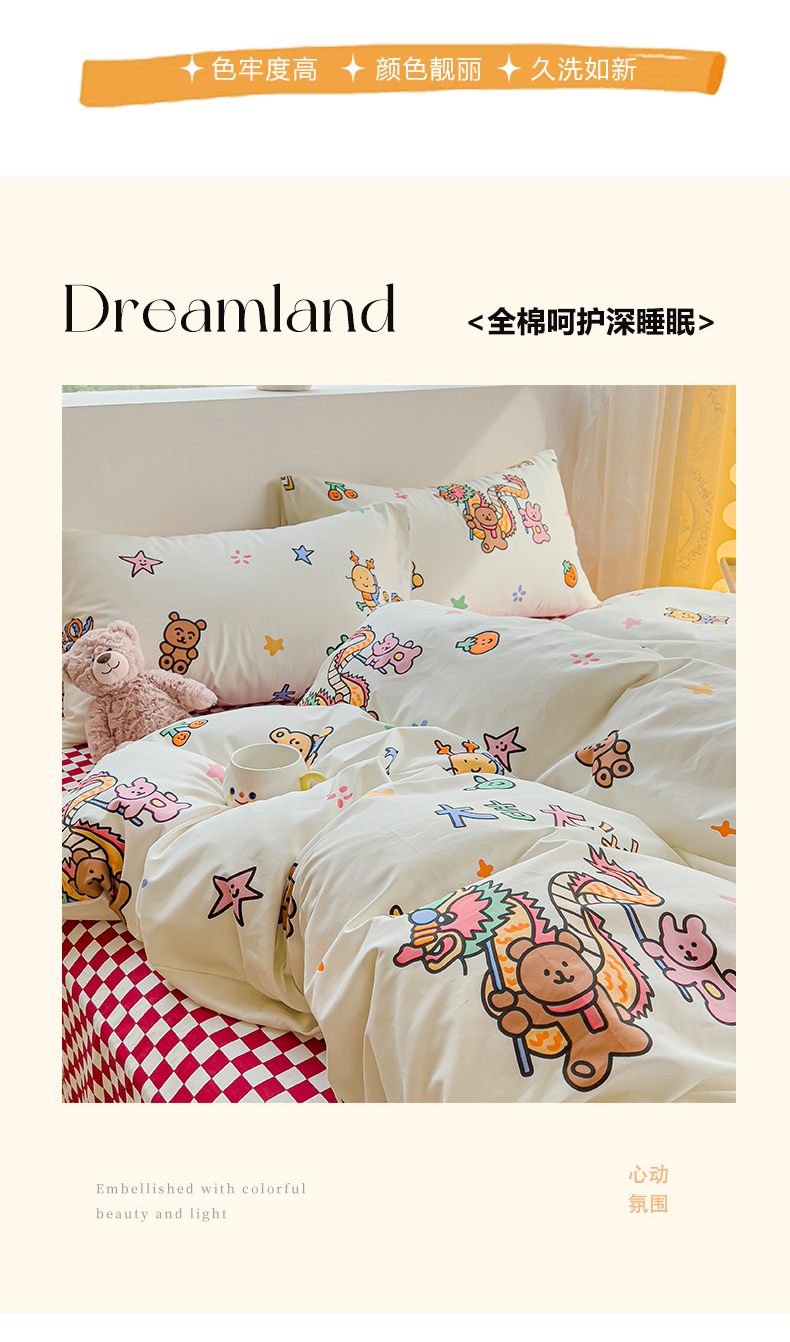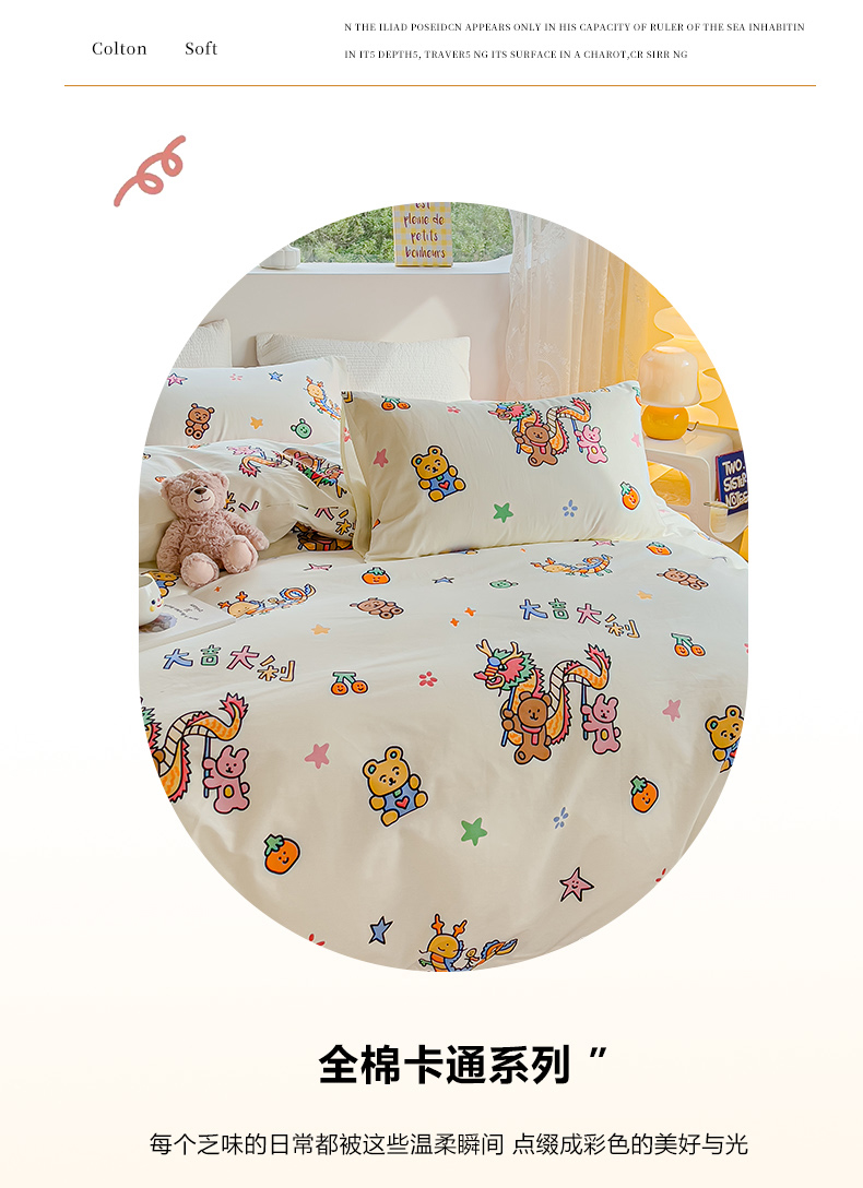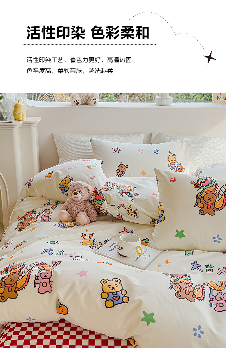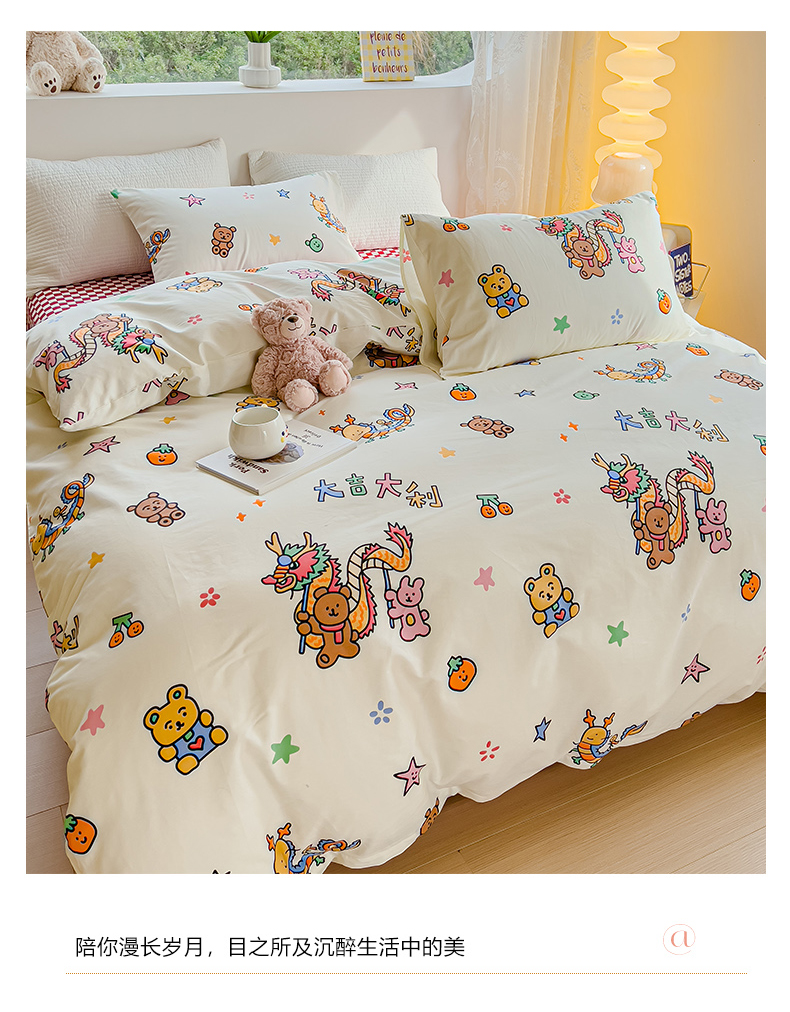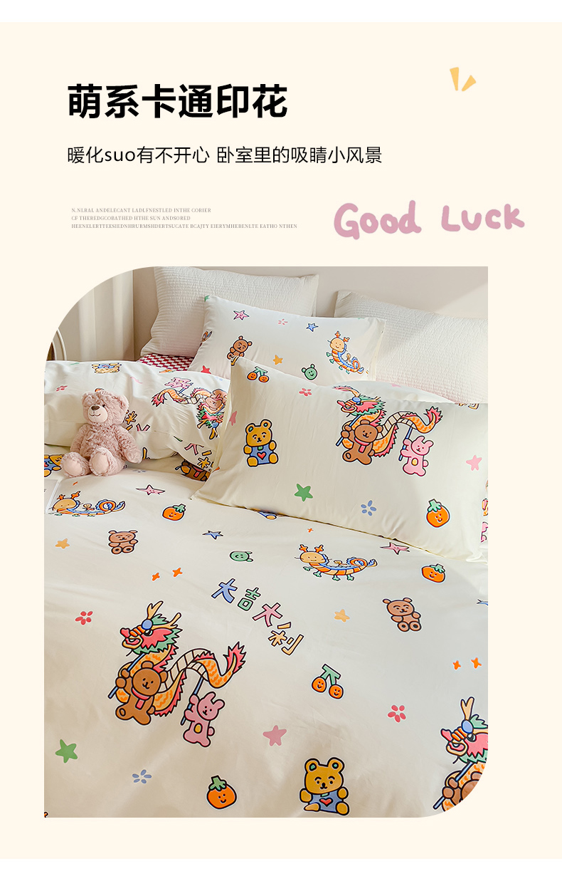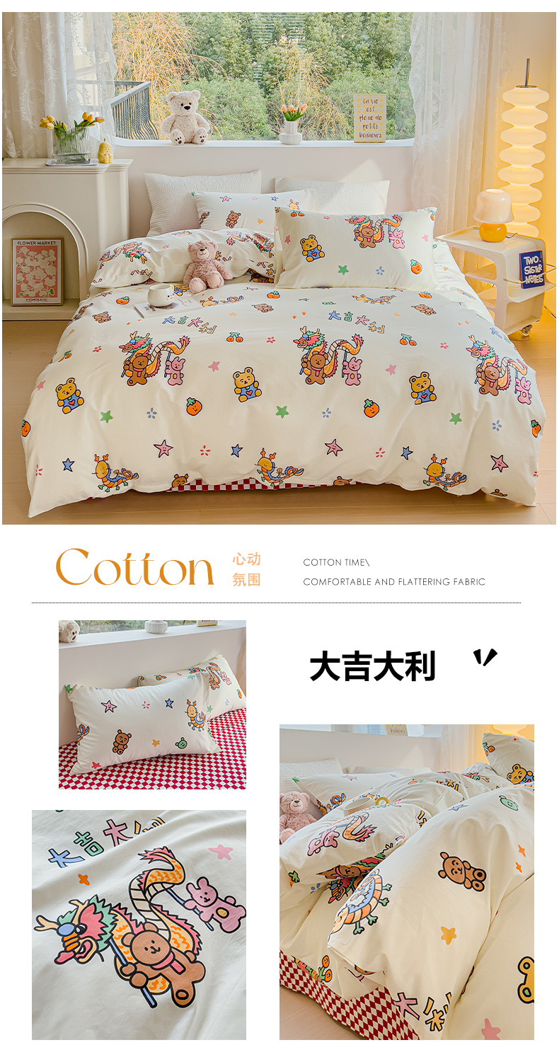当前位置: 91家纺网 > 商品网购 > 床品套件 > 四件套 > 全棉普通四件套 > 感遇家纺 2024春夏新品全棉卡通印花四件套-第一批 大吉大利