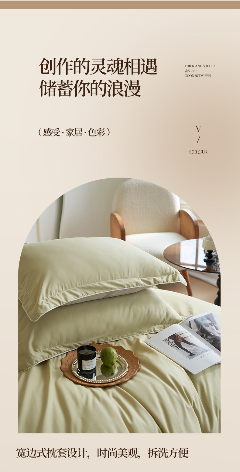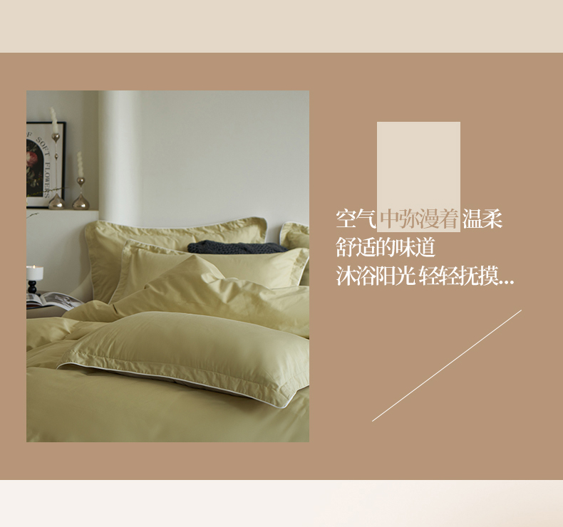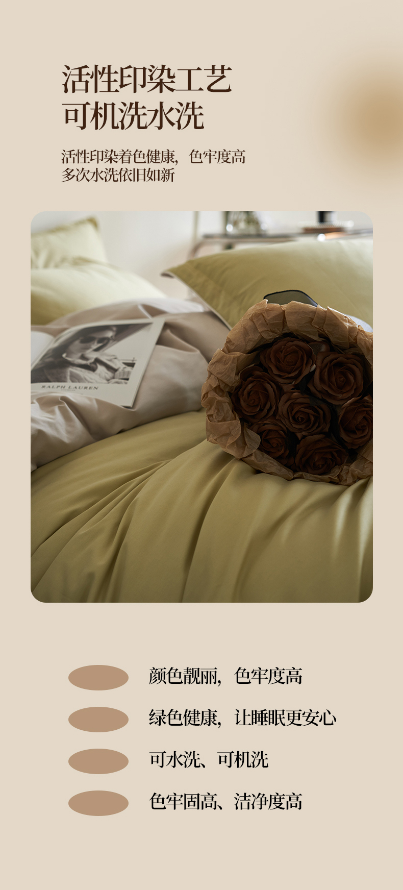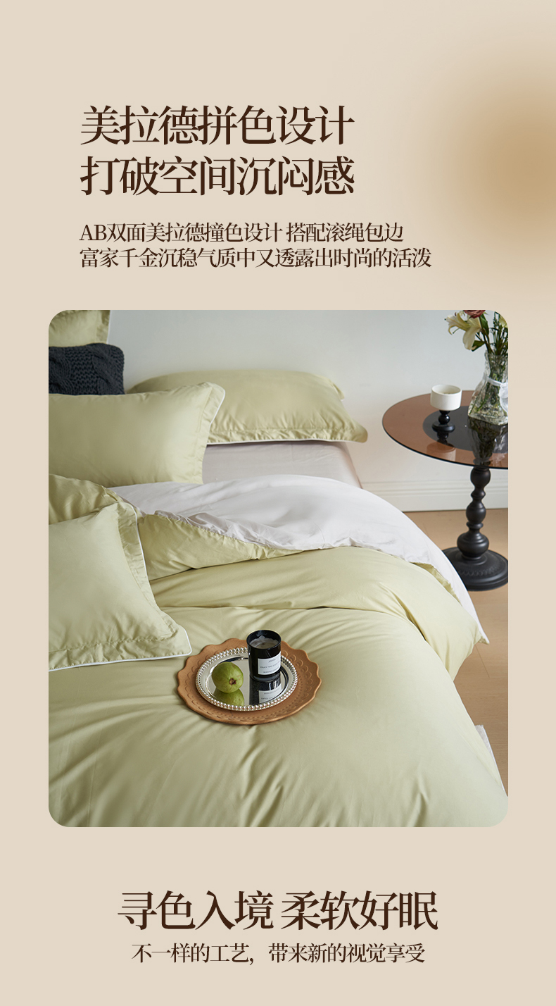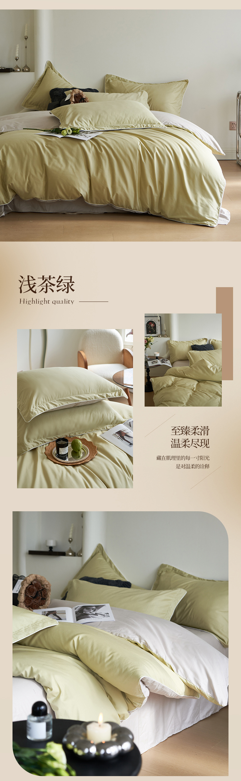 商品名称:盛馨 2024新款40长绒棉美拉德色系纯色双拼全棉四件套纯棉三件套床笠套件 浅茶绿