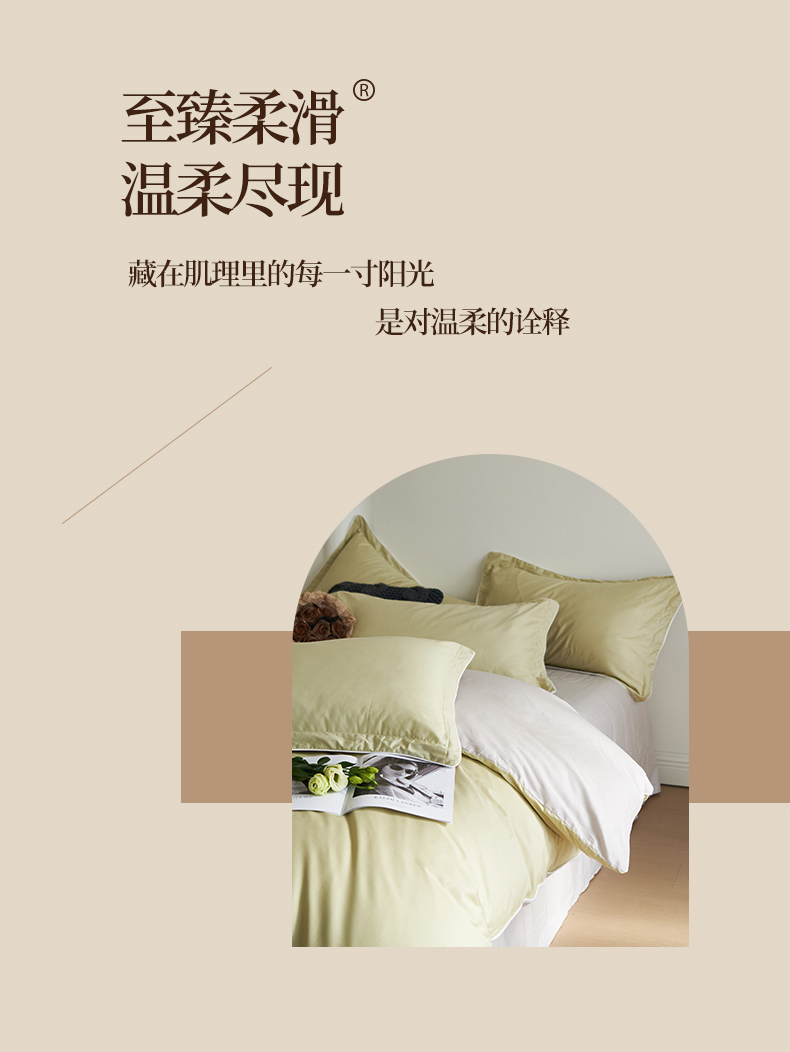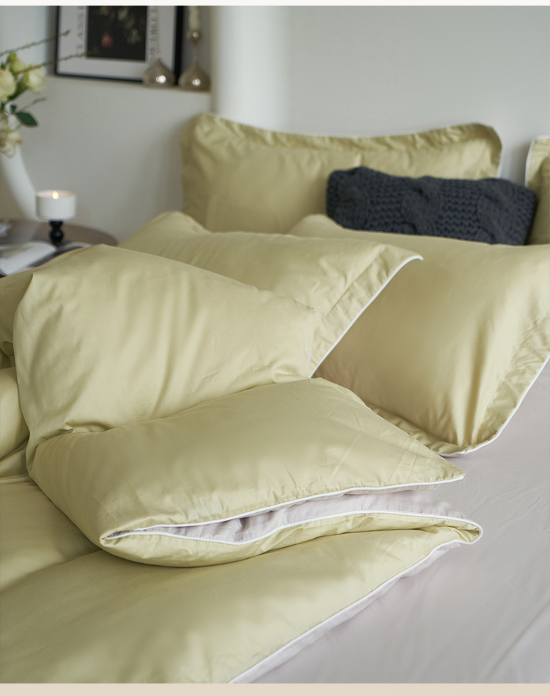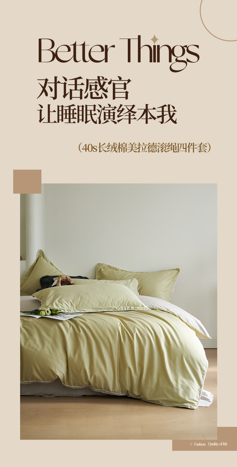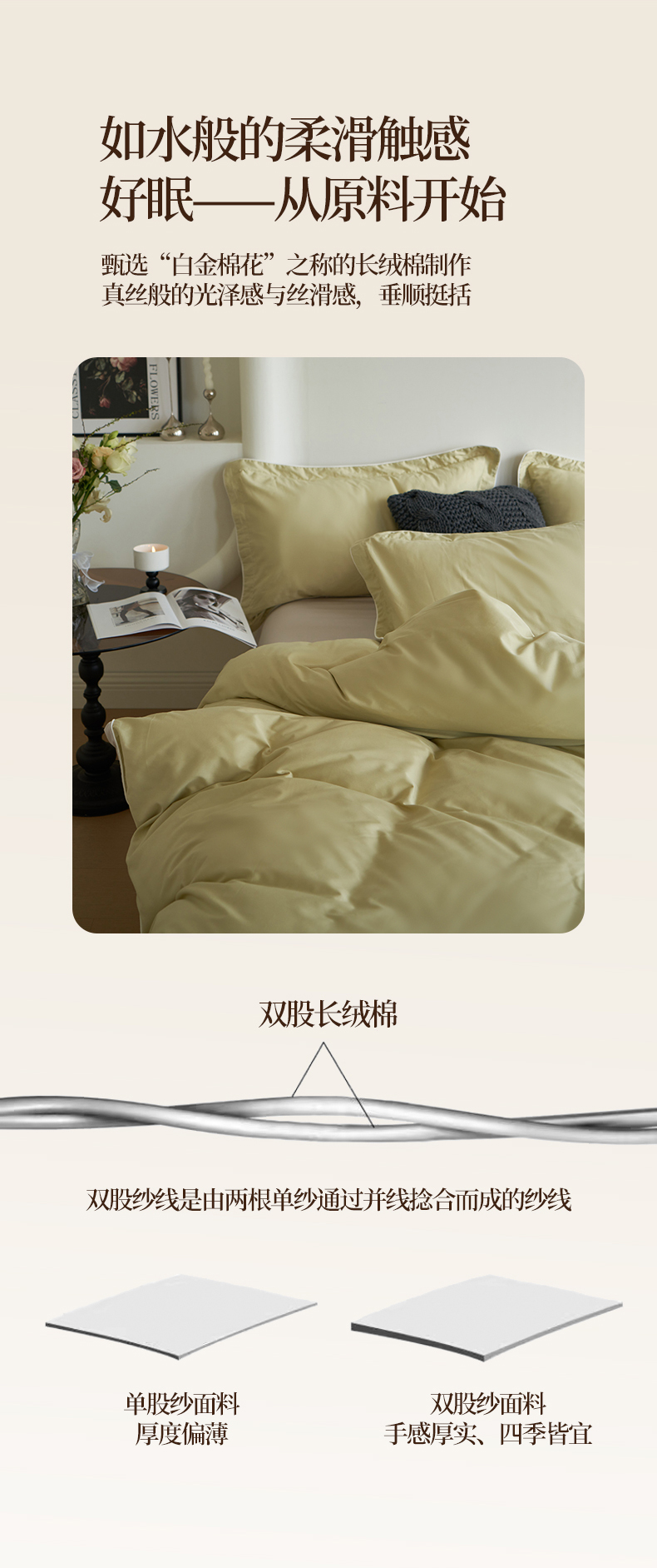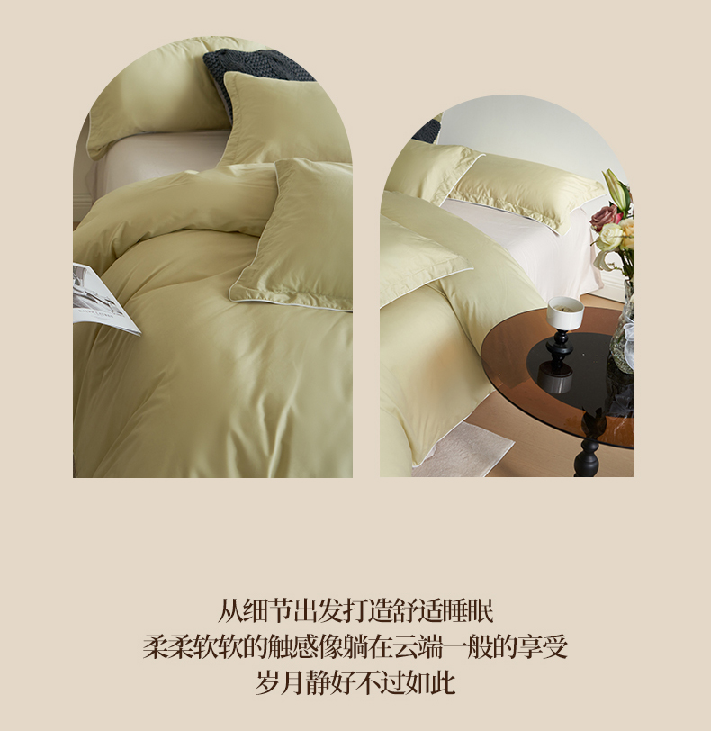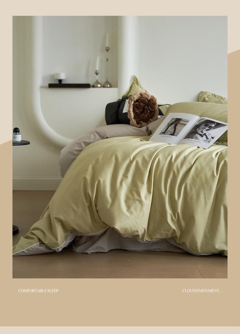 商品名称:盛馨 2024新款40长绒棉美拉德色系纯色双拼全棉四件套纯棉三件套床笠套件 浅茶绿