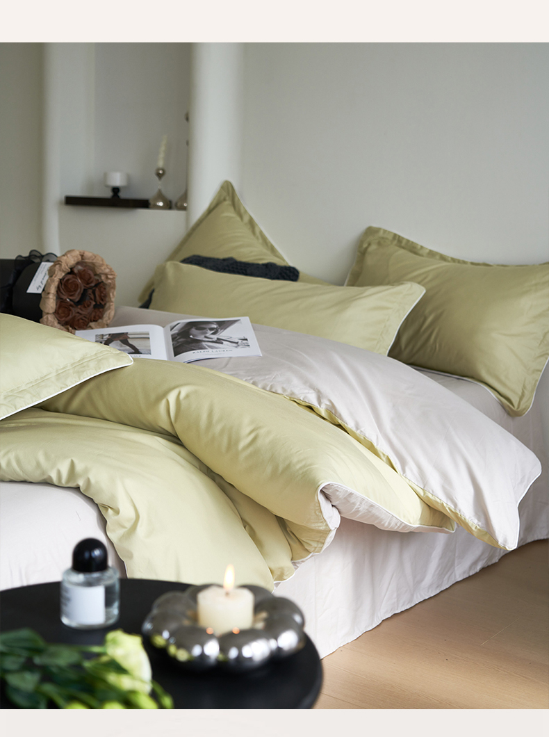 盛馨 2024新款40长绒棉美拉德色系纯色双拼全棉四件套纯棉三件套床笠套件 浅茶绿