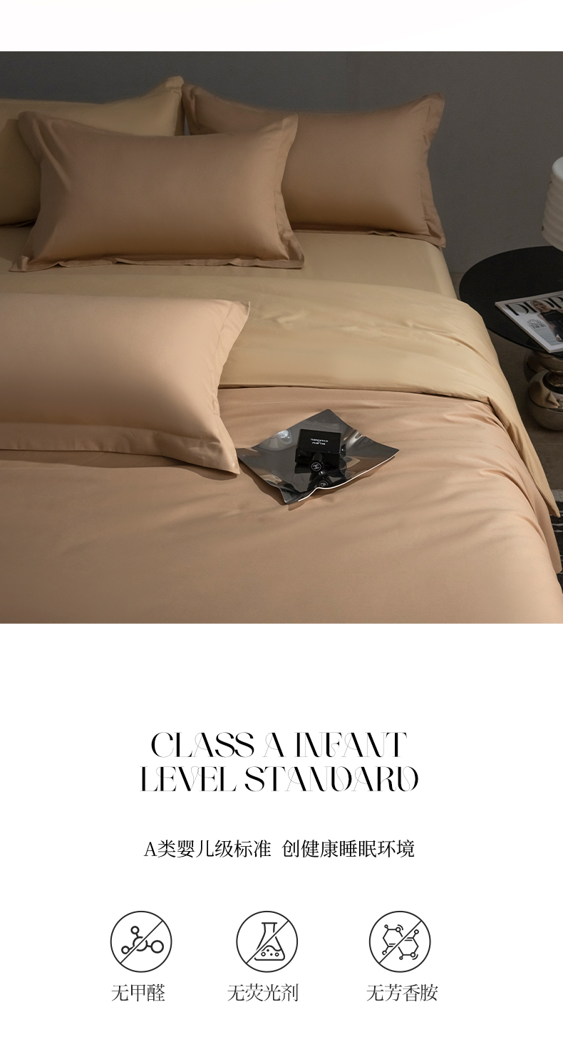 商品名称:小懒猪 2024春夏新款全棉舒适100支长绒棉极简系列四件套 茶棕-奇遇金