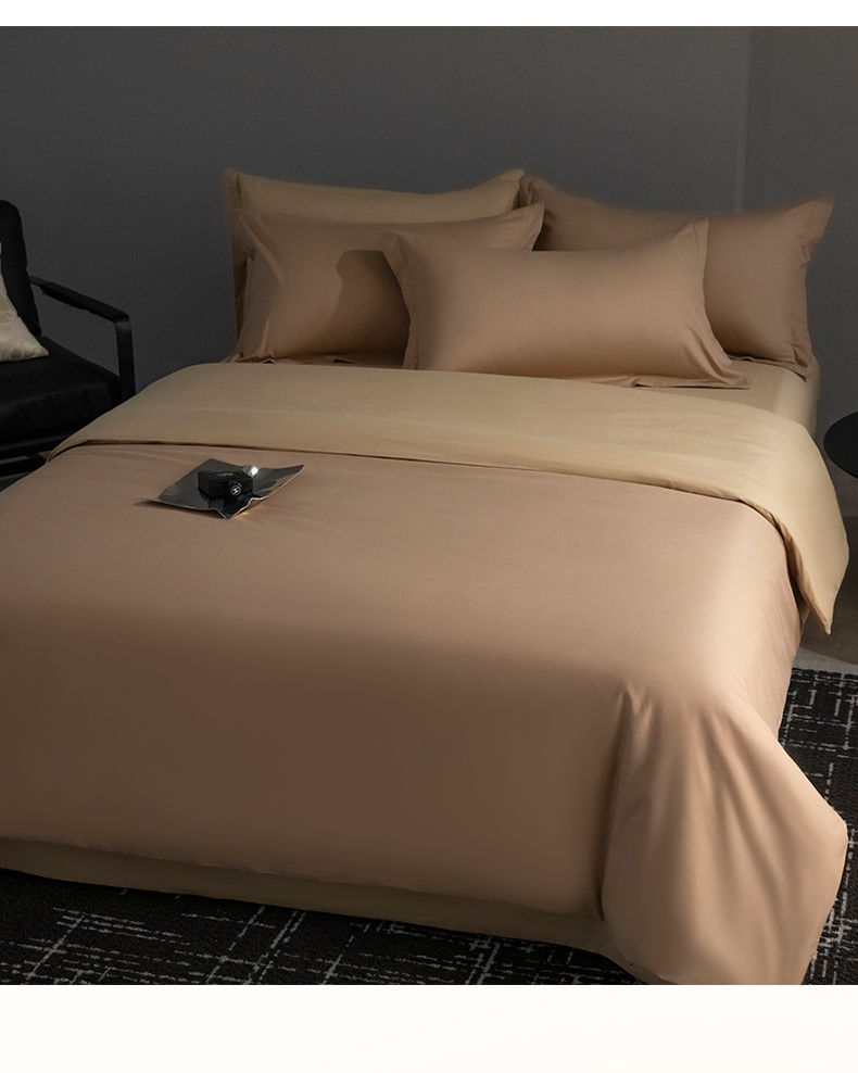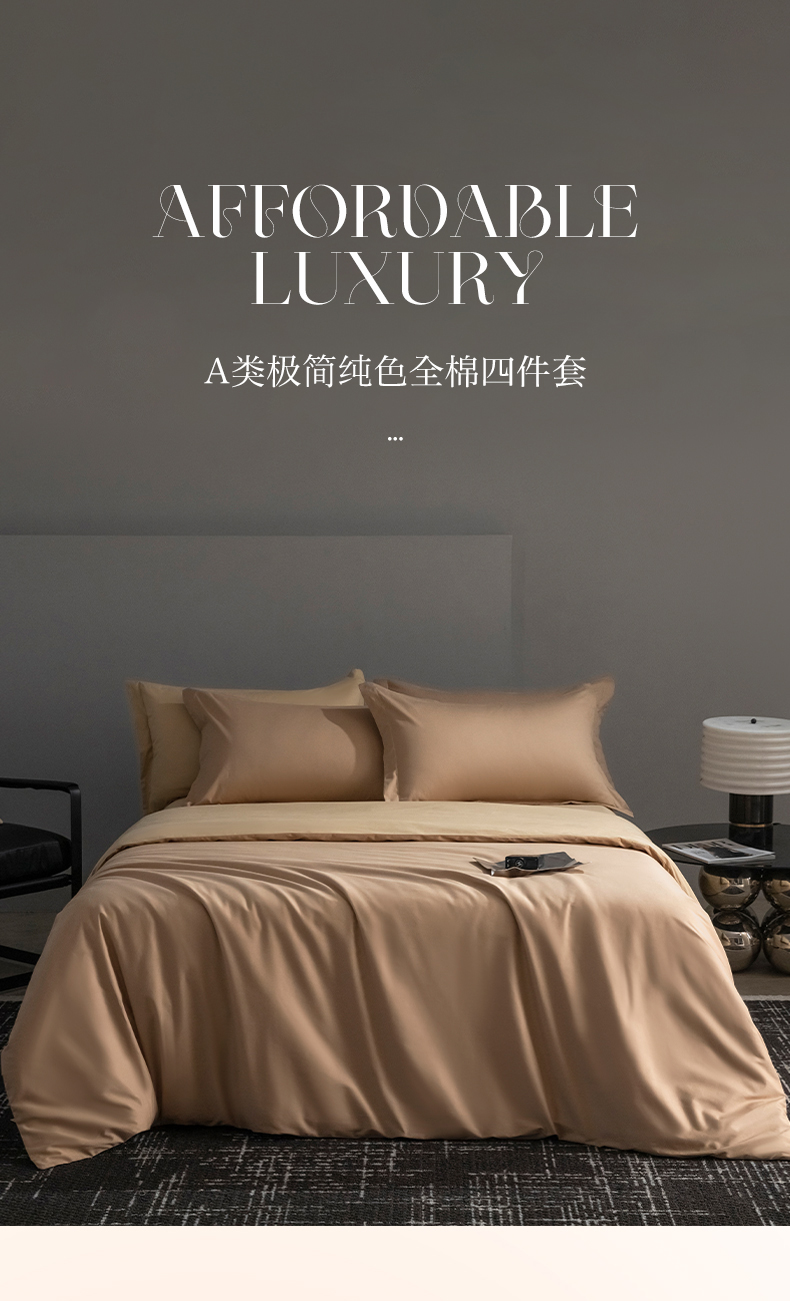 小懒猪 2024春夏新款全棉舒适100支长绒棉极简系列四件套 茶棕-奇遇金