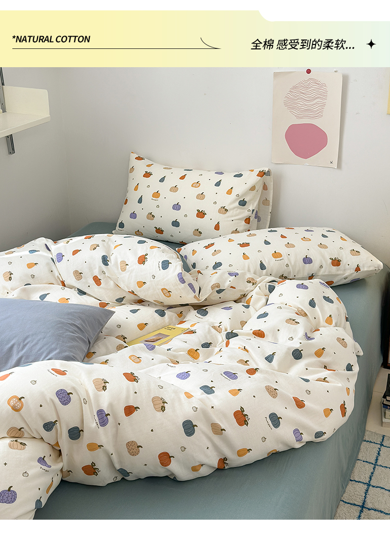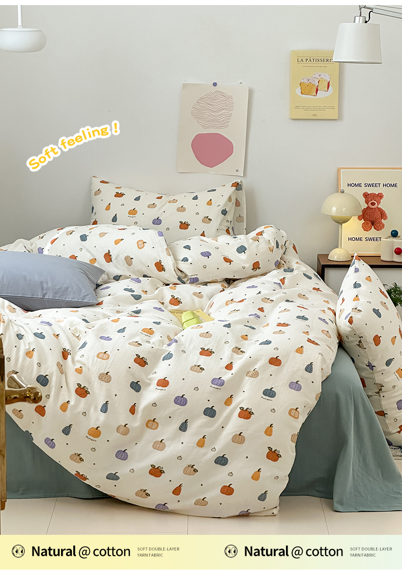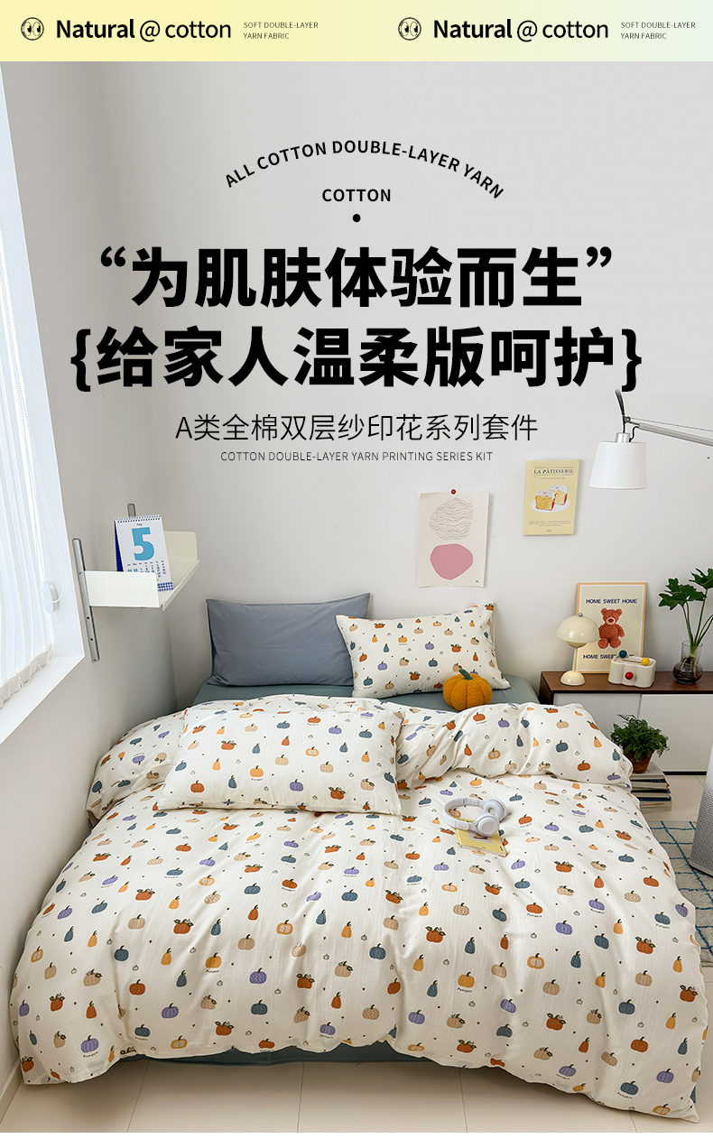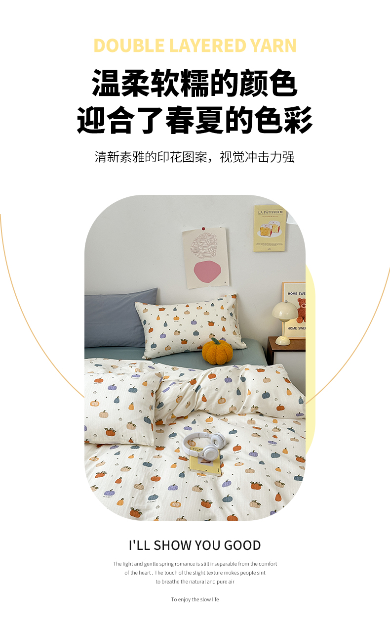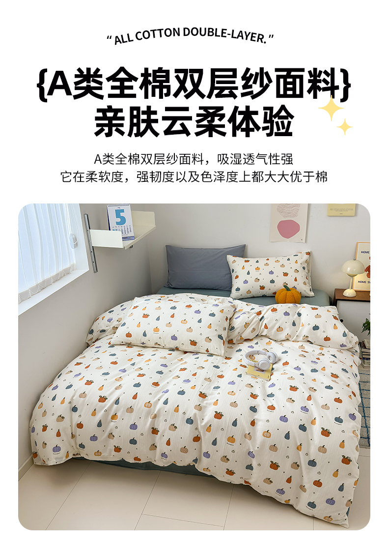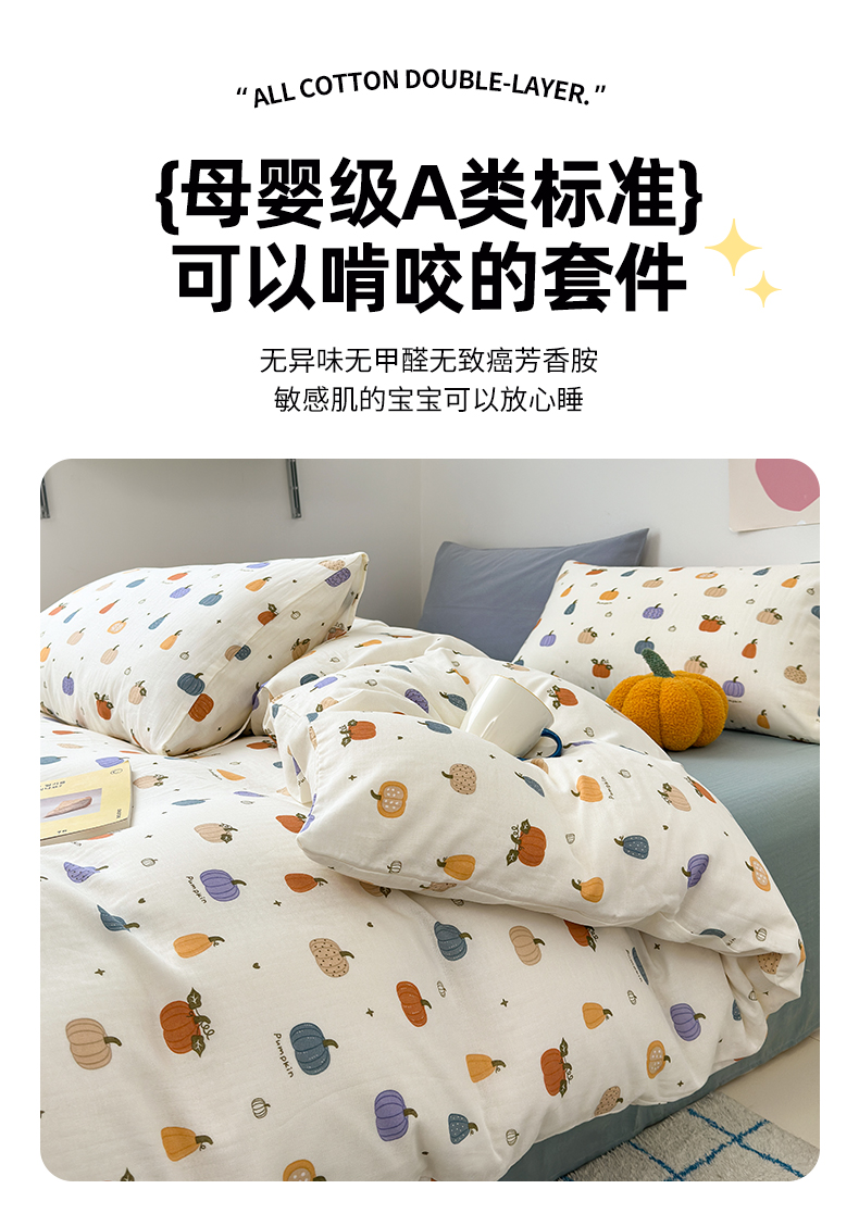 优彩 2025新款全棉双层纱四件套 南瓜派